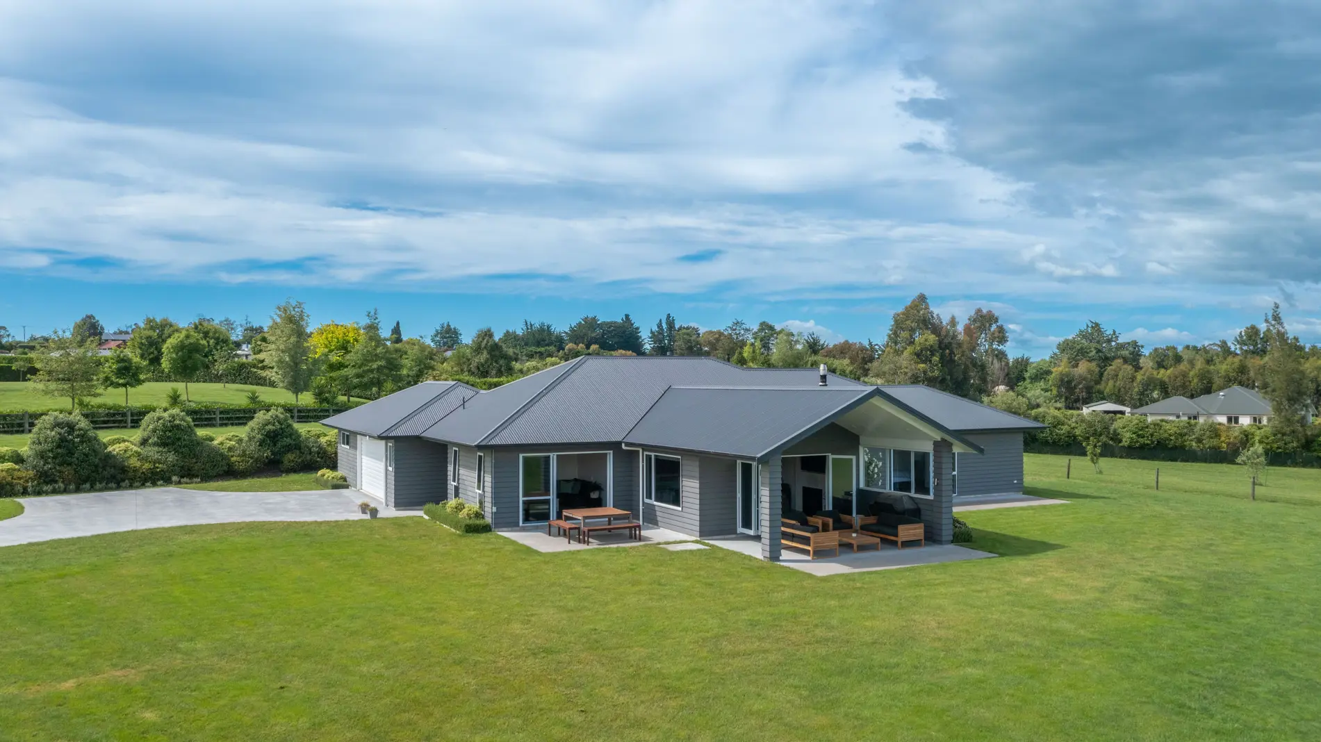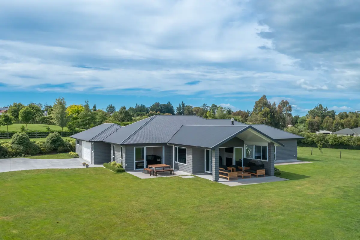 There is something about the clean lines and modern finishes of a near new home that has us all dreaming. Completed in 2017, this home was designed and built with the intention to stay here for years but the decision to pursue an exciting new path, means this light and bright home, packed full of modern must-haves could be your new dream home. Double glazed, ducted heat pump, stone bench and scullery in the kitchen, tiled bathrooms, double garage, impressive storage, two living areas. You name it, it is here. The elevated 6,540m2 section has the ideal location combination of being close to town but with a 'lifestyle' feel and rural outlook. The striking black and white kitchen is positioned at the heart of the open plan living and dining area, there is a second living to one side which allows overflow for kids or when entertaining and two outdoor living areas. The covered terrace is tucked away from the weather making this a fabulous all-weather area. The kitchen is very well appointed with double ovens and quality appliances, the scullery allows for extra work space and storage and there is an office tucked away out of sight. The four bedrooms are all spacious with inbuilt robes, the main bathroom has a gorgeous bath, shower and vanity and there is a separate toilet. The master is set to one end with sweeping views, a walk-in robe and ensuite. The stylish design and features flow throughout the home and there is seriously good storage. The laundry is in the garage as well as more storage and garden sheds at the rear. The mancave off the garage is an absolute bonus which will be missed by this family. This space is incredibly versatile as a studio or space to run your business from home. Outside are two water tanks, eco septic system, an impressive section you could continue to add to and plenty of parking space. This is a fantastic neighbourhood with new homes all around you. If you have wished for a modern home or contemplated building your own, come along and see how easy this could be instead.