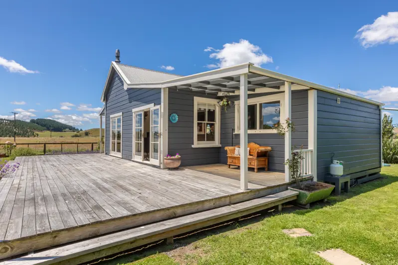What a wonderful find, nestled amongst farmland with stunning views all around, this two bedroom character cottage is an absolute stunner! This is a gorgeous character home where so much love has gone in to maintaining the charm and essence of a period home, whilst modernising the spaces so that you have all the comforts and convenience. Your eyes will wander from the lavender and roses, the front verandah and sash windows and inside to the moody colours and textured walls, tongue and groove and timber detailing, this is a home to fall in love with. The heart of the home is the light and spacious living area with two sets of french doors to open up in summer to the large deck, and a woodburner for cold winter's nights inside. This is a generous area with plenty of living space and open plan dining area. The modernised and striking kitchen is well set up with great use of space and large windows which are great for entertaining or just letting the streaming sun in. There are two good sized bedrooms, and the bathroom is well presented with a shower, vanity and toilet. The laundry is cleverly tucked away in the bathroom as well. The features and extras continue outside too where there is a beautiful garden setting complete with an outdoor bath, little studio shed and a pizza oven. The deck is such an asset with plenty of space for outdoor living, and even a plug ready for the spa pool. The single garage has a great area for storage or a workshop and there is another shed which is home to the ride on mower which will stay with the house. Sitting on just under an acre, you can make the most of the established orchard and add your own touches or fence off an area to graze a few animals or have some chickens. Located in the friendly Flemington community, this is a great rural location where you are tucked away from the hustle and can take life at your own pace. A short twenty minute drive to town makes it an easy lifestyle. The hard work is certainly done, this is a restful retreat which will be well loved for many more years.