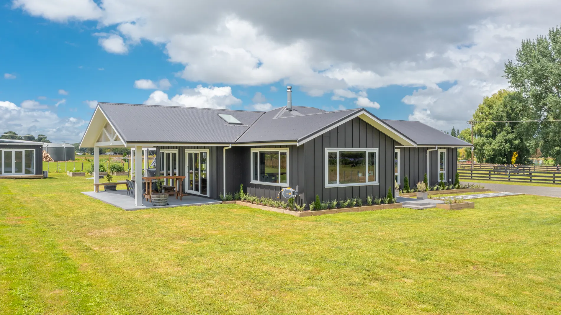It's hard to find enough words to describe this property - exquisite, clever, luxury, timeless, functional, beautiful ... this is a must-see property! Right from the road frontage you can see that no corners have been cut when this property was developed in 2021 on an acre of land - post and rail fencing, sealed driveway, manicured grounds leading to a home where all the i's are dotted, and t's are crossed. As you step through the front door your eye is drawn to all the design detail - the Trubridge light, ceiling stud heights with Velux windows, bespoke concrete basins and divine tapware, the clever use of colour throughout, stunning tiling detail, the list goes on. The centrepiece of the home is definitely the carefully crafted kitchen with scullery and the living and dining space which opens to the North facing portico where you can sit back and enjoy the rural views or entertain in style. The flow is outstanding, and it's topped off by the adjoined second living which creates a cosy snug to escape to for TV time or a great space for the kids to hang out. The three bedrooms are deluxe in size with large wardrobe spaces and the master is a place of luxury - from the views to the hills stepping out to a second outdoor area, the spacious walk-in wardrobe and the designer ensuite with double shower. It doesn't stop there - a cleverly designed office with double workspace, elegant laundry, beautiful main bathroom and powder room, ducted heating, a savvy security system and the double integral garage with massive amounts of storage including in the attic. Not only is there the stunning 233m2 home, but also a beautifully appointed studio / guest room and the most epic 3-bay dream shed perfect for the boat or your prized car plus a pony paddock!