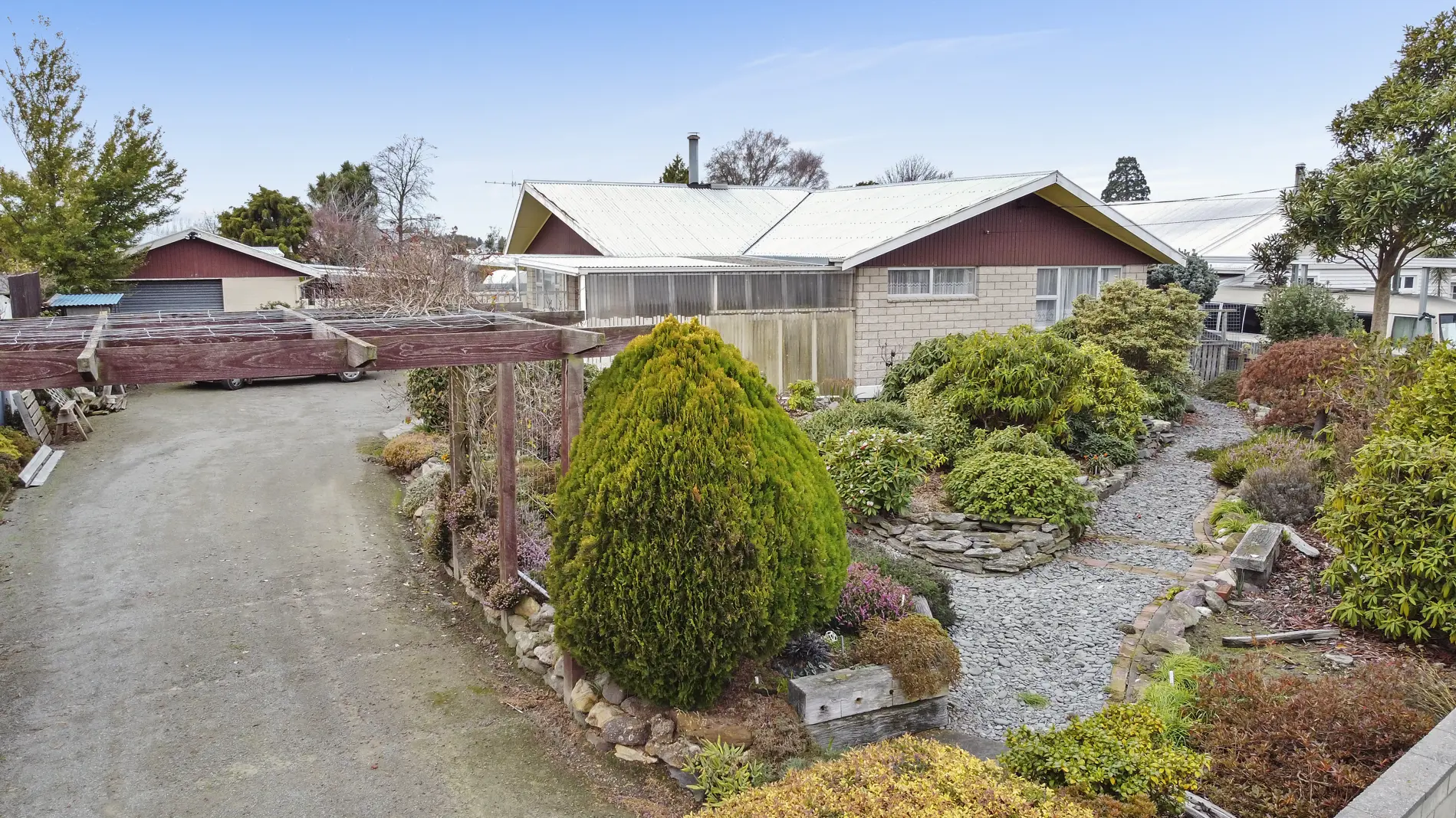 Easy living on Parsonage Road. Only a stroll to town, this solid three bedroom townhouse offers all the sun and daylight one could wish for. With sunny open living spilling out to a sheltered patio, large lounge with adjoining dining and kitchen, three double bedrooms, all with double robes, three piece family bathroom and separate toilet, a separate laundry, great storage, carport, concrete block garaging with workshop, lined hobbies room, tunnel house, wood shed and utility area. This comfy family home certainly packs a punch with a great driveway, paving, and a secure backyard for your family pooch and children. The well-laid out and easy care section and closeness to town all help to make this a great place to call home.