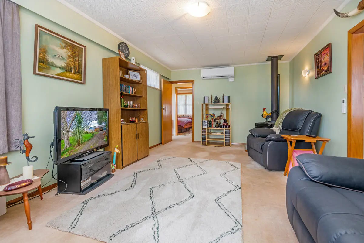 If location is a vital consideration in your real estate decisions, I highly recommend you view this one. Situated within easy walking distance to the local township, Fountaine Square Park, and the Anglican Church as your neighbour, you can enjoy easy access to place of worship, green spaces for outdoor recreation, and a range of businesses and services. The home features a freestanding wood burner with wetback attached, plus a heat pump for efficient heating ensuring a cosy and comfortable living environment. The separate lounge allows for privacy and the ability to entertain guests or relax in the designated living space. The three bedrooms provide plenty of space for a family or guests. Overall, this home is a great option for those looking for comfort and that homely feeling. But wait, there is more! Located at the rear of the main home is a fully insulated ideal sleepout with its own toilet, shower, and hot water cylinder. Perfect for working from home, extended family, or tenant it out for extra income to help with the mortgage. To top off this wonderful package, the property has the additional benefit of an XL carport with a roller door opening through to the back yard AND an extra-long lock up garage providing additional protection for your vehicles, equipment or tools and storage room. Call now to secure a viewing, this is a must see to appreciate all this property has to offer.