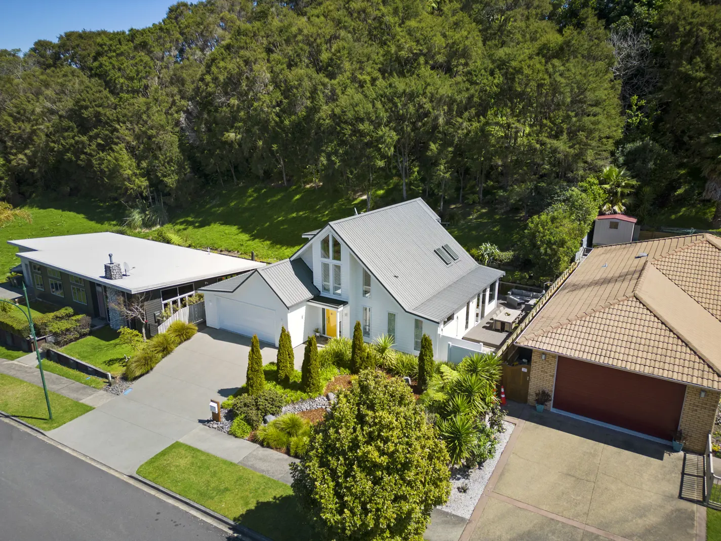 Wake up to bird song! This modern masterpiece has been thoughtfully designed and built to a high standard. Walking through the front door you are greeted with neutral colours and warm wood tones throughout. The ground floor features an open plan living/dining/kitchen space with high vaulted ceilings and skylights which make it feel grand and bright. This living area opens out to a private wrap around deck perfect for entertaining this Summer. There are 2 bedrooms on the ground floor, one with an ensuite, as well as a clever built-in study nook behind a beautiful barn door. Even the double garage has been carefully considered with built in floor to ceiling storage compartments. Upstairs is the master suite, which features its own private balcony overlooking the native planting and bird life. There is also a luxurious ensuite bathroom with tiled walk-in shower and a freestanding soaker tub. An added bonus upstairs is the secondary living space so this floor really does feel like your own private retreat. The location is hard to beat being a short drive from Ohope Beach, Whakatane CBD and having access to our popular bushwalks only a short walk from your front door. Once you move in, you'll never want to leave. Get in quick as homes in this street don't stay on the market for long. Deadline for offers closes 27th October 2022 at 2pm (not sold prior). For more information: https://www.propertyfiles.co.nz/property/WTU103326