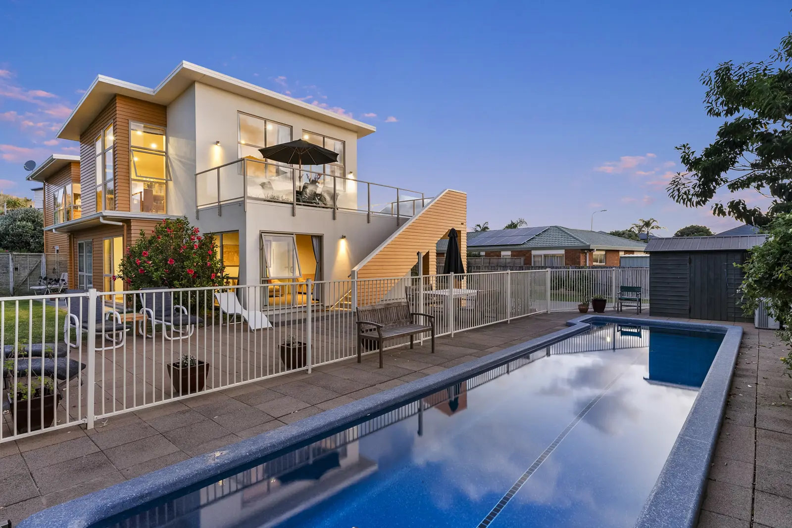 Architecturally designed, this Port Ohope home stands out from the crowd with its distinctive, striking exterior and thoughtfully considered layout. Through the front entrance and up the staircase you are greeted by the grand, open plan living/dining/kitchen space. An absolute entertainers dream, it flows seamlessly to the wrap around decking which has exterior stairway access to the inground heated lap pool. The master suite completes the top storey of the home with a luxurious ensuite, walk in wardrobe and a flexible use, glassed in area for library, sewing or study. Moving downstairs you will find 2 more double bedrooms, a bathroom with separate W/C, a separate laundry and a spacious second living space with access to the pool. The garaging is a generous double with plenty of storage and there is ample off-street parking for a boat and campervan. Perfectly positioned down a quiet right of way, and off a short cul de sac, the home feels so private and serene. Location is key and this one is hard to beat being only a short distance from the Ohope International Golf Club, Fishermans Wharf Restaurant, Port Ohope Store and only a short walk from access to Ohope Beach. Only one owner since built, my vendor is Auckland bound so this is your chance to secure an architectural masterpiece without the hassle and cost of building. Homes of this quality are often sought, but rarely found so a high level of interest is expected. Don't delay; call me today.