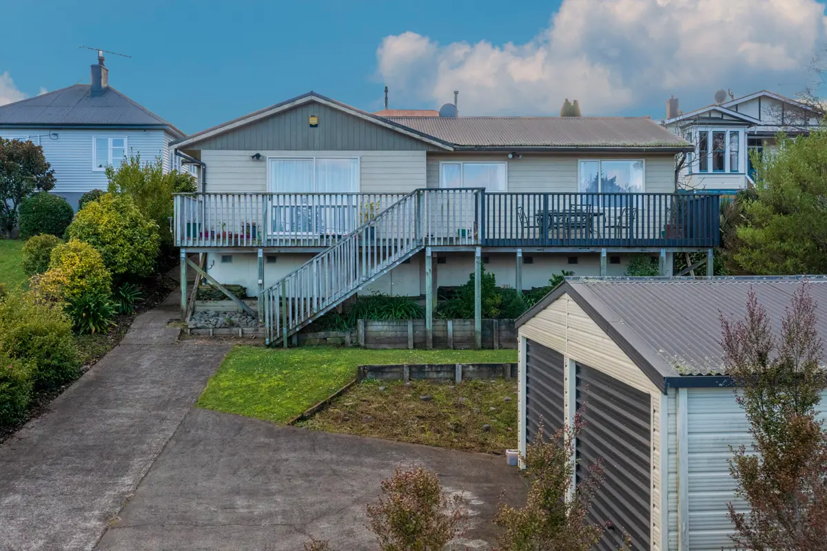 This elevated three bedroom home offers modern living and a fabulous location so you can enjoy all there is in in popular Waipawa. The floor plan is easy flowing with fantastic open plan living and dining opening to the front deck which has sweeping views of town and beyond. Situated right in town across the road from Nelly Jull Park, you can utilise the park as an extension of our own garden. This home has a neutral and modern colour palette throughout with a light and bright kitchen with good working spaces. There are three good sized bedrooms and a modern bathroom with a separate toilet. The section is steep but well set up with a double garage with ample storage space and a tiered garden with easy care grounds which are well fenced. The location and elevation provides you with a great vista across town and you are right in the heart of town so you can take advantage of everything at your door step. While there is some work and maintenance to be done, those with a clever eye will see there is value to be added here.