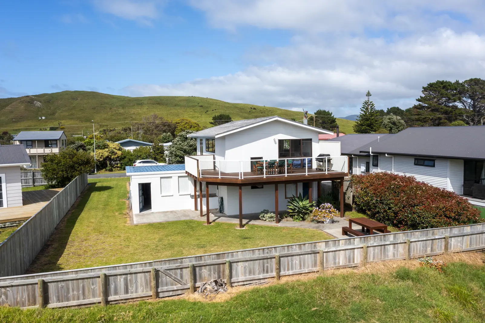 Summer days with the ocean in your sights, is the thing of dreams. Opportunities to secure the coveted 'bach at the beach' are hard to come by and this easy care four bedroom property is an absolute cracker! Spreading over two levels, there are two bedrooms downstairs and two upstairs with impressive open plan kitchen, living and dining area with a fantastic deck to immerse yourself in the beachy vibes with views to the ocean and a private position to enjoy your holidays. This home is the perfect mix of bach style and superior functionality with heaps of room for the family and friends to stay. Every detail has been thought of! There is a shower room with a separate toilet and vanity alongside and a second toilet in the garage. There are outdoor dining options no matter the weather and plenty of room to spread out inside if the weather isn't right. The single garage has fantastic storage space, room for the beer fridge and laundry. There is great section space with flat land for cars, boats, bikes or even potential to add another garage or bunk room and there is an outdoor shower to wash the sand away. The section is very well fenced and tucked towards the end of the cul-de-sac, you can imagine kids on bikes up and down the road. This is a well loved holiday spot and Te Paerahi beach has a fantastic offering with the Country Club a short walk away, dairy and pub nearby and amazing swimming, fishing and diving options. This home will make someone's beach dreams come true and will be sold by Deadline sale closing 2pm Tuesday 30 January 2024.