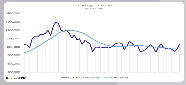 The median price for Auckland increased by 3.6% year-on-year to $1,033,000