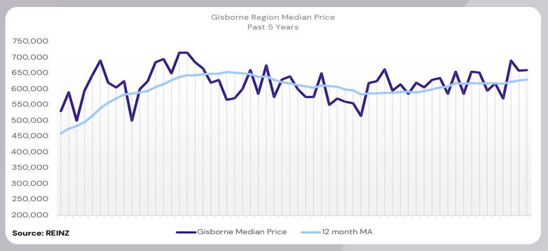Gisborne’s median price increased by 4.9% year-on-year to $660,000