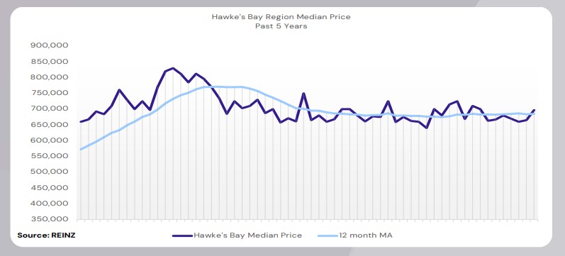 Hawke’s Bay’s median price increased by 2.5% year-on-year to $697,000
