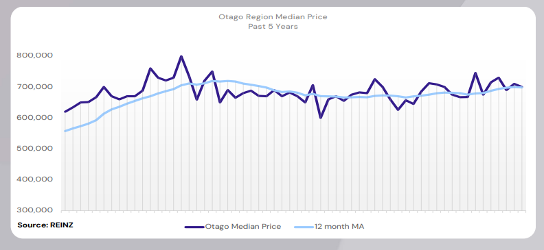 Dunedin’s median price decreased by 3.2% year-on-year to $600,000