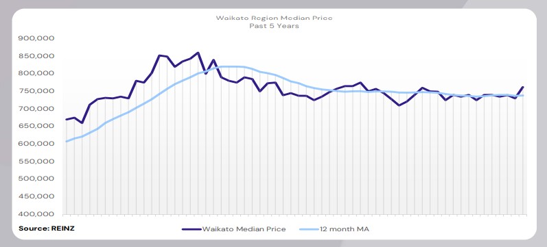 Waikato’s median price increased by 1.6% year-on-year to $762,000