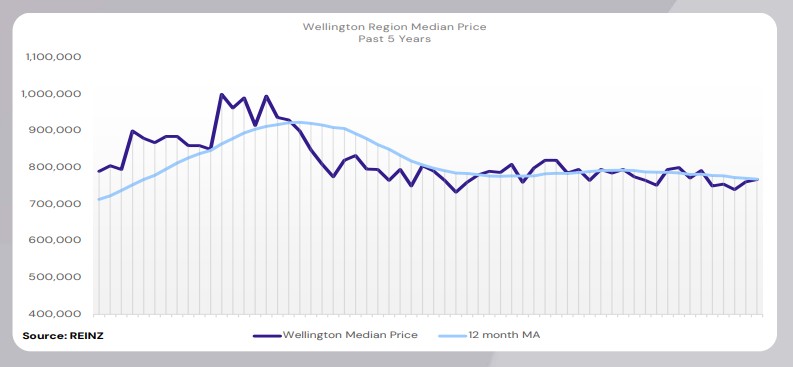 Wellington’s median price decreased by 3.5% year-on-year to $767,500