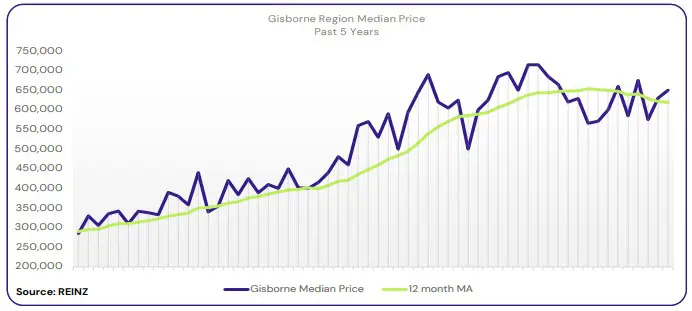 Gisborne’s median price decreased 5.1% annually to $650,000.