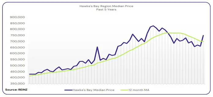 Hawke’s Bay saw a 2.6% decrease in median price in April to $750,000.