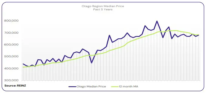 Dunedin City: Dunedin saw its median price decrease 9.7% annually to $570,000 in April this year.