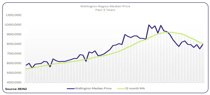 The median price in the capital was down 14.3% year-on-year to $797,000.