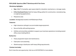 Workshop highlights: •Size: 384m2 of versatile, open space ideal for industrial, mechanical, or storage needs. •5-Ton Overhead Crane: Built for heavy lifting, perfect for construction, manufacturing, or engineering applications. •Mezzanine area Location: Strategically located on/off Ballantyne R...