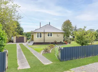 2 Generous sized bedrooms both with wardrobes - Large separate lounge with wood burner and capturing all day sun - Family bathroom with Shower and a separate toilet - Double garage with power and a wood shed - 895 m2 fenced and flat section. - Situated across the road from a beautiful park w...
