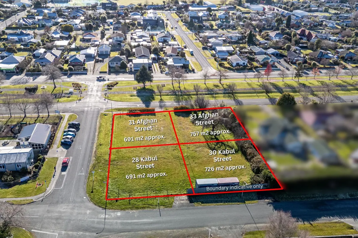 On offer here are four, fully serviced, flat to gently sloping residential sections with title, right in the heart of Pleasant Point. The location is excellent across the road from the St Joseph's Primary School, close to the Catholic Church and within easy walking distance of all the fantastic key amenities and services Pleasant Point has to offer. With slight elevation, each site has a lovely aspect, and they are all easily accessible from a building perspective. The size and location of these sections will have broad appeal for the likes of first home buyers, investors, empty nesters and retirees. • 31 Afghan Street - Approx. 691m2 • 33 Afghan Street - Approx. 757m2 • 28 Kabul Street - Approx. 691m2 • 30 Kabul Street - Approx. 726m2 Priced to sell! These won't sit around long, so call me today to find out more!