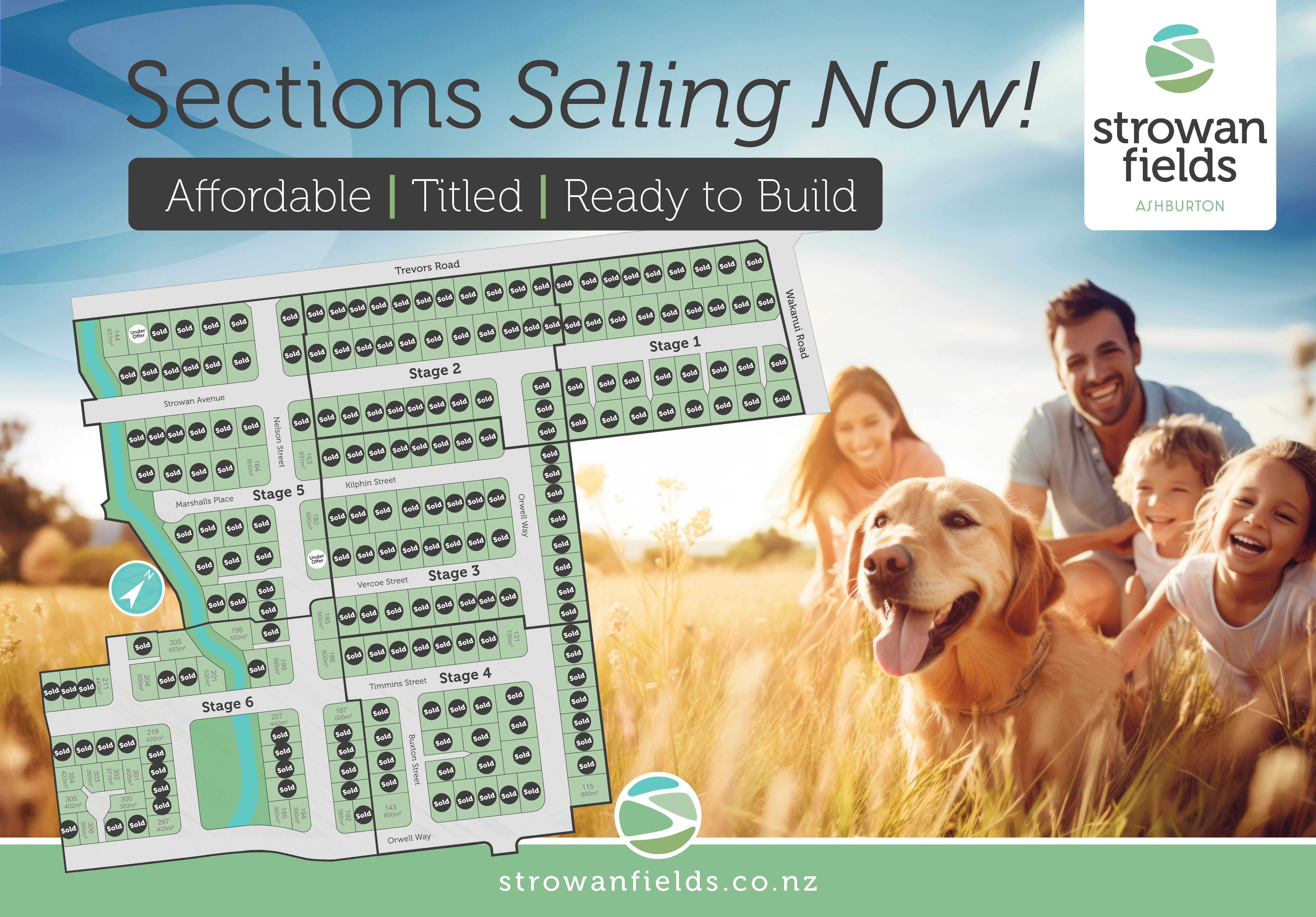 Whether you're starting out or slowing down, growing your portfolio or expanding your family, Strowan Fields is the ideal place to take the next step on your property journey. Strowan Fields is a short walk to town and close proximity to the nearby primary schools - the kids can bike or walk to school. Titles are available in Stages 3 and 4 now with sections available ranging in price from $195,000 through to $250,000 - buy today and literally build tomorrow! Our friendly staff are available to direct you to many of the franchise builders who are already operating in Stages 1 through to 4 and there is a great selection of Ashburton/Canterbury based builders too. At Strowan Fields you will find: • A wide variety of section choices over 66 hectares of land • Section sizes from 500sqm to 800sqm • Section pricing includes; boundary fencing and development contributions* • Multi-staged development • An abundance of activities right on your doorstep Contact one of our agents today for further information.