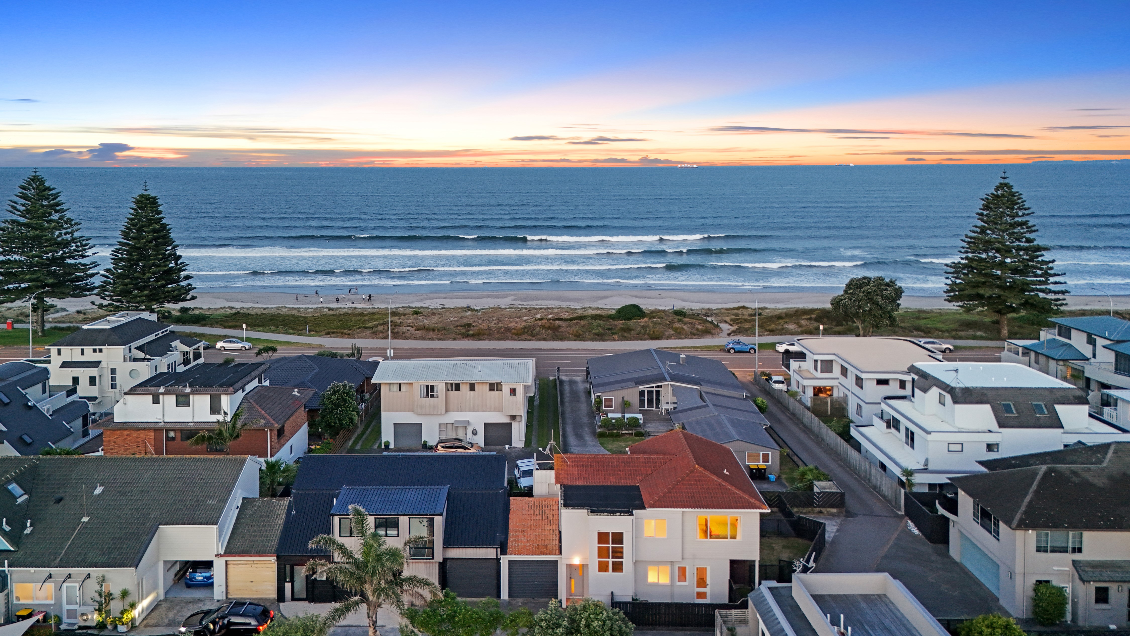 This home captures everything to love about living just a stone’s throw from one of New Zealand’s most iconic beaches. If you’ve imagined achieving this lifestyle, now is the time to make it a reality. With minimal modernisation, the home presents an exceptional opportunity for those with a keen eye for renovation—or retain the existing décor and enjoy the ultimate low-maintenance Kiwi bach. Constructed with a brick lower level and pallisade cladding, the home is well suited to the coastal environment. Positioned just off Marine Parade, it benefits from shelter on the roadside while still enjoying ocean views from the upper level. The ground floor features open-plan kitchen, dining and living, designed for connection and easy entertaining. A bathroom, laundry and single garage complete this level. Upstairs you’ll find two bedrooms and a second lounge—easily adaptable as a third bedroom depending on your needs. Step out onto the balcony and take in stunning beachfront views, perfect for checking the morning swell or watching the first light of sunrise. Outdoors, the property offers off-street parking and a grassed area ready for barbecues and summer gatherings. This is one of the most exciting opportunities to hit the market in 2025. If you’re looking for the best Christmas present Santa could deliver, don’t hesitate—homes like this don’t last long.