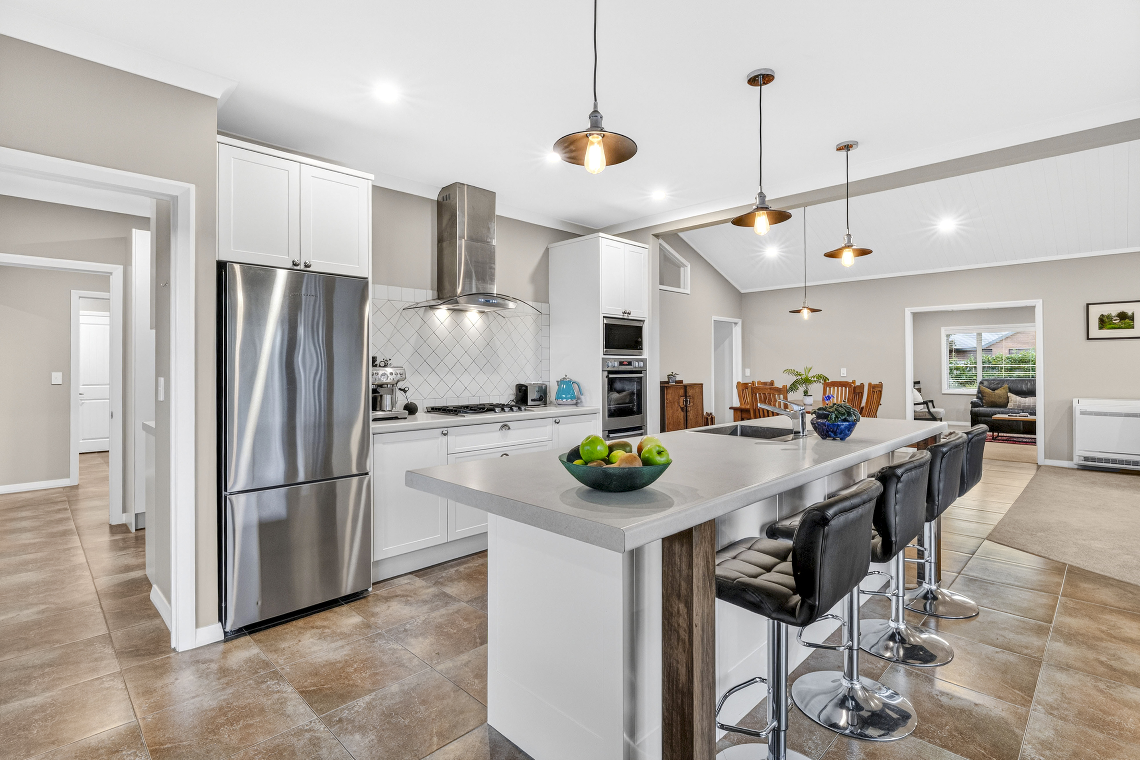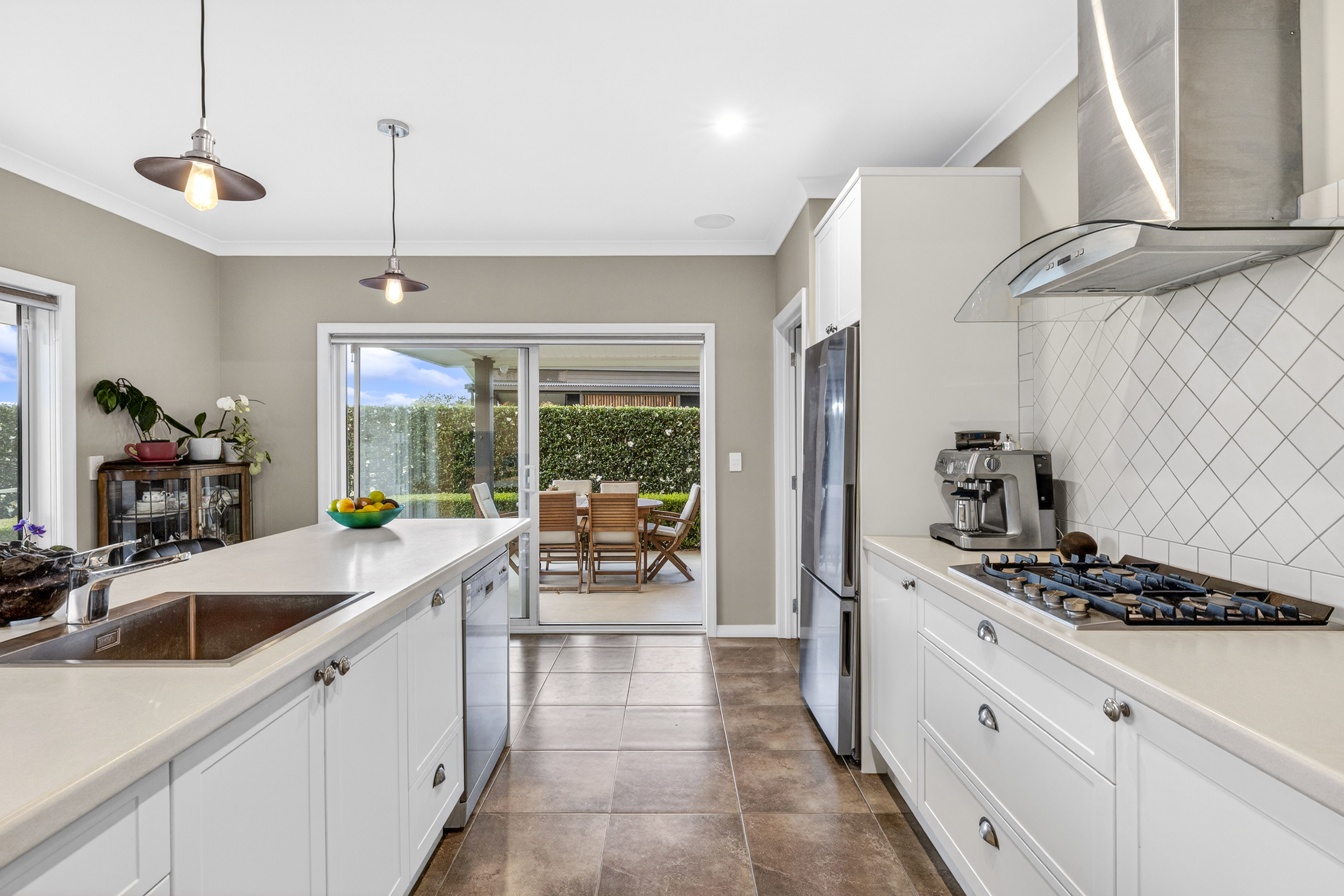 Positioned in the sought-after Norfolk area, this quality home offers beautiful street appeal, blending bagged brick with board and batten for a timeless look. Set perfectly on a 1,000m2 section and surrounded by established gardens, this property immediately feels welcoming and private. The quality of craftsmanship throughout the home is evident, with a high-spec finish and careful attention to detail. A striking double front door opens into a spacious foyer with pitched ceilings, creating an impressive first impression. From here, cavity sliders lead you through to the heart of the home; a generous open-plan kitchen, dining, and living space. The timeless galley-style kitchen is both stylish and functional, featuring a full scullery, breakfast bar, and quality appliances. Two sets of doors extend the kitchen outdoors to a covered breezeway-style patio, ideal for entertaining while enjoying the beautiful gardens. The large dining and living area is light-filled and inviting, with pitched ceilings and large windows that frame the greenery beyond. The home is further enhanced by the inclusion of solar panels, supporting energy-efficient living. A second separate lounge branches off the main hub via a cavity slider, offering flexibility for families. Complete with its own heat pump and access to a second covered patio, this is the perfect peaceful retreat or media room. The master suite is privately positioned in its own wing, generously sized and complete with a walk-in wardrobe, ensuite, patio access, and its own heat pump. The remaining accommodation includes two large double bedrooms (each with their own heat pump), plus a versatile office or smaller room. The family bathroom includes both a bath and shower, complemented by a separate toilet. Additional features include a separate laundry, excellent storage throughout the home, a double internal access garage, surround sound, security cameras and alarm, six heat pumps in total, double glazing, and insect screens. Outdoors is a true highlight, offering exceptional privacy with established shrubs, trees, hedging and beautiful gardens. Espaliered fruit trees, including pears, feijoas, apples, and plums, and a variety of citrus trees, add both charm and practicality thanks to plenty of produce. A tranquil seating area sits nestled in the garden beneath climbing grapevines, creating the perfect spot to relax. There is also a fully fenced kitchen garden with raised beds, a garden shed, and a functional sink for washing produce before bringing it inside. Two water tanks service the garden, while a second shed (fondly known as the “man shed”) with raking ceilings and electricity offers a versatile space for hobbies, a workshop, or additional storage. Thoughtfully designed and beautifully executed, every element works together to create a home that feels both functional and elevated. Properties of this calibre in such a tightly held neighbourhood are rarely available. Get in touch with Team Hunt to discuss viewing options.