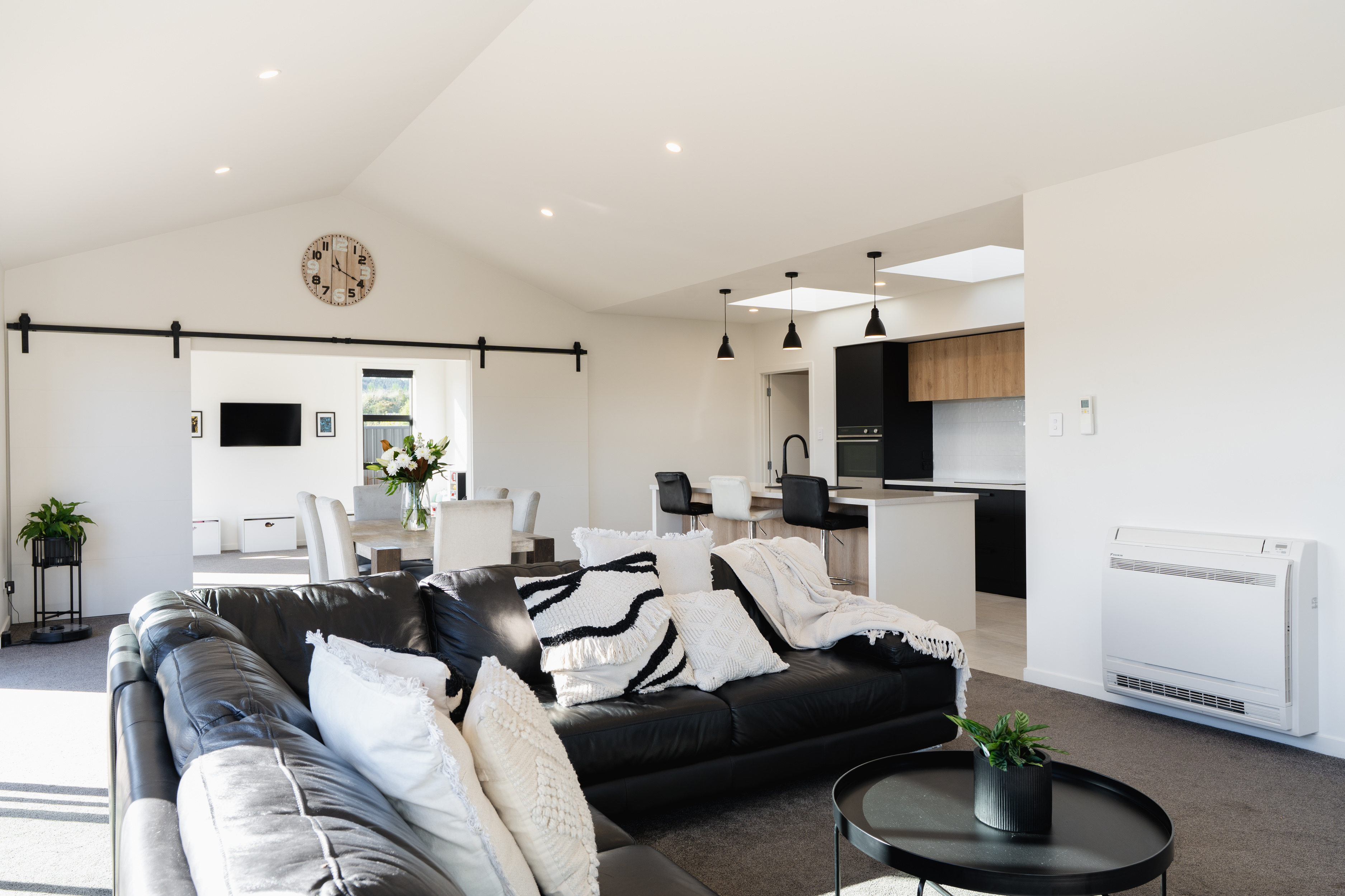 When you blend elegant, modern low-maintenance living with family practicality and a semi-rural feel, you have this very stylish home at 10 Henderson Street in Wingatui. The contemporary design has perfectly considered both all day sun and the needs of modern family life with all the spaces you need yet keeping your weekends free for the things you enjoy rather than tying you down to garden maintenance. You are welcomed into a generous open-plan living area, where the impressive, vaulted ceiling enhances the sense of space and light. Whether it's relaxed family evenings or entertaining a crowd, this home caters effortlessly to both. The living and dining areas sit alongside a gorgeous kitchen, complete with a walk-in pantry and overhead skylight, creating a bright and inviting space for everyday cooking and gathering. Adding further versatility is a more intimate second lounge, separated by very cool double barn doors. Each of these living spaces open through sun-drenched sliders to the deck and outdoor entertaining area. With four double bedrooms, there is room for all the family. The master suite with exterior door, provides excellent storage in the walk-in robe, leading you to the stunning tiled en-suite with underfloor heating. The three further bedrooms are all doubles with built in storage. The family bathroom adds to the beautiful features of this home with a tiled floor, separate shower and free-standing bath. The functionality continues with a separate toilet and laundry which adjoins the carpeted double garage. The easy-care section is made for busy families while ensuring the needs of both young and not so young are still met. Viewing will delight, see you at the open home.