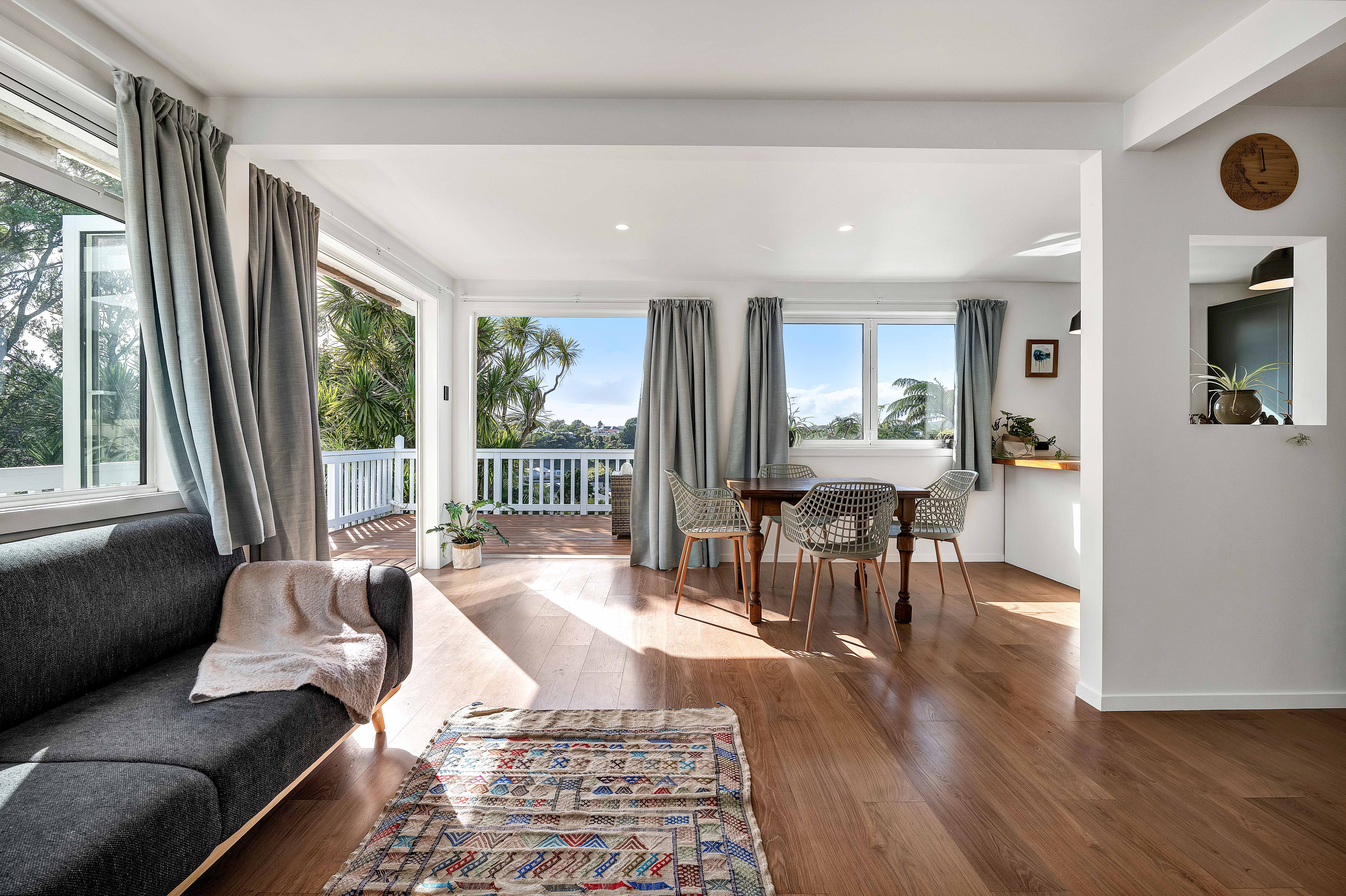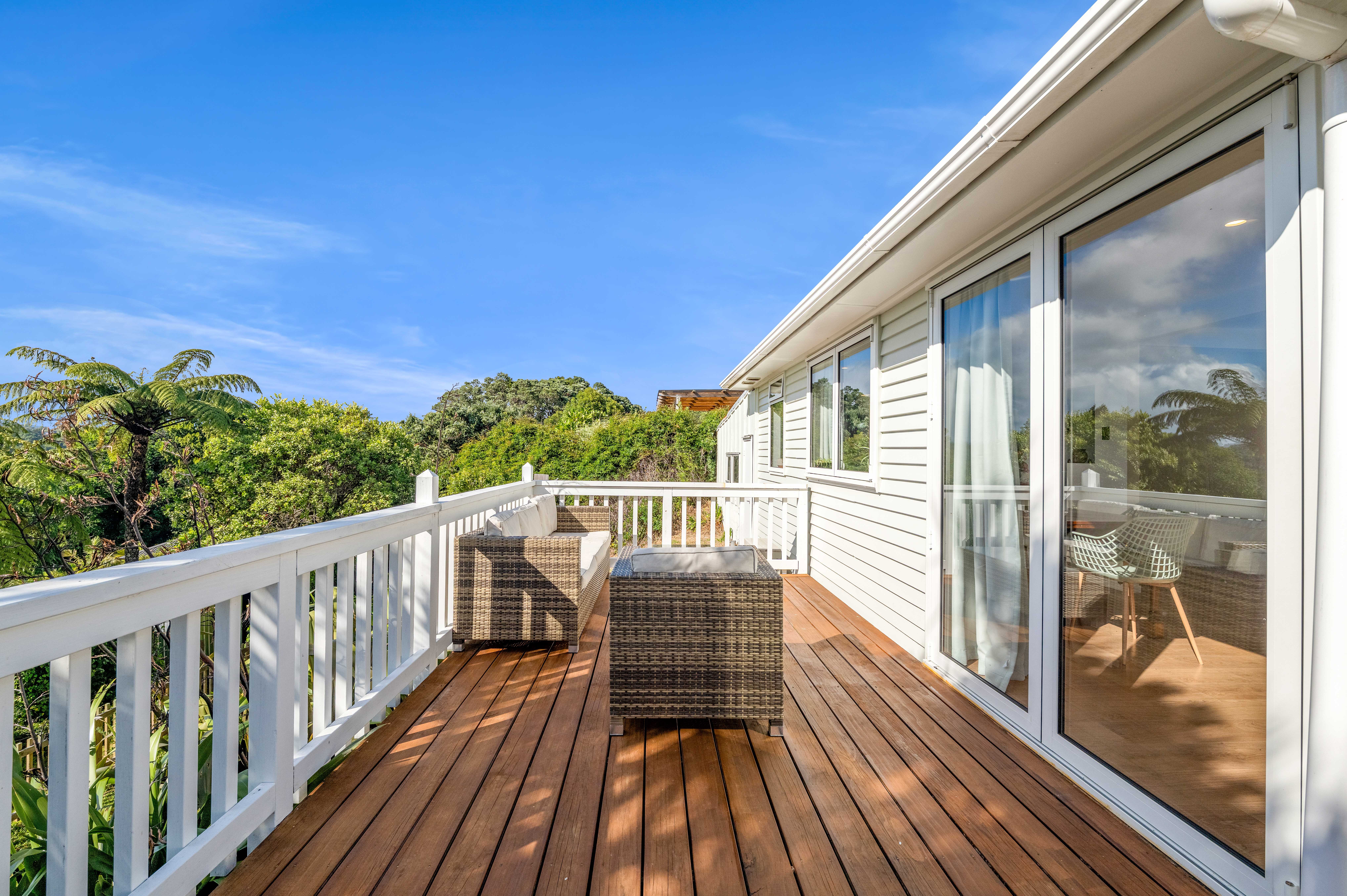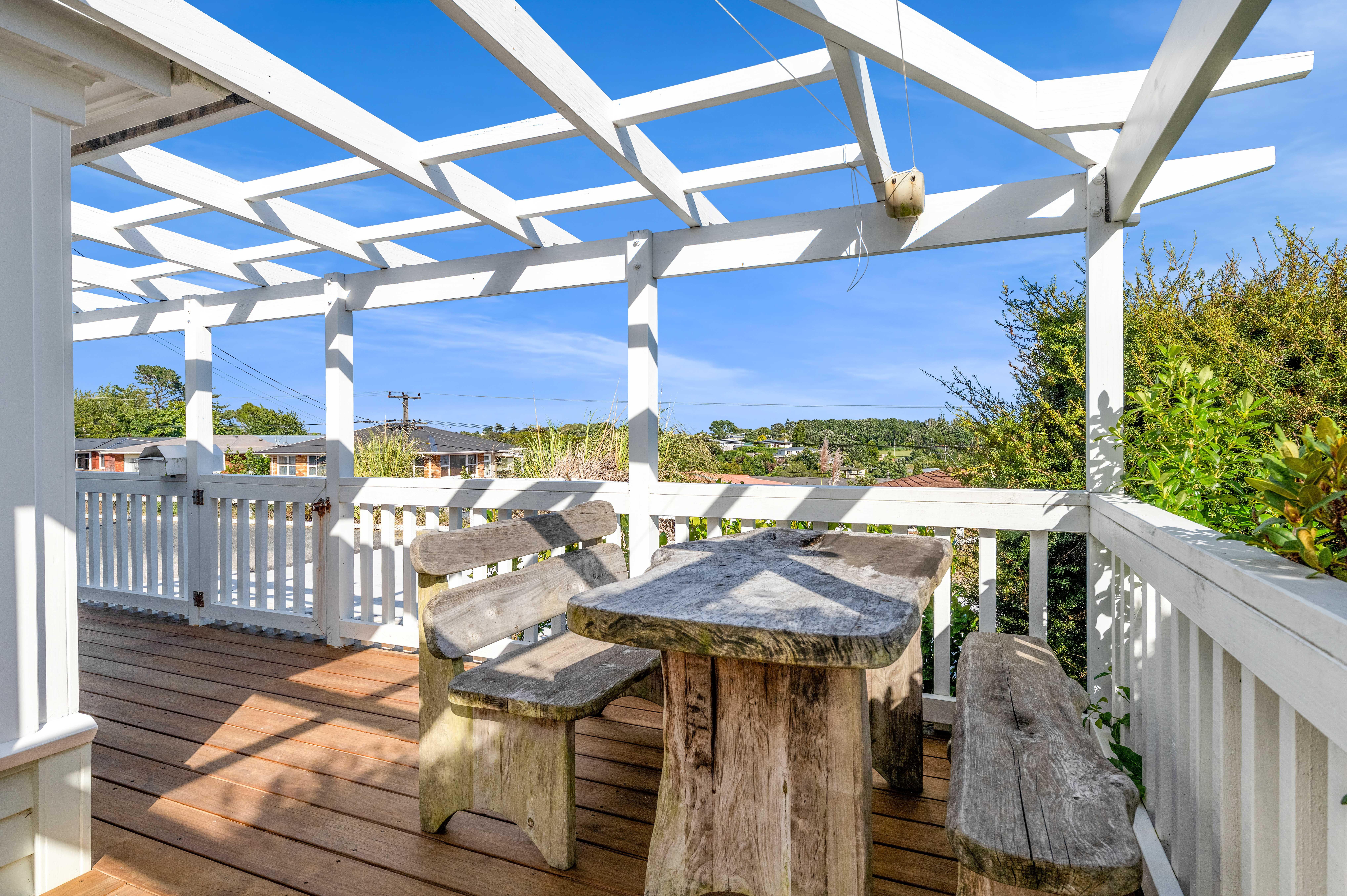 Welcome to this beautifully renovated three bedroom home, elevated to capture expansive views across the ocean, native bush, Paritutu Rock and the rugby stadium. Filled with natural light, it offers a peaceful setting with a real sense of space and privacy. The open plan kitchen, dining and living area is the heart of the home, featuring a stunning Tasmanian Blackwood benchtop and a layout that works effortlessly for everyday living and entertaining. The renovation has been extensive, including full rewiring, upgraded insulation in the ceiling, walls and floors, and double glazing throughout. The result is a home that feels fresh, modern and incredibly comfortable. The fully tiled bathroom is beautifully finished, complete with a gorgeous original vanity and a spacious shower, creating a clean and refined space. Outside, the wrap around deck makes the most of the elevated position and sweeping outlook. The fully fenced, north facing backyard is private and sunny, featuring raised planter boxes and a variety of fruit trees, perfect for those who enjoy growing their own produce. A double length garage provides generous storage and flexibility, whether you need room for a workshop or are considering future extensions. This is a home where all the hard work has been done and it is ready to simply move in and enjoy.