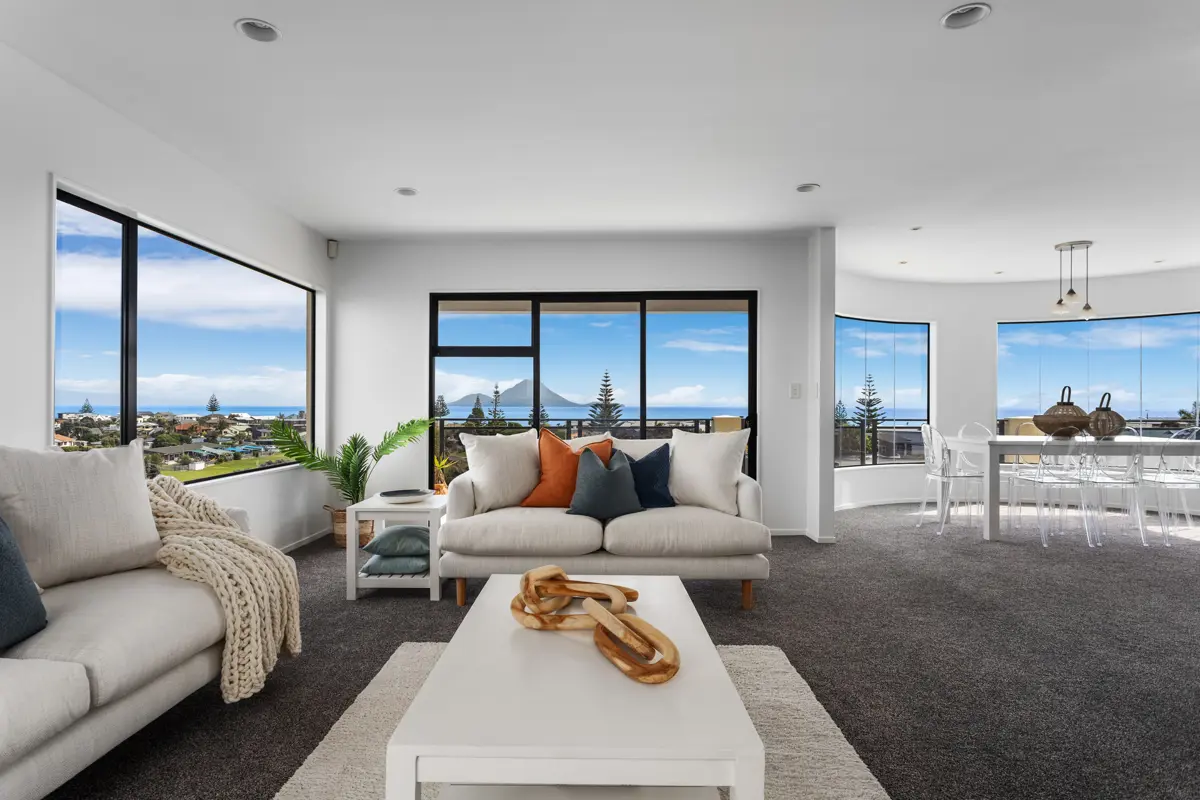 Elevated and sitting proudly at one of the highest points in Coastlands, this spacious home enjoys sweeping 360-degree views of the ocean, Whale Island and the surrounding hills. With its generous proportions and flexible layout, it's perfectly suited for families who value space, privacy, and a connection to the coast. Upstairs, the main living area takes full advantage of the outlook with expansive windows that fill the home with light. The open-plan lounge, dining and kitchen flow effortlessly to the balcony - the ideal spot to unwind while soaking in the sea breeze. The kitchen offers ample storage, an island bench, and seamless indoor-outdoor flow for relaxed entertaining. The primary suite features a walk-in robe, ensuite, and panoramic views, while a guest toilet, office or nursery, and excellent storage complete the upper level. Downstairs provides a second living area, additional bedrooms, and a family bathroom - an ideal space for teenagers, guests, or extended family wanting their own retreat. With double internal-access garaging, off-street parking and easy-care landscaping, this property blends everyday functionality with elevated coastal charm. Key Features: • Elevated position with sweeping coastal and rural views • Open-plan living, dining and kitchen with balcony access • Primary suite with walk-in robe and ensuite • Downstairs living - perfect for teens, guests or Air BnB • Double internal-access garaging and off-street parking A spacious and versatile home where your family can grow, and every day comes with a view. Tender closes Wednesday 19th November at 2pm (no prior sale).