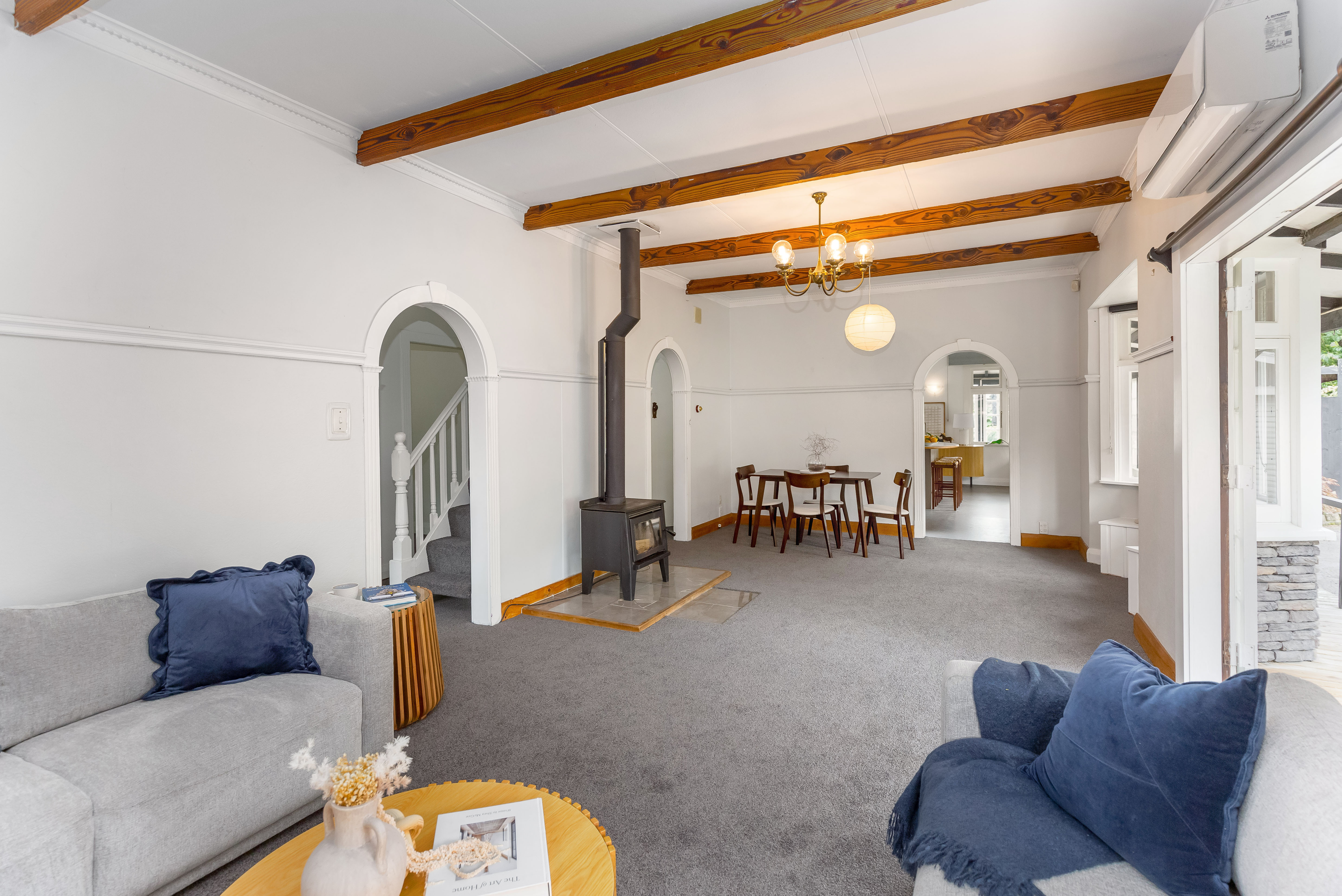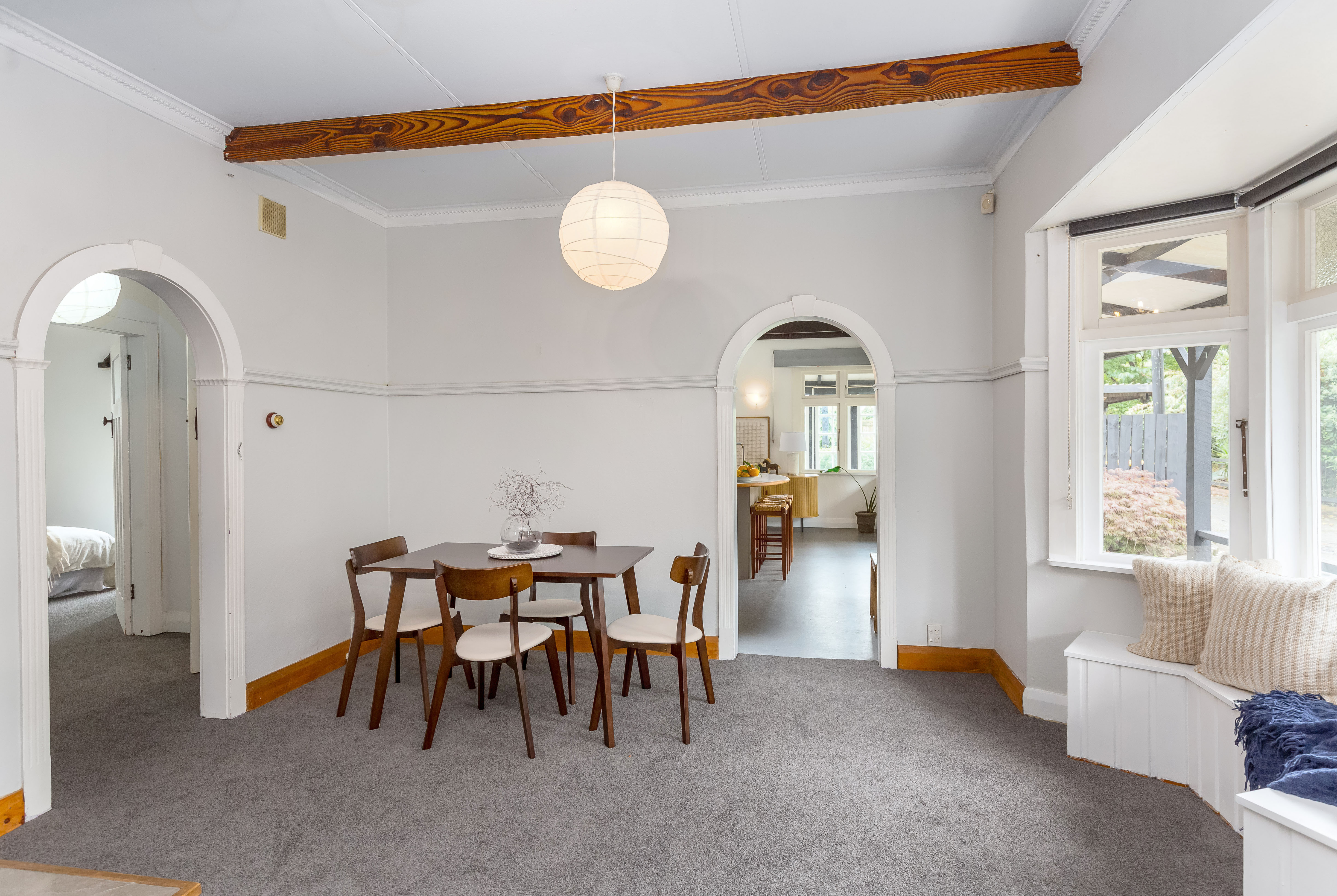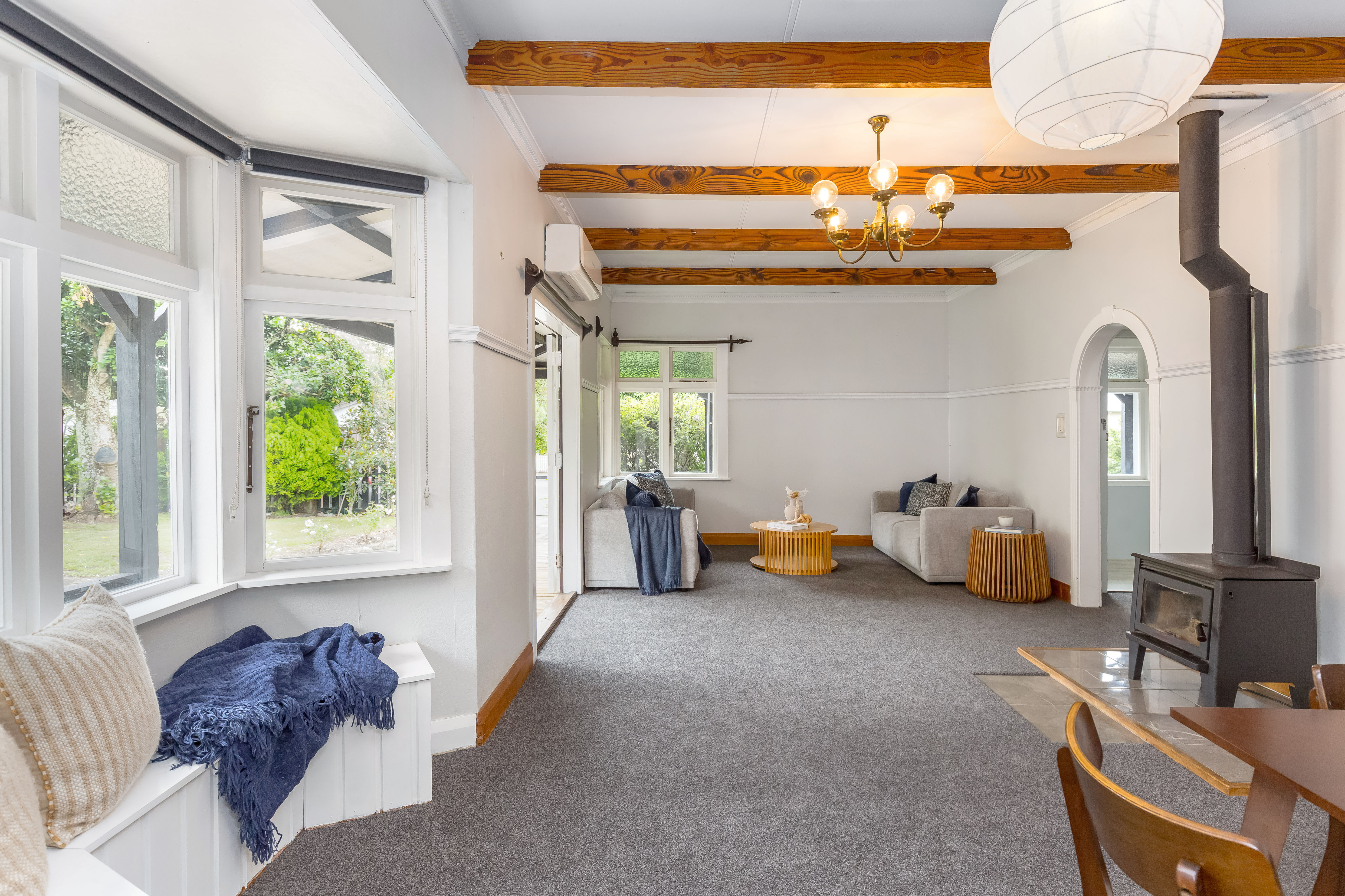 This large two-storey character one hundred-year-old villa offers space, warmth and versatility. Set within a generous, fully-fenced quarter acre garden in a quiet street, it is ideal for families and entertainers alike. Featuring four well-proportioned bedrooms, two downstairs and two upstairs, plus an office and a separate family/TV room, there’s plenty of space for everyone. The up-to-date kitchen, bathroom and laundry, ensure modern efficiency, complementing the art deco era of the original house. The spacious open plan living area opens through French doors onto a sunny wrap-around verandah and private garden, creating a wonderful indoor/outdoor connection and peaceful spaces to relax or entertain. Comfort is assured year round with two heat pumps, a log burner, wall and ceiling insulation, and newly laid carpet. Parking and storage are well catered for with a triple garage plus two carports, and an additional single stand alone garage. A 40 square meter studio is perfect for a teenage rumpus room or extra guest accommodation. Located just one hour from Wellington by road or rail, this home is within easy reach of Featherston’s village, schools and amenities, and only 10 minutes from the boutique destinations of Martinborough and Greytown. A warm, character-filled home with space, comfort and a superb location - this is a property not to be missed.