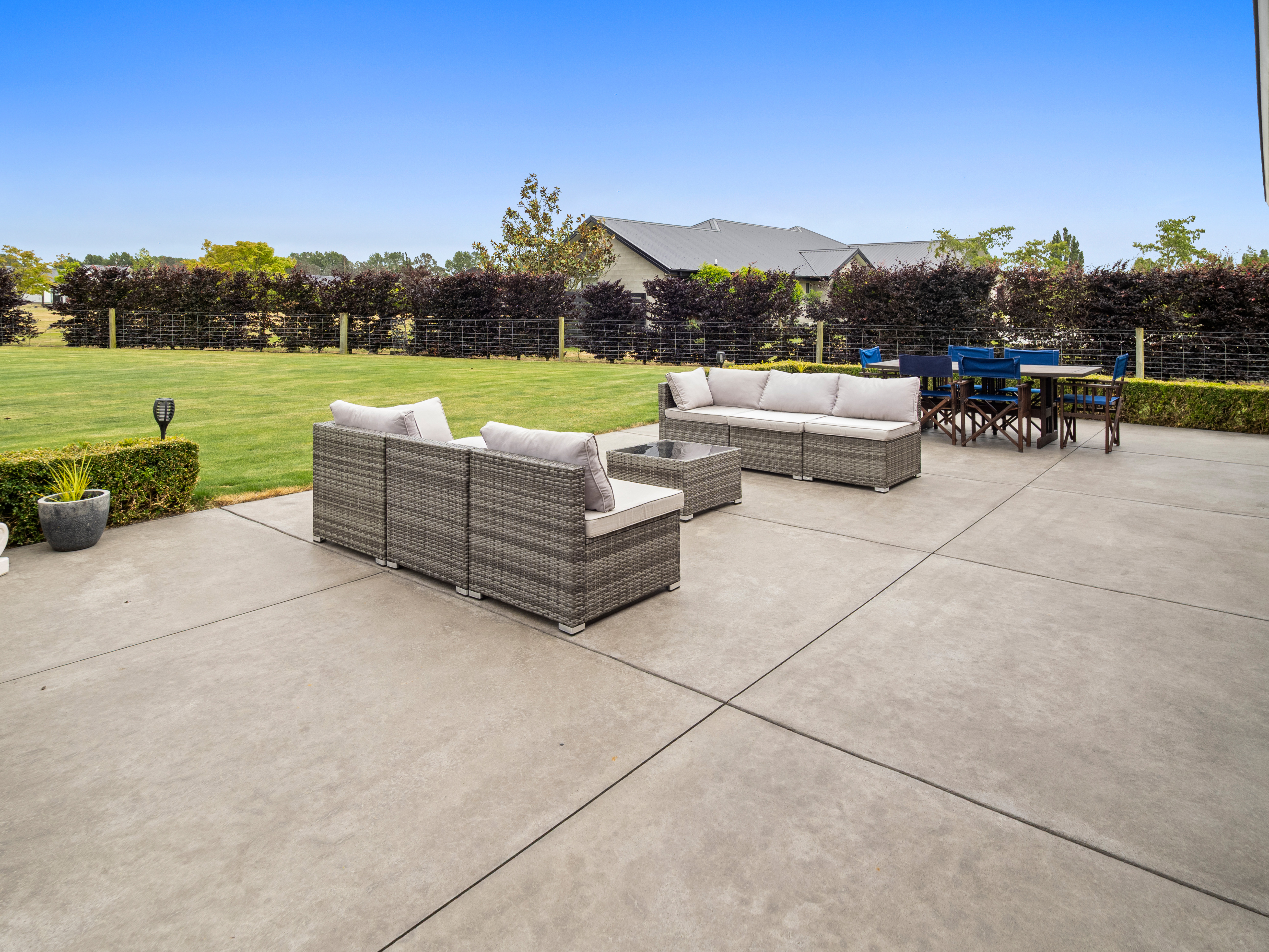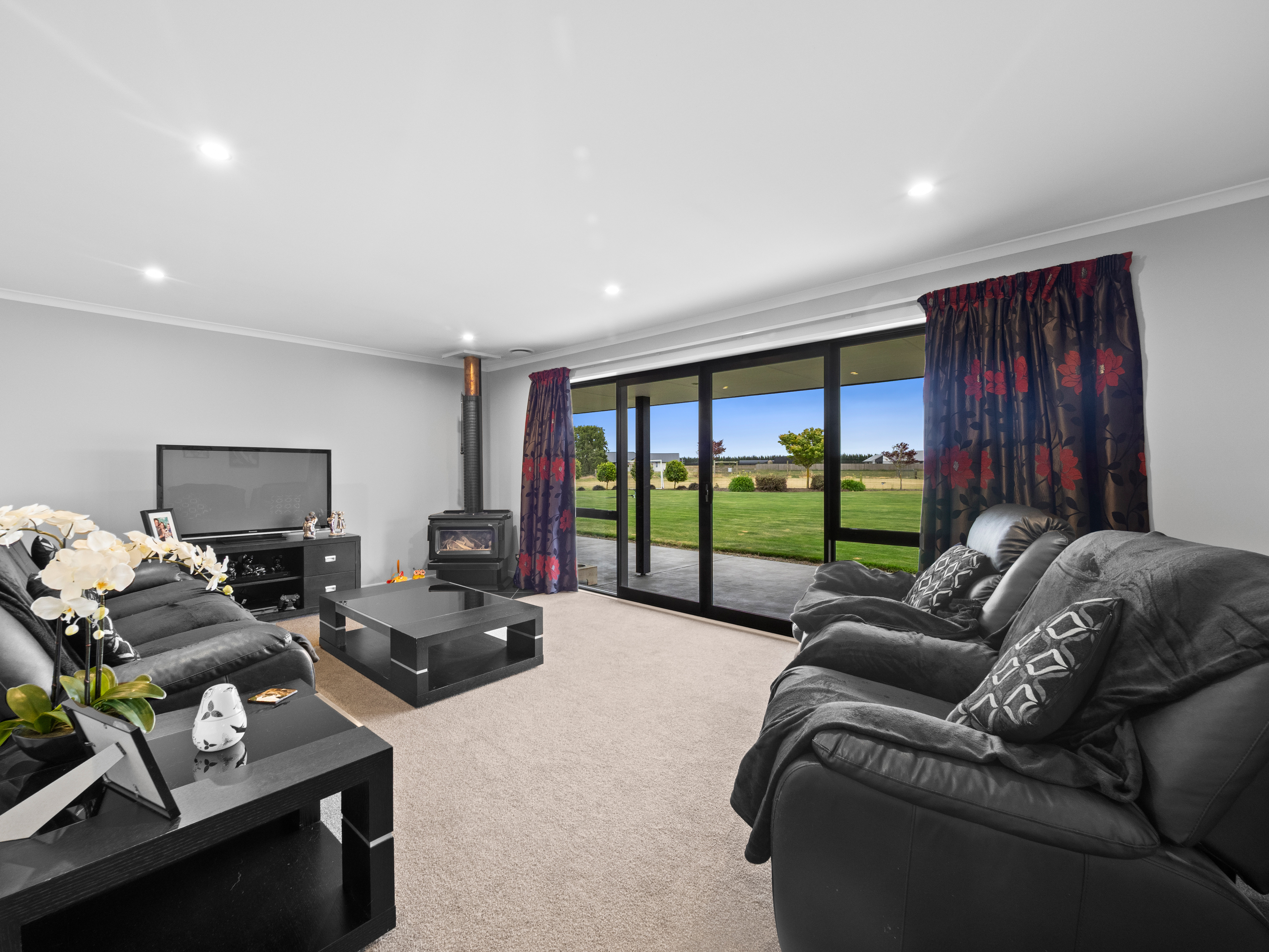 Discover the perfect blend of space and lifestyle in this exceptional 324sqm family home, privately positioned on a generous 4,390sqm section within the town boundary. Tucked down a shared driveway and surrounded by established grounds, this property offers all the benefits of a semi-rural lifestyle while keeping everyday convenience close at hand. Step through the welcoming entrance into a beautifully proportioned home designed for effortless living. At its heart is a large, well-appointed kitchen featuring double ovens, excellent storage, and wonderful garden views. The adjoining dining and living area is warm and inviting, heated by a heat pump, and flows seamlessly out through sliding doors to a substantial patio ideal for summer entertaining, family gatherings, or relaxing in the peaceful setting. A separate lounge offers an additional space to unwind, complete with a log fire, heat transfer system, and doors leading to the covered verandah. Perfectly positioned to frame mountain views, this cosy retreat provides a stunning backdrop in every season. The home offers impressive flexibility, with a large office, fifth bedroom, or media room accessed from the main living area ideal for families needing extra space to work, study, or relax. Four further bedrooms provide excellent accommodation, each featuring generous storage with built-in drawers and shelving. The master suite is a standout, expansive in size with a sliding door to the patio, walk-in wardrobe, and private ensuite. Practicality is also well catered for with three car garaging. The main double garage includes the laundry, while the third bay is separately enclosed and currently set up as a gym perfect for hobbies, storage, or fitness enthusiasts. The lifestyle appeal continues outdoors. An implement shed with power and fibre, garden shed, woodshed, raised vegetable gardens, and a well-fenced paddock with post and wire fencing offer everything you need for pets, a few animals, or simply the enjoyment of extra space. Deadline Sale Closing 2pm, Monday 22nd December 2025 (unless sold prior)