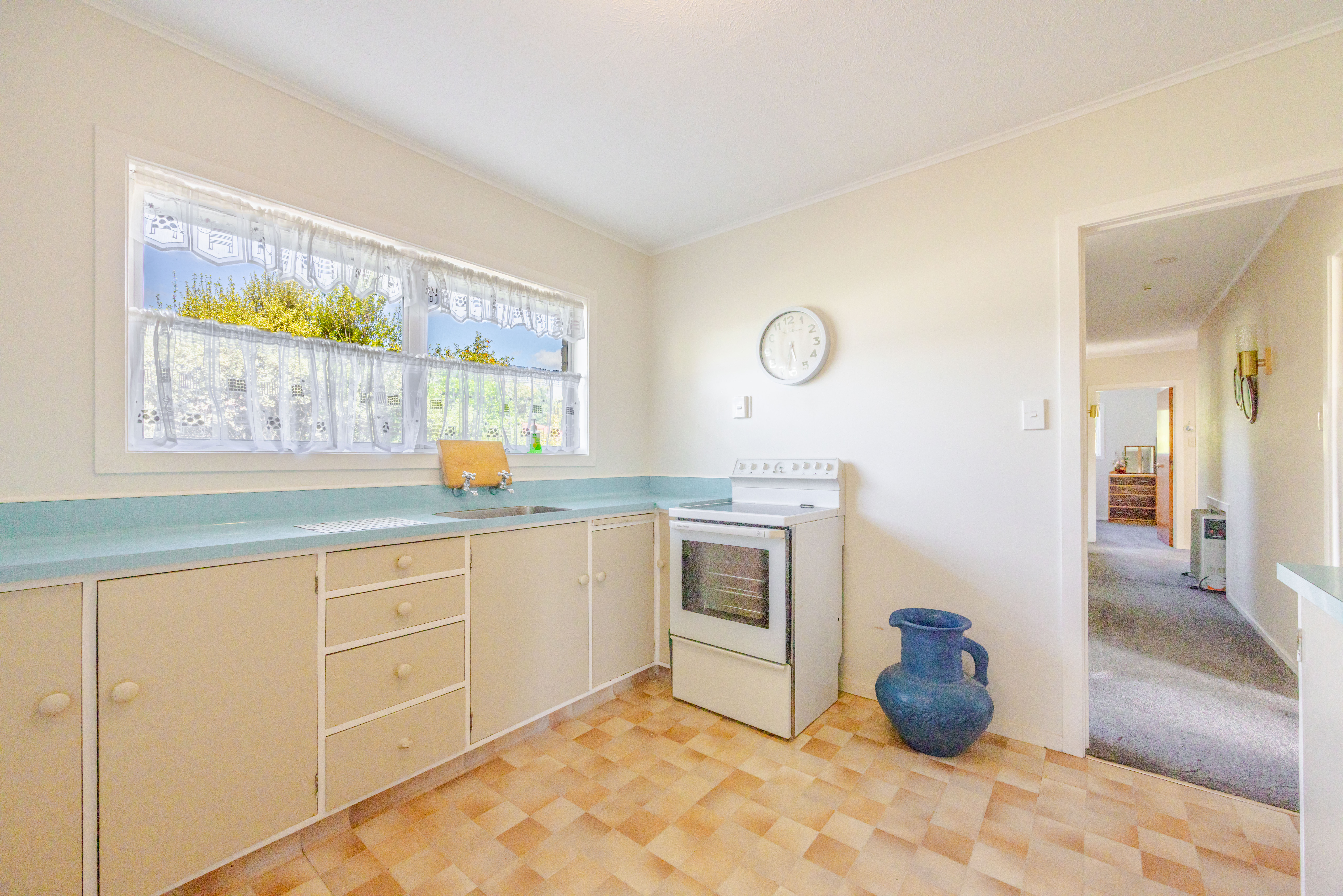 Solid and generous, this three bedroom home is your chance to secure low maintenance, high convenience property freedom! The easy care and dependable style ensures some relief from time cosuming property upkeep and never-ending "jobs". Then there is the walk-to-town location, northfacing all day sun and super spacious layout which is all just icing on the real estate cake! The unexpectedly spacious 160m2 floor plan has three well sized bedrooms and one bathroom, an original kitchen, dining and large living area which faces north to let all that much wanted sun in. There is a woodburner, heat pump, the house is well insulated, brand new curtains and near new carpet. Well presented as it is, this home has great potential to add some value or modernise if you so wish. Outside, there is a small garden to enjoy, a single garage with off street parking from the shared driveway. The setting is very private and the location is gold! Leave the car at home and stroll to town, church, school - its all just minutes from your doorstep. To be sold by DEADLINE SALE : Closing Tuesday 14 April at 2pm (will not be sold prior).
