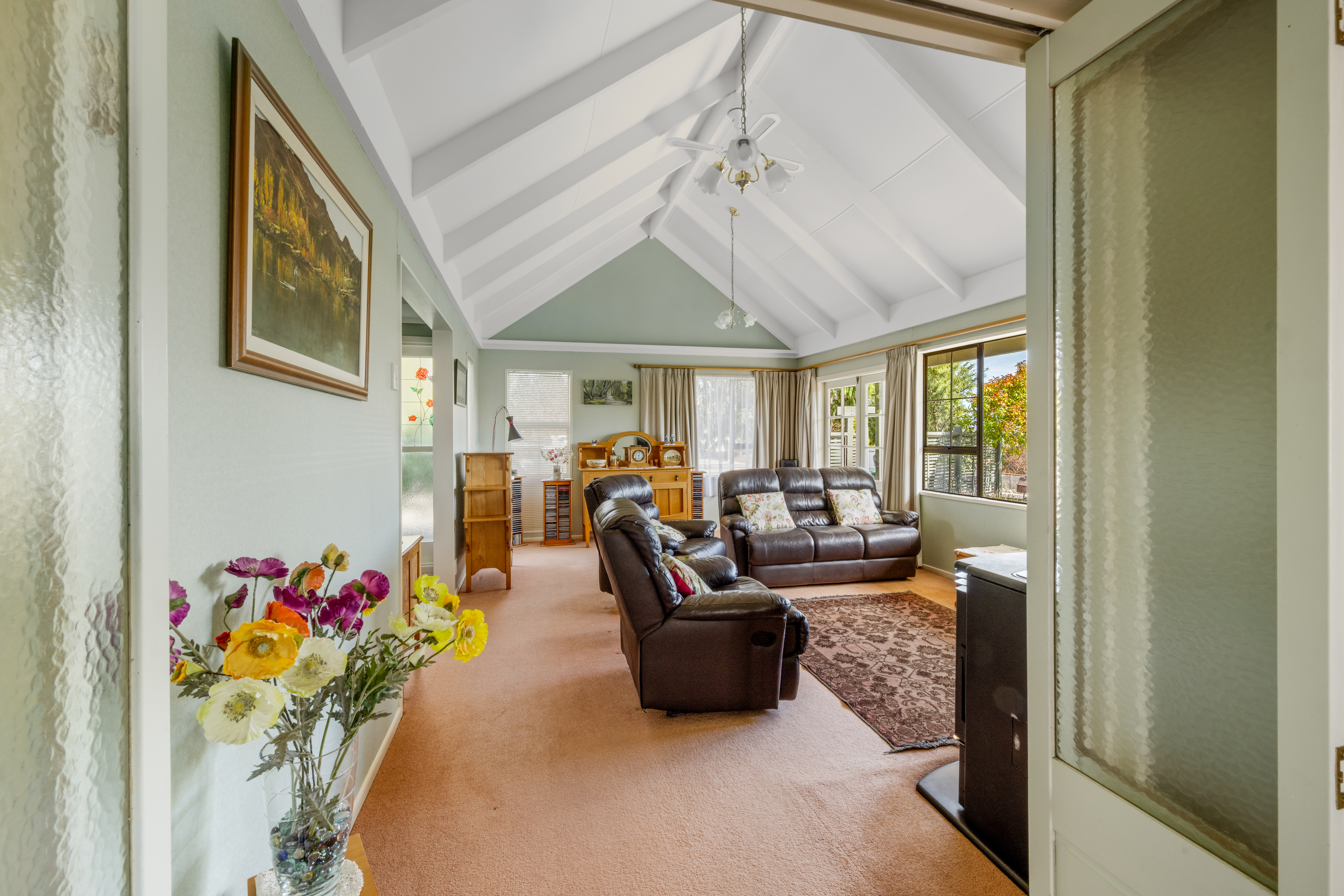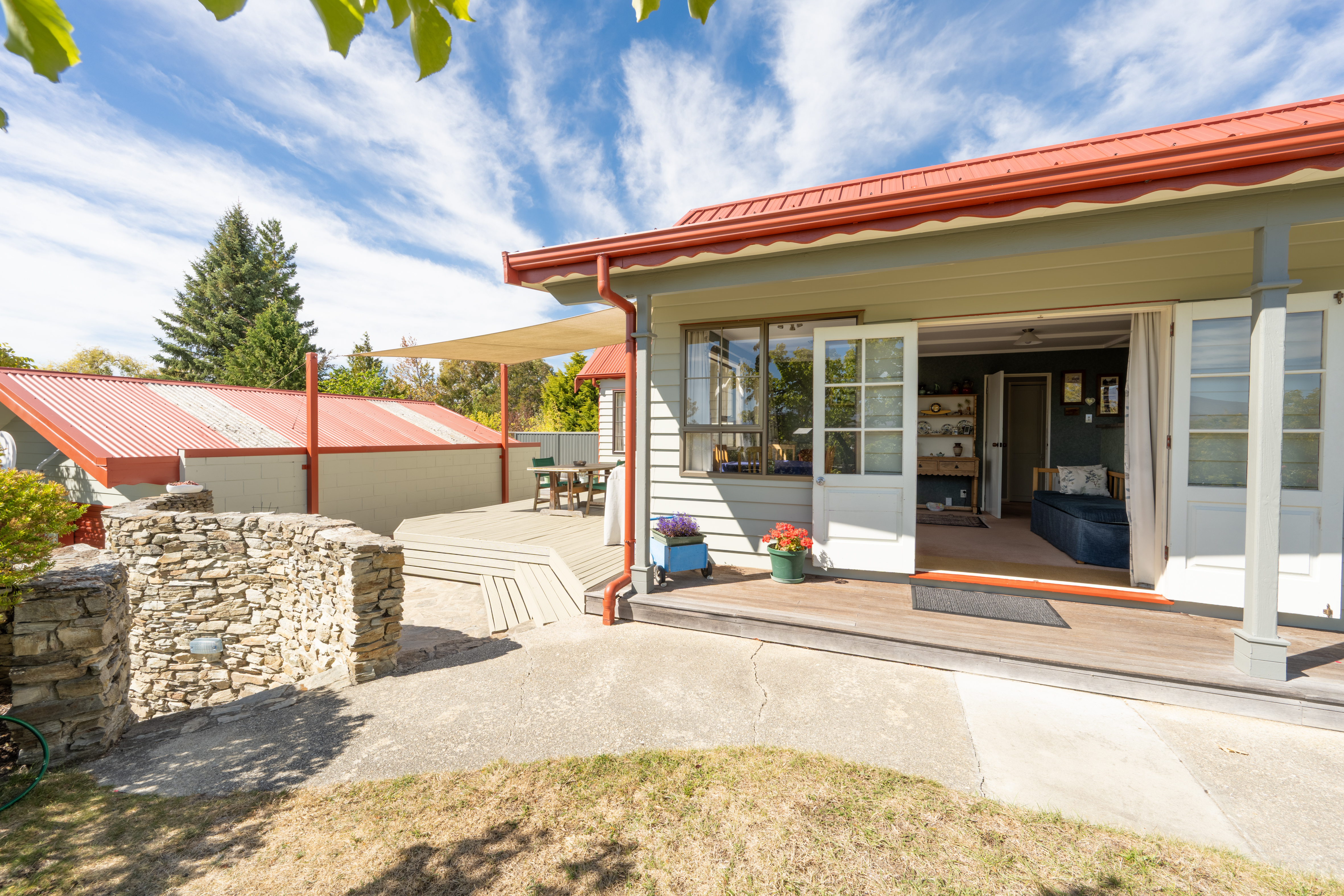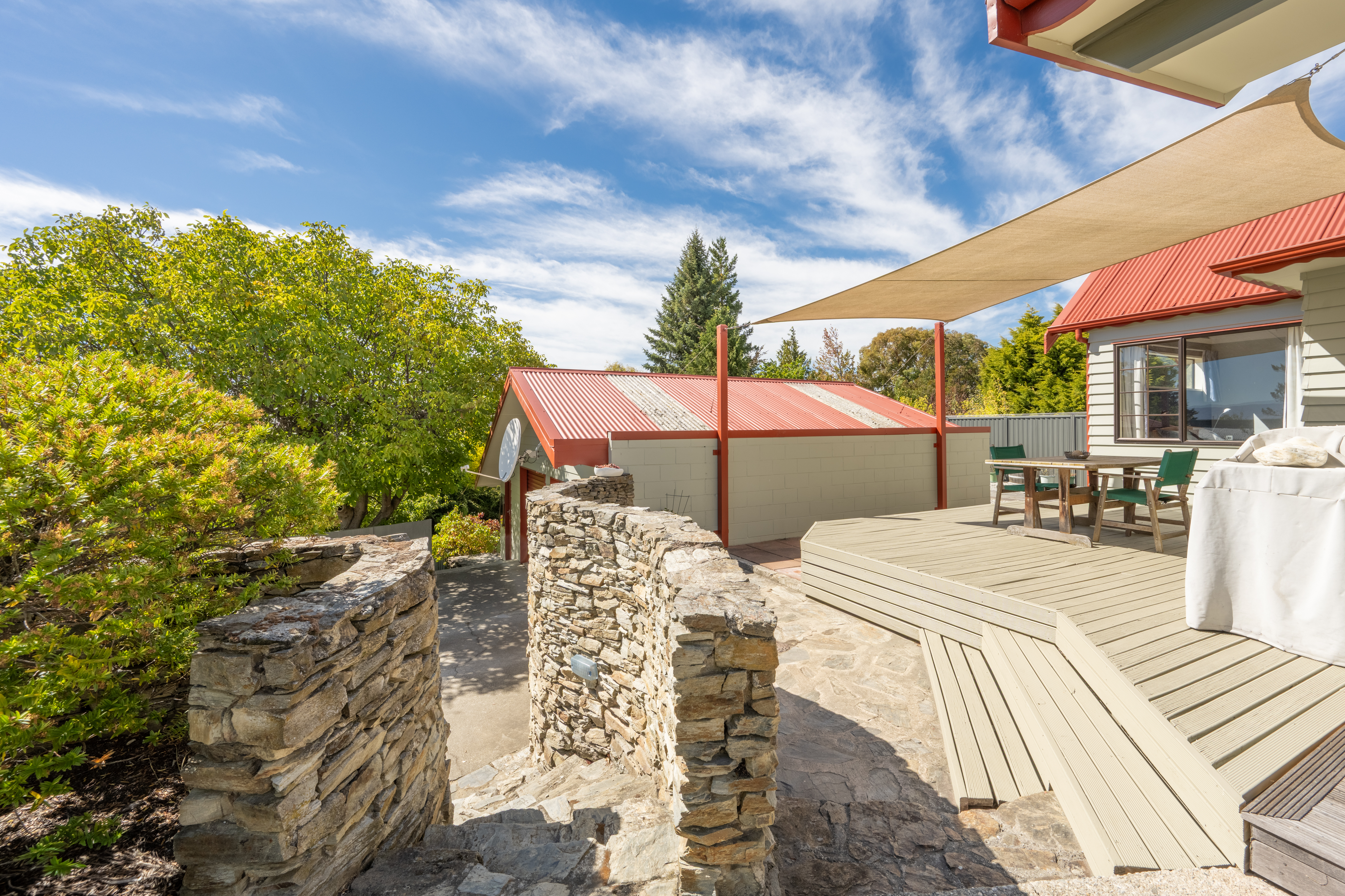 Discover comfort, space, and privacy in this inviting three-bedroom home, perfectly positioned to capture peaceful views and surrounded by established grounds. At the heart of the home, the kitchen is truly the hub - a central gathering space where family and friends naturally come together. It connects effortlessly to the dining area, which flows out to a charming veranda, perfect for morning coffee or relaxed evening meals. A separate lounge provides an additional living space to unwind or entertain, while three great-sized bedrooms and a well-appointed family bathroom offer comfortable accommodation for families or guests. Outdoors, the appeal continues with a deck area complete with a shade sail, creating a sheltered setting for year-round entertaining. The property also features a double garage plus loads of off-street parking, providing ample room for vehicles, trailers, or visitors. Character-filled schist walls add timeless charm, while fruit trees, garden beds, and established landscaping create a private sanctuary with beautiful views and a wonderful sense of tranquility. A home that blends lifestyle, privacy, and practicality - ready for you to enjoy