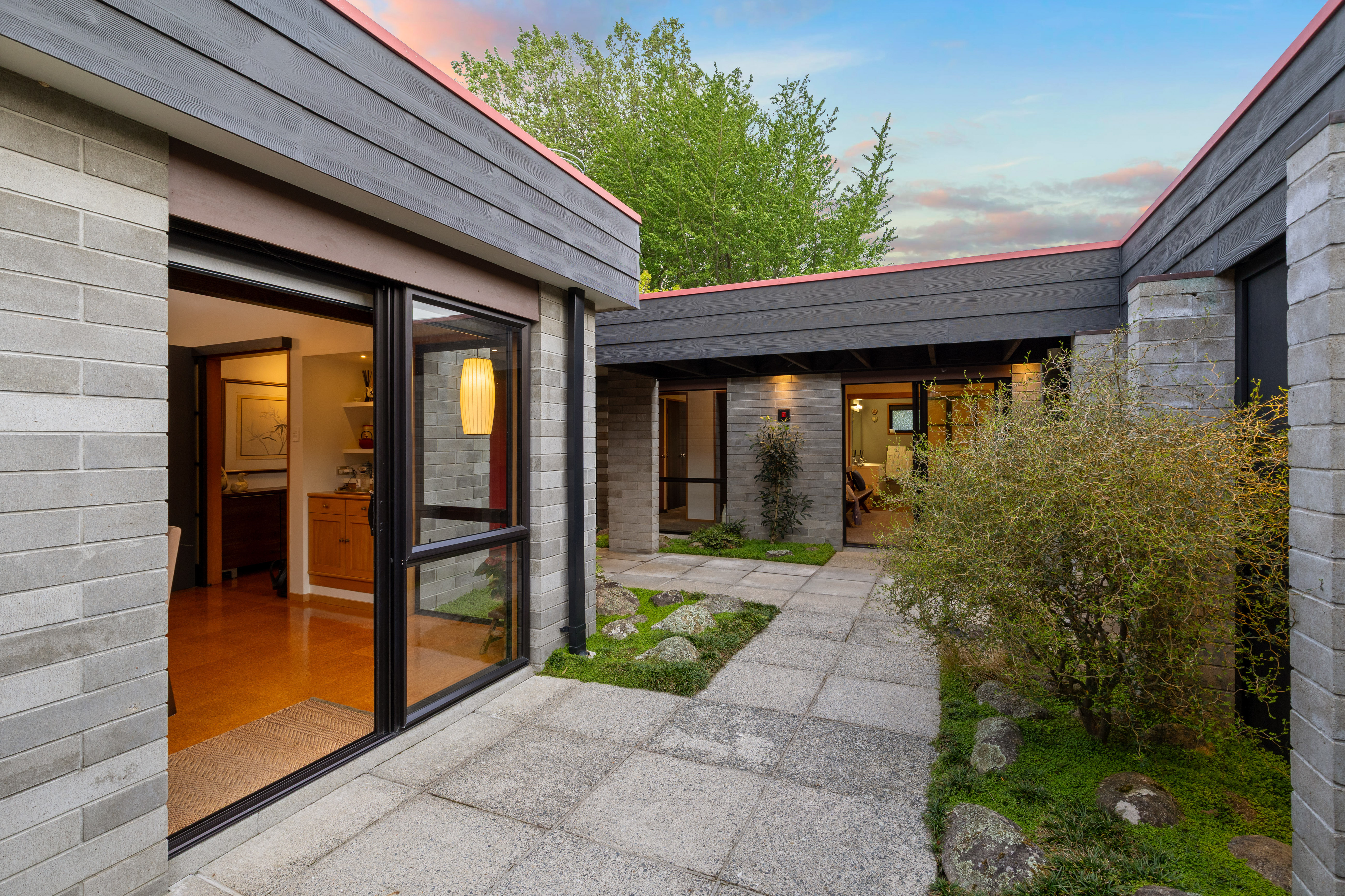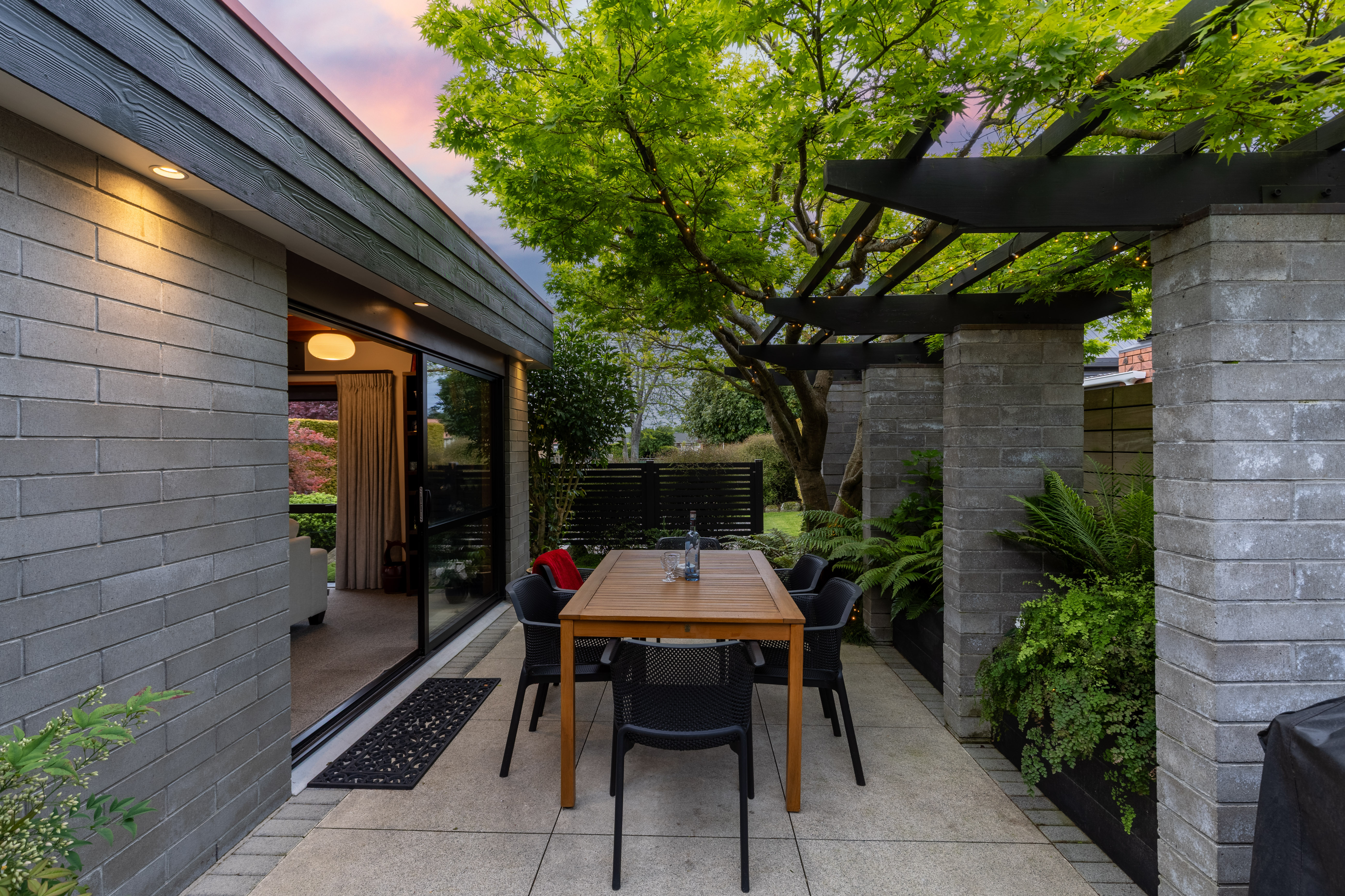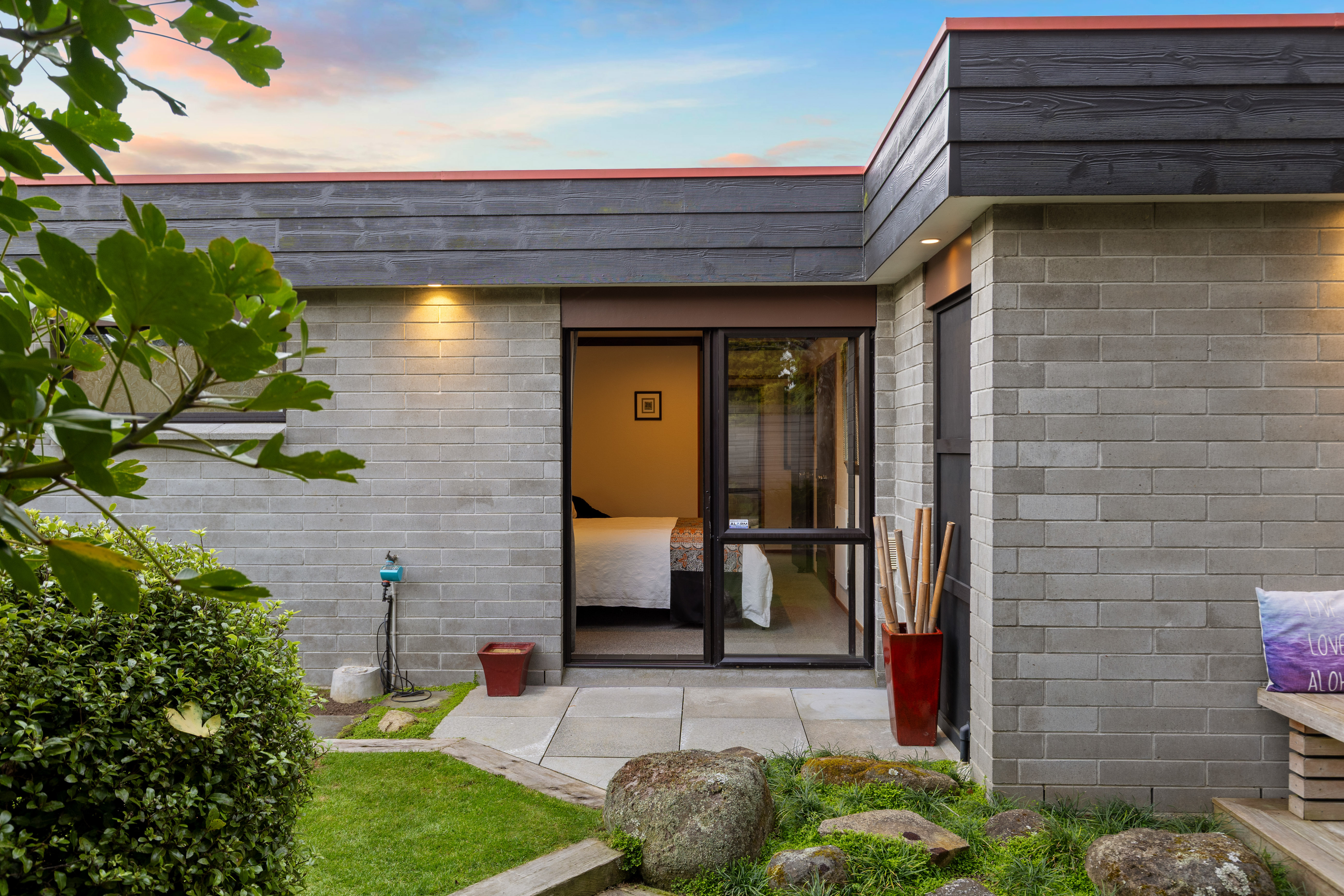 This striking mid century modern residence in Matamata blends timeless architecture with refined Japanese inspired design, creating a home that feels both contemporary and serene. Privately positioned and architecturally designed in the 1970s, the property has been thoughtfully renovated to honour its original character while introducing elegant, modern enhancements. The home showcases enduring quality and style. Signature features include large windows and expansive ranch sliders that invite natural light into every room, while framing ever-changing views of intimate courtyard spaces and mature, softly layered landscaping. The connection between indoors and outdoors is seamless, enhancing the home's tranquil, Zen like atmosphere. Inside, the design is both warm and sophisticated. Rimu timber sarked ceilings, exposed Douglas Fir beams, and sleek architectural lines are complemented by Japanese-style shoji screens and carefully curated lighting. The result is a calming environment where every detail has been considered, and every space feels purposeful. The heart of the home is a centrally positioned, contemporary kitchen that flows effortlessly into open-plan dining and living areas. These spaces extend to private patios, perfect for entertaining or quiet relaxation. A second spacious lounge opens to a beautifully designed outdoor entertaining zone, complete with a built in fireplace, surrounded by manicured, fully fenced grounds and established landscaping that enhances both privacy and ambience. Accommodation includes three generous double bedrooms. The master suite features an ensuite, walk in wardrobe, and direct patio access, mirrored by the second bedroom. Both bathrooms are tastefully appointed with modern cabinetry, while ample storage throughout ensures practicality matches style. A covered walkway provides easy access to the open garaging and workshop, adding further convenience to this well-considered home. Located close to local shops, cafes, sports facilities, and medical services, with straightforward access to larger centres, this property offers both lifestyle and connectivity. The home backs onto Tom Grant Drive, and is a private, peaceful retreat thanks to its thoughtful positioning and established surroundings. Distinctive, peaceful, and architecturally significant, this is a rare opportunity to secure a home that stands apart, where mid century design meets contemporary living in perfect harmony.