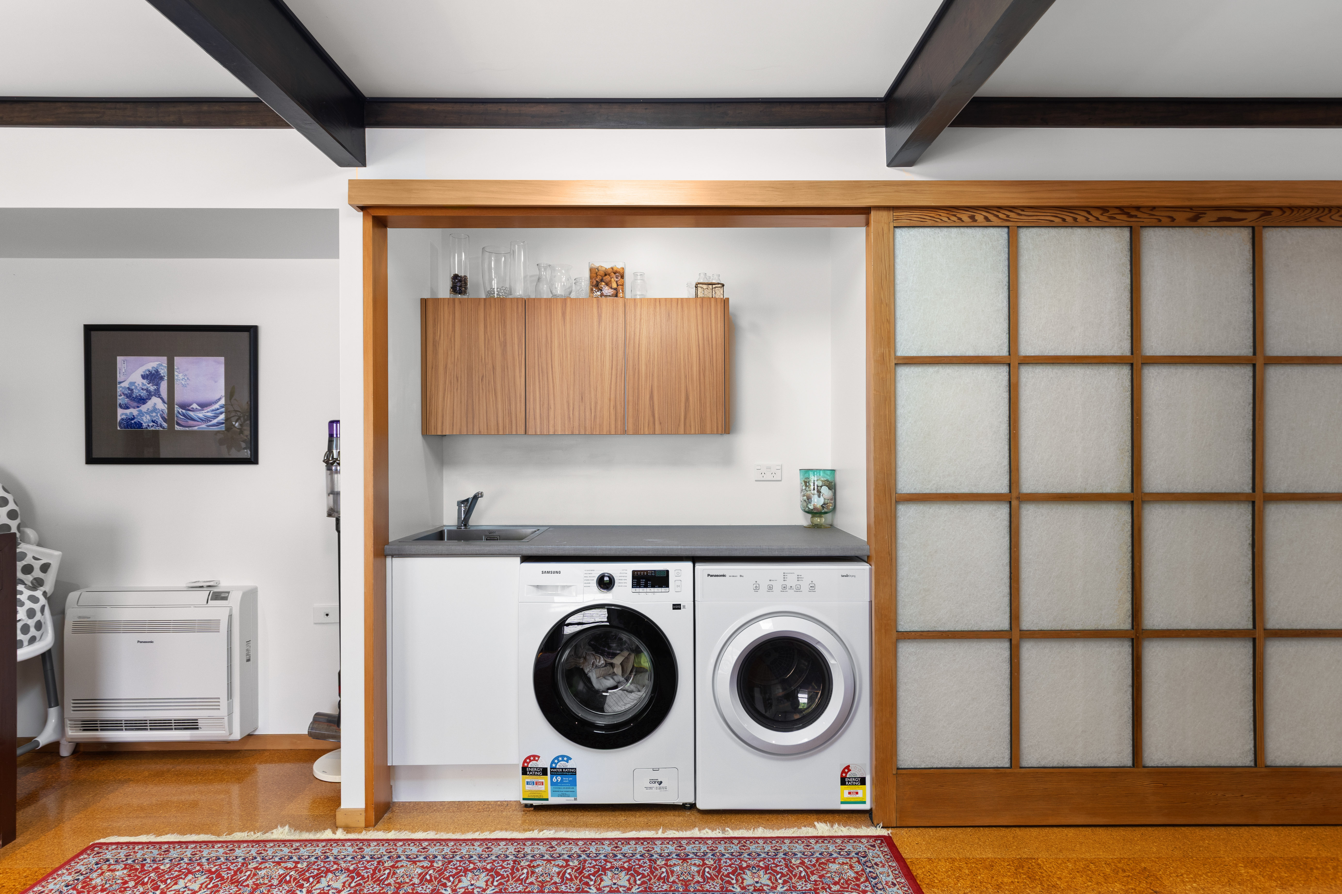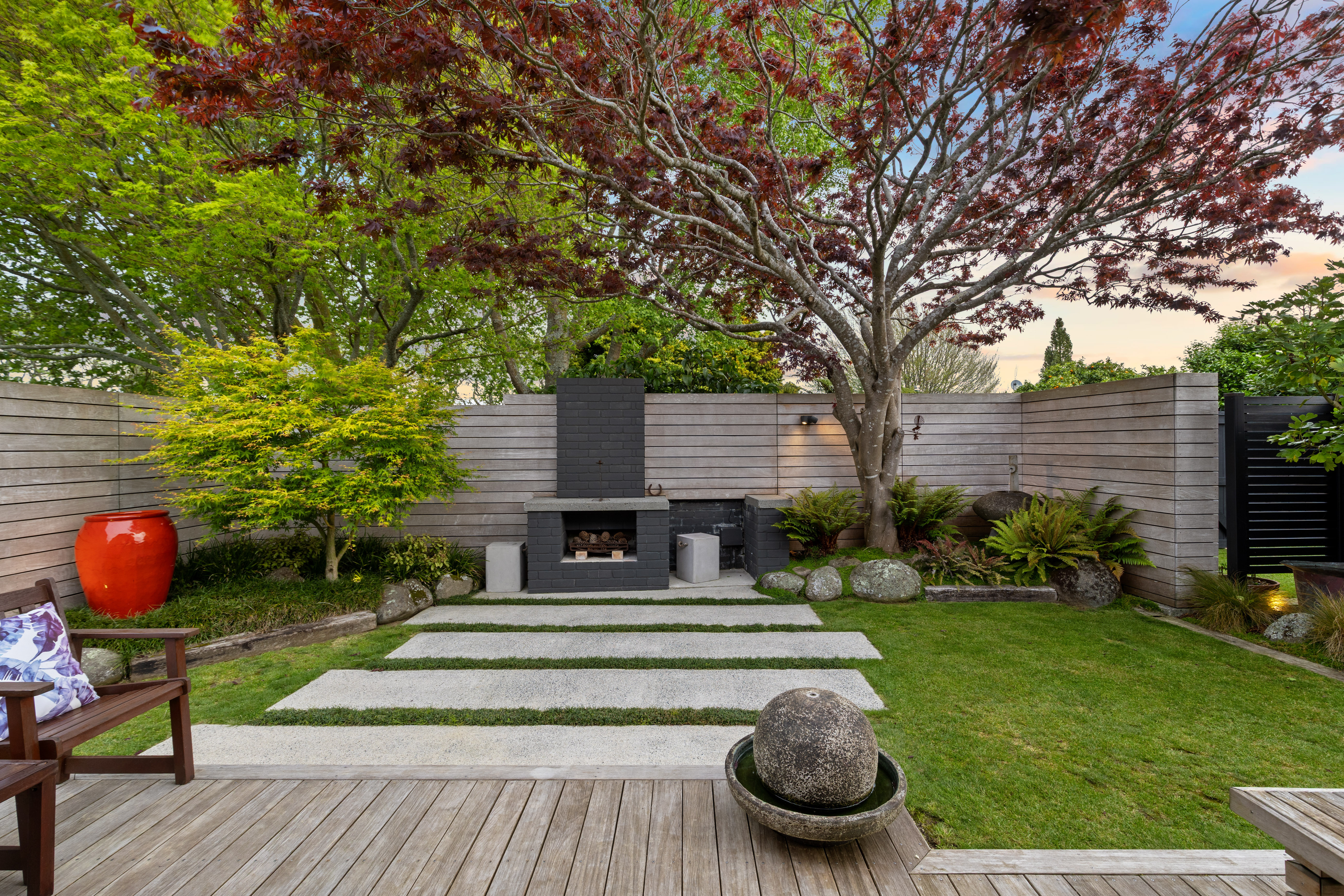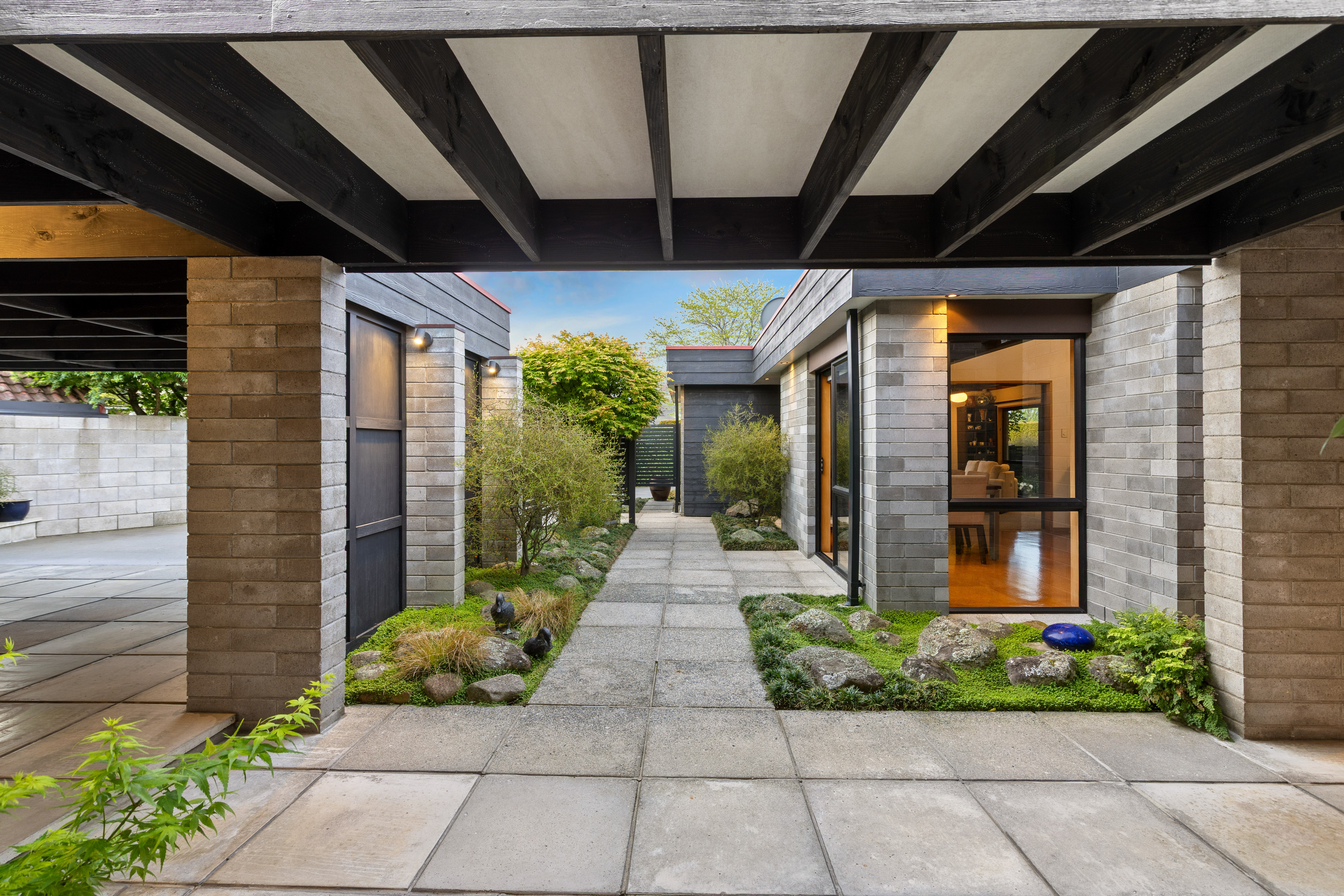 This striking mid century modern residence in Matamata blends timeless architecture with refined Japanese inspired design, creating a home that feels both contemporary and serene. Privately positioned and architecturally designed in the 1970s, the property has been thoughtfully renovated to honour its original character while introducing elegant, modern enhancements. The home showcases enduring quality and style. Signature features include large windows and expansive ranch sliders that invite natural light into every room, while framing ever-changing views of intimate courtyard spaces and mature, softly layered landscaping. The connection between indoors and outdoors is seamless, enhancing the home's tranquil, Zen like atmosphere. Inside, the design is both warm and sophisticated. Rimu timber sarked ceilings, exposed Douglas Fir beams, and sleek architectural lines are complemented by Japanese-style shoji screens and carefully curated lighting. The result is a calming environment where every detail has been considered, and every space feels purposeful. The heart of the home is a centrally positioned, contemporary kitchen that flows effortlessly into open-plan dining and living areas. These spaces extend to private patios, perfect for entertaining or quiet relaxation. A second spacious lounge opens to a beautifully designed outdoor entertaining zone, complete with a built in fireplace, surrounded by manicured, fully fenced grounds and established landscaping that enhances both privacy and ambience. Accommodation includes three generous double bedrooms. The master suite features an ensuite, walk in wardrobe, and direct patio access, mirrored by the second bedroom. Both bathrooms are tastefully appointed with modern cabinetry, while ample storage throughout ensures practicality matches style. A covered walkway provides easy access to the open garaging and workshop, adding further convenience to this well-considered home. Located close to local shops, cafes, sports facilities, and medical services, with straightforward access to larger centres, this property offers both lifestyle and connectivity. The home backs onto Tom Grant Drive, and is a private, peaceful retreat thanks to its thoughtful positioning and established surroundings. Distinctive, peaceful, and architecturally significant, this is a rare opportunity to secure a home that stands apart, where mid century design meets contemporary living in perfect harmony.