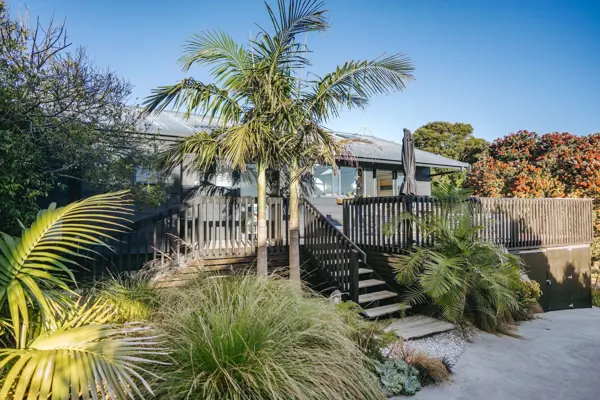 Tucked away in one of Raglan’s most peaceful neighbourhoods, 15 Tutchen Avenue feels like a hidden retreat. Just a short stroll to town and only 80 metres from the Kaitoke Walkway, it offers that rare mix of convenience and calm — where life slows the moment you turn into the street. The property unfolds in three parts: a beautifully renovated four-bedroom home (111m2), a private one-bedroom self-contained dwelling (44m2 with its own power meter), and a converted garage (34m2) now serving as a functional studio and work-from-home space which is fully insulated. Each part has its own character, yet together they create a modern, flexible haven. It’s little wonder this home was featured in Your Home and Garden magazine — every detail reflects thoughtful design and effortless style. The main home is light-filled and inviting, its crisp aesthetic balanced with warmth and comfort. The master suite is a true sanctuary, complete with its own ensuite. From the dining area, sliding doors open to a sun-soaked deck that floats above the garden — the perfect spot for brunch, evening sunsets, or long summer nights with friends. The converted garage has become a generous studio with clean lines and calm energy — ideal as a creative space, home office, or private retreat. This is a fantastic property for buyers looking for a property with more than the usual to offer, a real opportunity not to be missed! At the rear, the one-bedroom dwelling offers total independence. With its own living area, bathroom, and garden, it’s a self-contained oasis — perfect for extended family, guests, or even as a boutique rental. Framing it all are lush tropical gardens that soften the edges of daily life. Palms and greenery bring a relaxed, holiday feel, making this home as much a retreat as it is a residence. Here, time stretches, the air feels lighter, and life moves at an easier rhythm. Everything is done here, just move in and enjoy all that Raglan has to offer! This is an outstanding opportunity not to be missed.