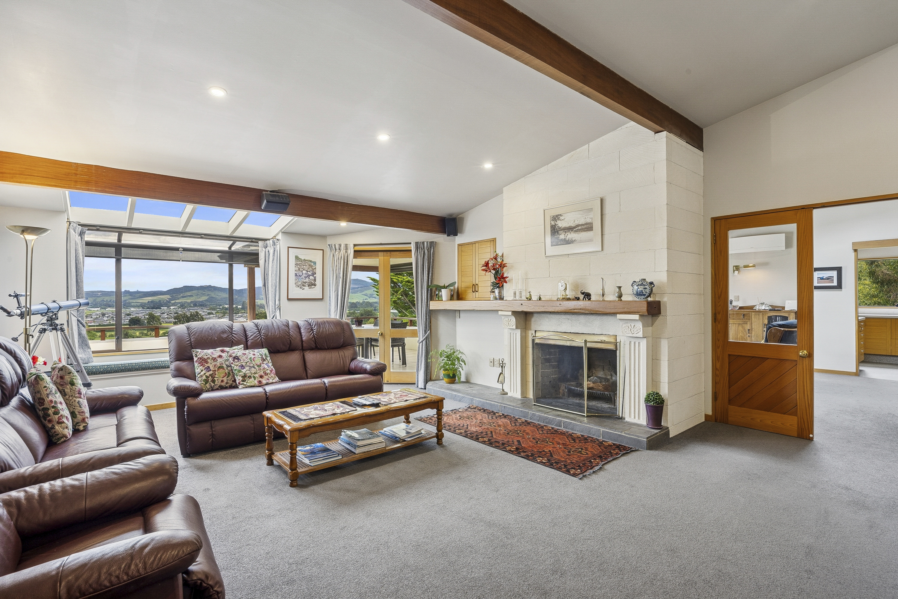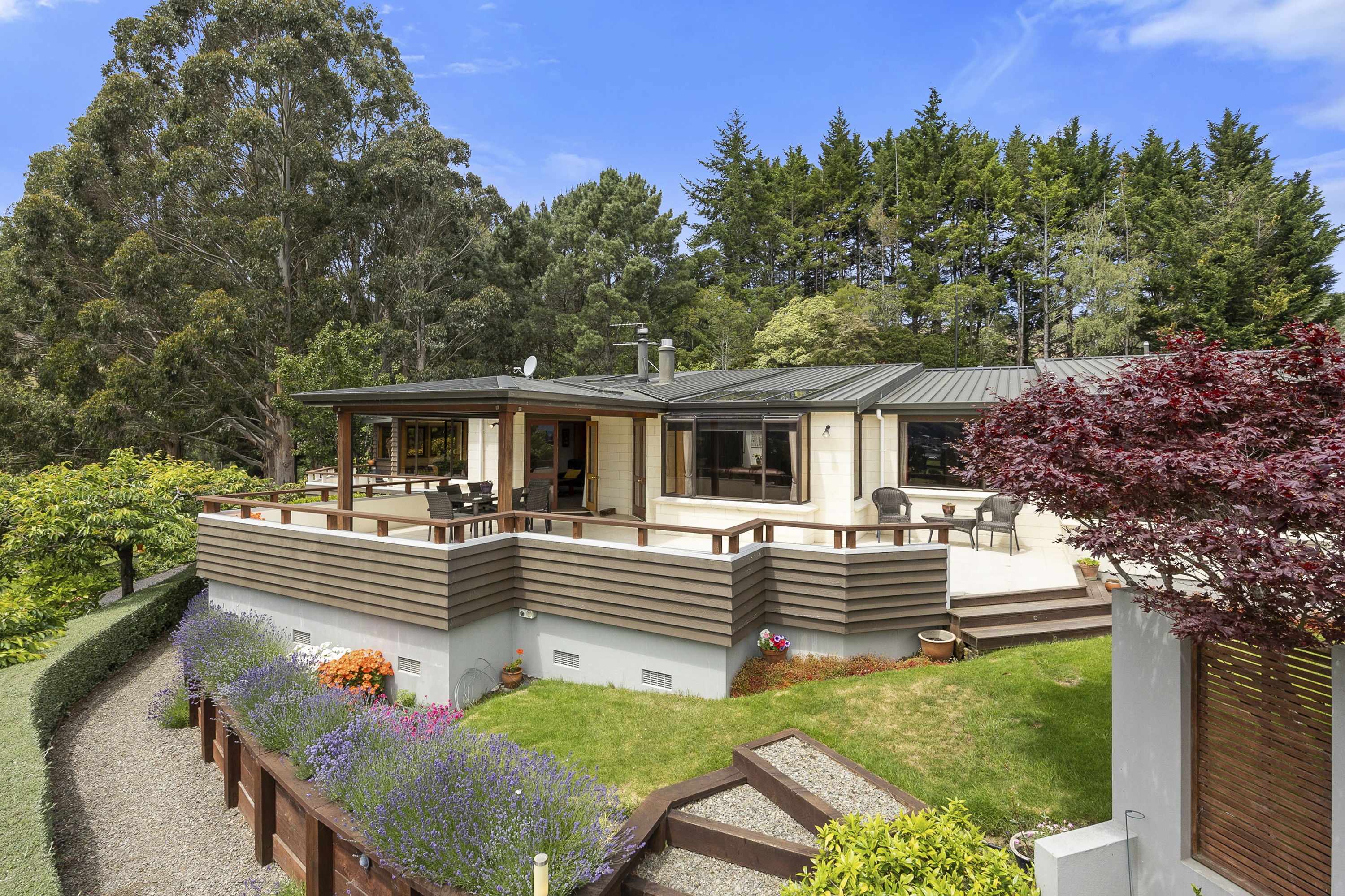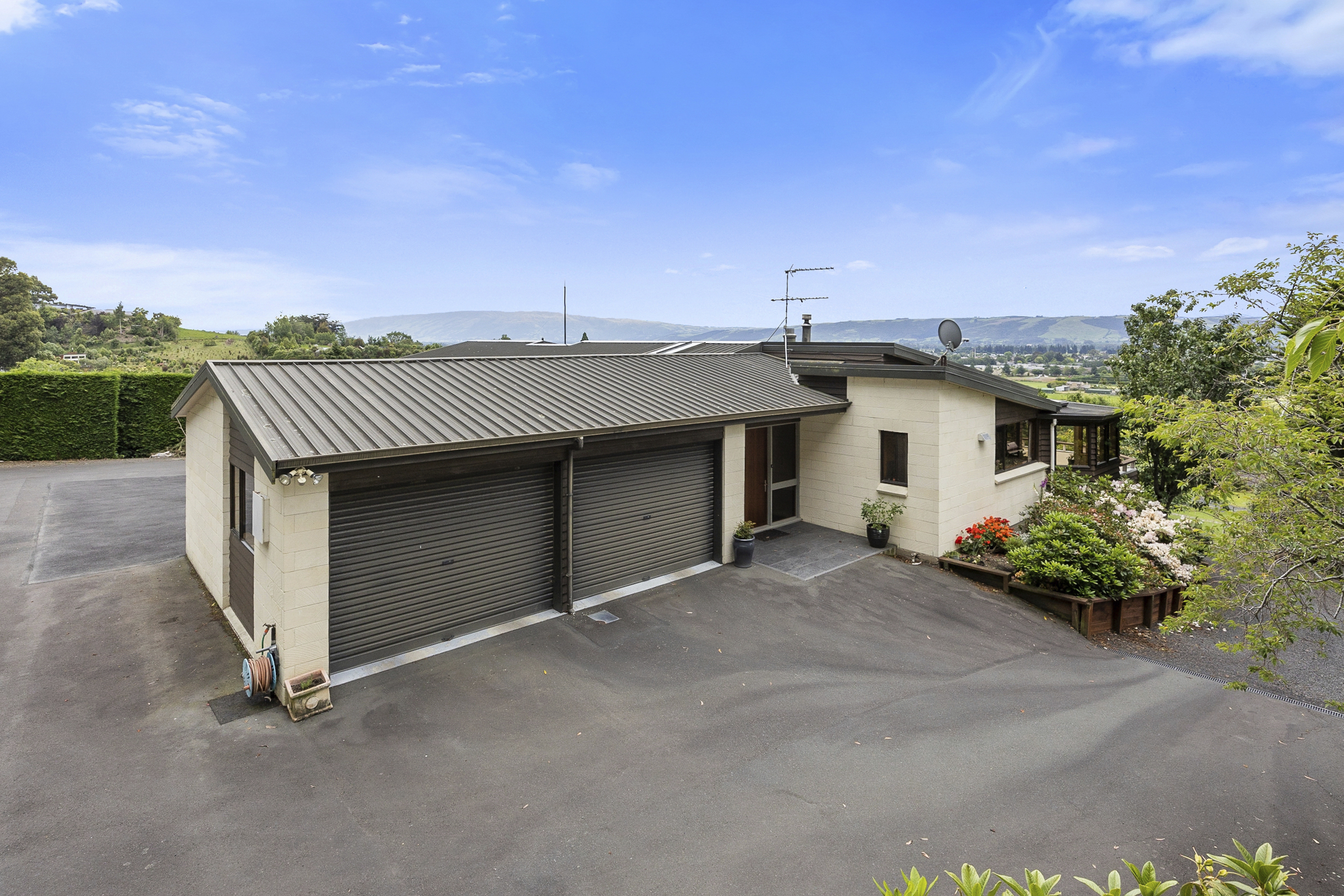 Set peacefully on the outskirts of Mosgiel, this beautifully maintained home with an expansive sundrenched deck taking in the views over Mosgiel and beyond and the best Al fresco dining or coffee spot around. Set on just over 2 acres (9157m²) this hidden retreat offers a beautifully landscaped garden with a glass house, fruit trees, veggie gardens and a paddock for a few sheep or a pony. Inside everyday life flows easily between the kitchen, dining and living space with a second lounge featuring an open fire with doors opening to the deck extending the private entertaining space considerably. The four double bedrooms, master with ensuite are generously sized with a well-appointed family bathroom and separate laundry. A log burner and heat pumps take care of year-round comfort. The internally accessed double garaging is of generous size and offers a drive through option. A single standalone garage provides great storage. This is a home, made for living, welcoming and filled with heart. Due to ongoing road works on Gladstone Road and one-way traffic restrictions, access to 164 Gladstone Road is via the Wingatui Road end only.