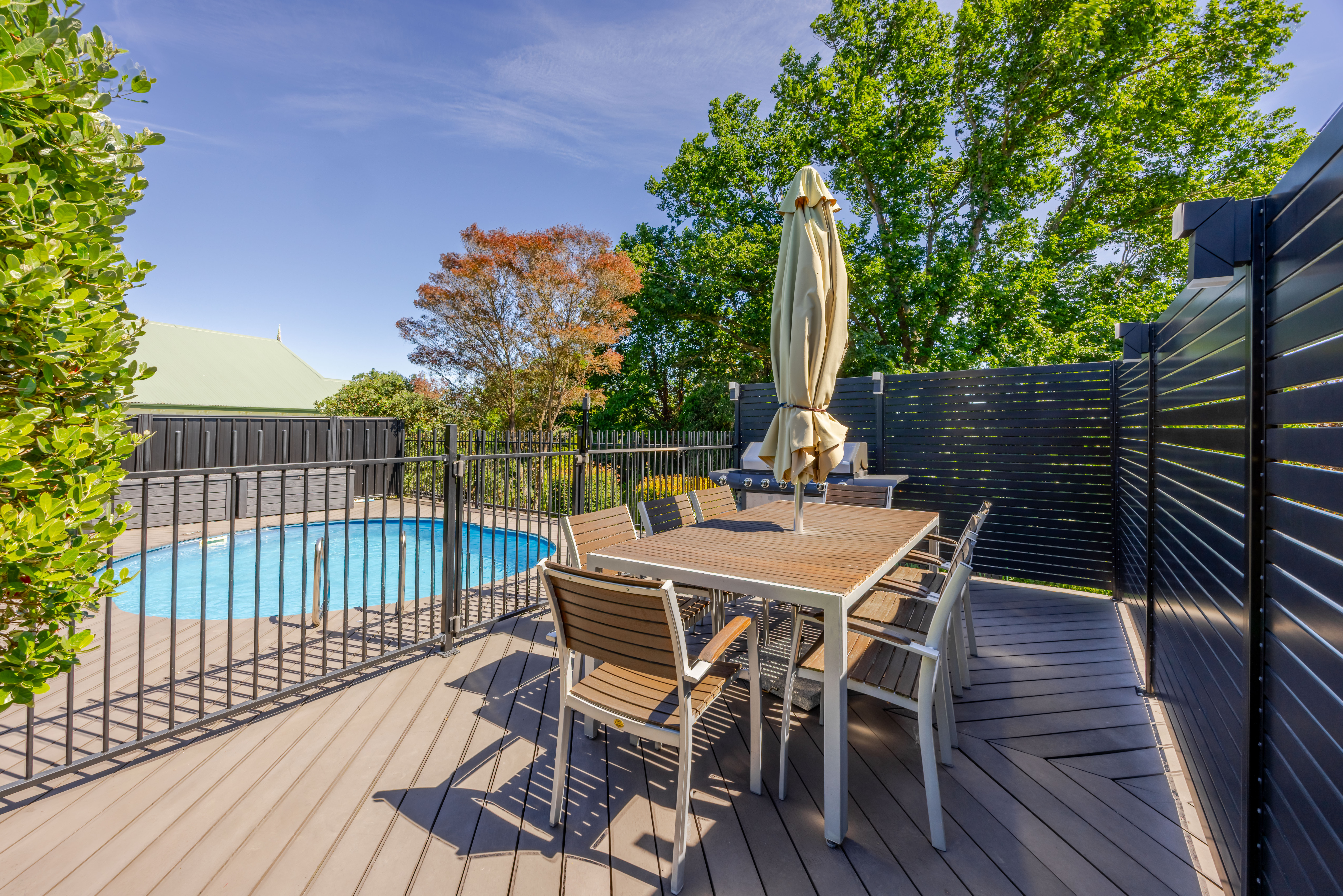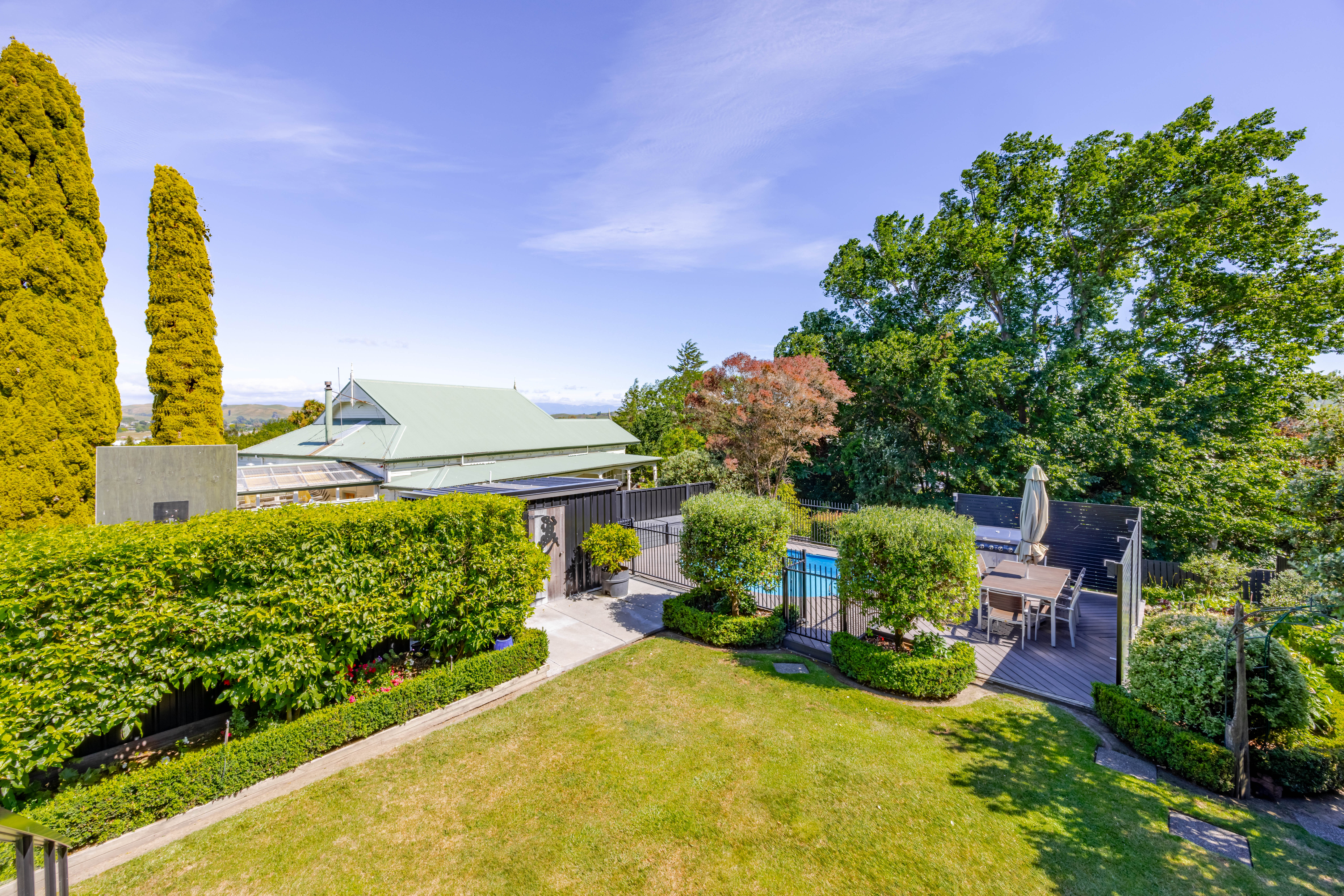 When it comes to an exceptional standard of family living, this immaculately presented property goes above and beyond. From its incredibly private setting in one of Waipukurau's most desirable hilltop streets, to the elevated positioning capturing the sensational views or the clever configuration with two living spaces along with a guest suite - this property raises the bar for what's expected of a family home. From the moment you arrive, you are welcomed by a sense of calm, quality, and warmth, with impeccable presentation throughout. The upper level is perfectly positioned to maximise both sun and scenery, capturing expansive views north to the Lindsay Hills and west to the Hatuma Hills and Ruahine Ranges beyond. A stunning modern kitchen connects with the sun filled dining and living spaces and where sliding doors open on two sides to an elevated glass-fronted deck, creating a natural extension of the living - the perfect place to relax, overlooking the beautifully established grounds while kids make great use of the swimming pool and surrounding BBQ area. The bedrooms are well configured, with three upstairs including a nicely-appointed master complete with generous wardrobe and ensuite, complimented by a family bathroom with separate toilet. Downstairs is a fourth double bedroom with its own external door and ensuite, ideal as a guest suite, space for extended family, a teenager's retreat, or even the potential for Airbnb income. Adding to it's appeal is an enormous second living area or kids rumpus room, complete with outdoor access and a freestanding wood burner, offering the ultimate breakout space for families. Storage is abundant, with a large walk-in storeroom, under-stair storage, linen cupboard, and wardrobes in every bedroom - I challenge any family to fill this to capacity! Outdoors, the property continues to impress. A single internal access garage with automatic door and workbench is complemented by a large woodshed and combined pool/garden shed. The beautifully landscaped terraced gardens are both visually appealing and productive, featuring raised vegetable beds, fruit trees, and a magnificent established grapevine. All of this is perfectly positioned within easy walking distance to town, kindy, and local schools, making it an outstanding option for families. This is a home that delivers on every level, bringing together every want and need in one exceptional package. Properties of this calibre are rare - not to be missed.
