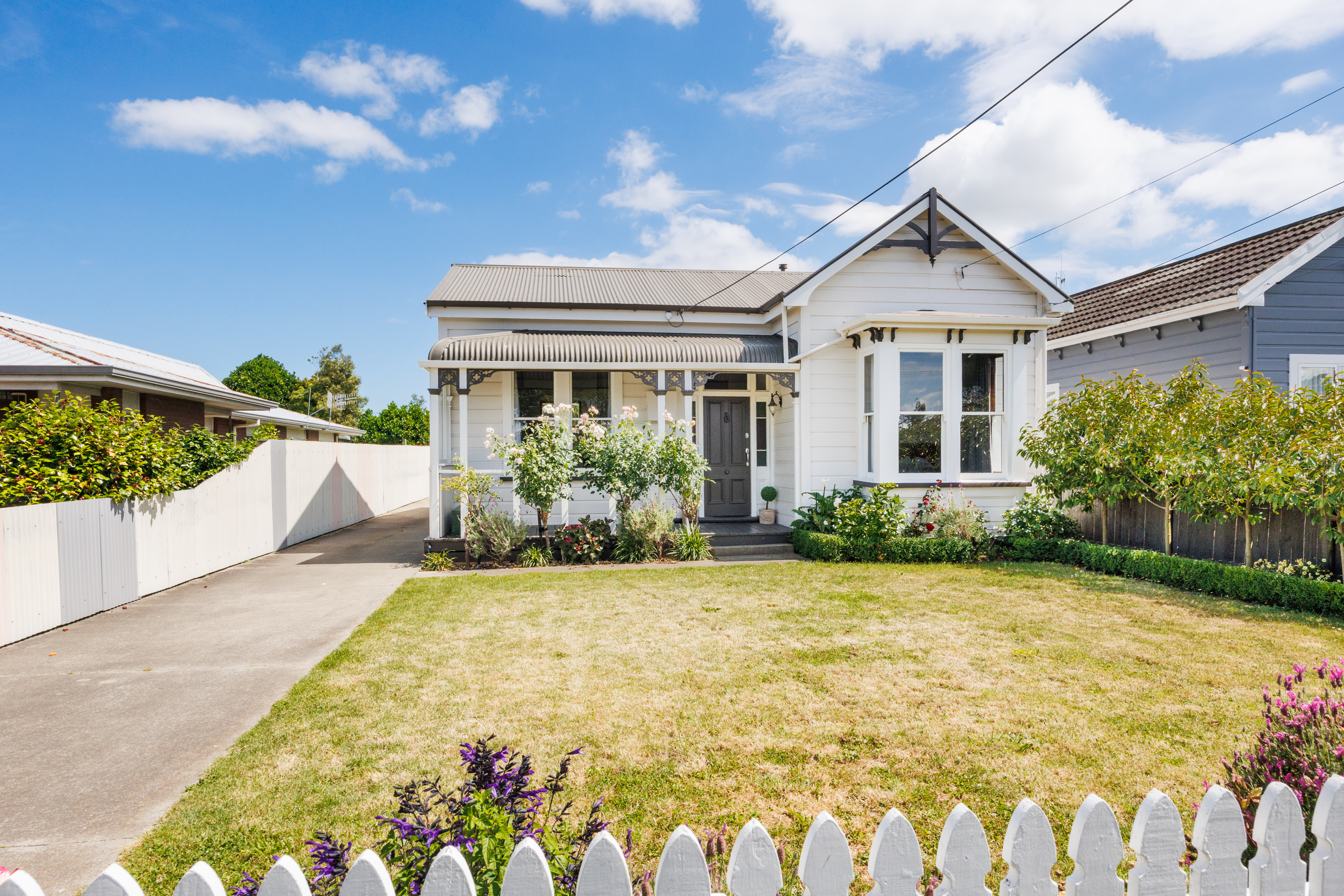 If you are searching for the charm and comfort of a traditional character property, this picture-perfect villa (c1903) set in delightful cottage gardens will sweep you right off your feet! Stunning timber features, casement windows, with spacious rooms and a flexible floorplan throughout, blend perfectly with modern enhancements, and the wonderfully private outdoor living to create that restful environment to call 'home'. Well maintained, and immaculately presented, this inviting home is situated just a few minutes' walk to the vibrant town centre as well as a range of schooling options, and many other amenities. Securely fenced, with modern garaging, and good off-street parking options for the extras. Treat yourself for years to come and make this your forever home!