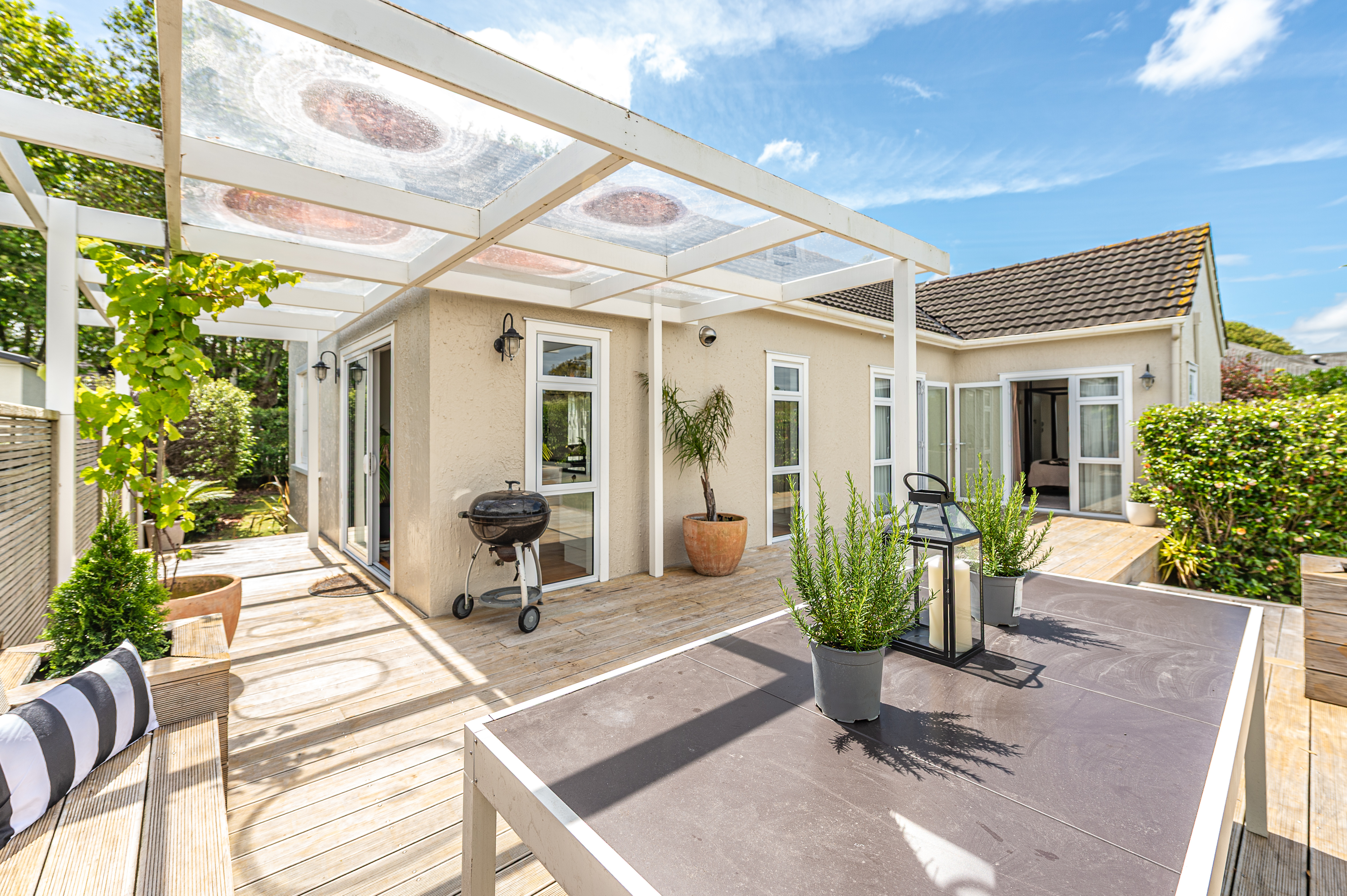 Enquiries over $799,000+. This beautifully appointed renovated property was designed by well known architect Robert Tallboys. Modern open plan kitchen and dining space that flows to a spacious large deck - a wonderful space to enjoy outdoor entertaining. The kitchen benefits from two ovens and plenty of storage space. Enjoy the functionality of a bar and coffee space. The separate lounge is a perfect place to unwind with friends and family. Separate dining area alternatively could be used as a second living area or office space. The front bedroom enjoys the convenience of a beautifully updated en suite, ideal for guests. Second bedroom is sunny and light and opens to the outdoor living area. The master bedroom has an en suite with double tiled shower, vanity and toilet. The master bedroom also enjoys the ability to open up the doors and enjoy the quiet location. Laundry behind cupboards with plenty of extra storage space. Ducted air-conditioning and heating throughout the house. Fully fenced section is ideal for families and pets. Single garage or extra storage space. This property is located close to St Johns Hill Primary School, kindergarten and shopping centre, making it an ideal choice. Don't delay call today, this property won't last long.