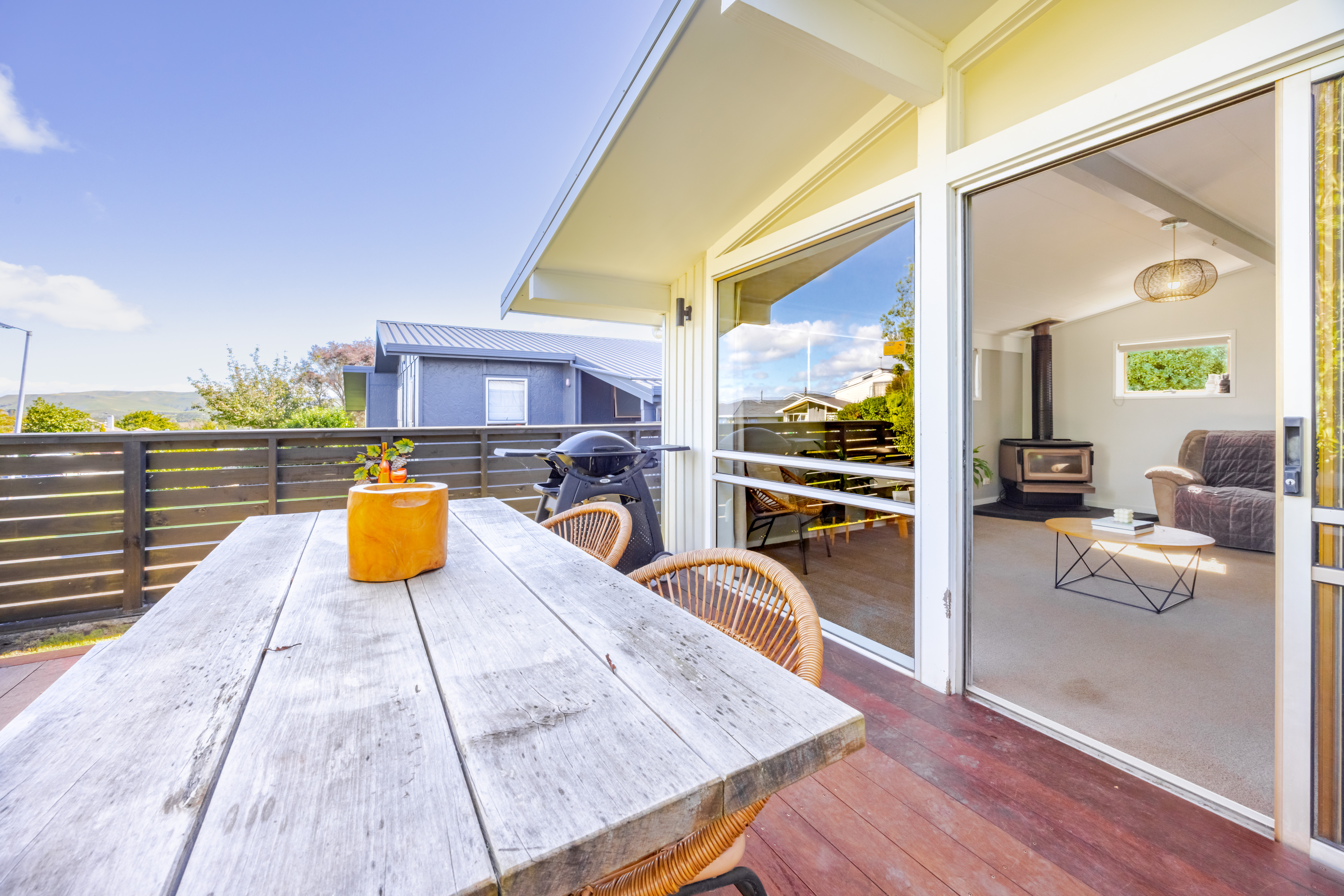 Our vendors have absolutely nailed their vision for creating a beautiful family home here by enhancing the solid form and function of this 1970's star and transforming her with stylish modern appeal. This is a home where you can walk through knowing that there are no big tasks left to do. There is a stunning kitchen with beautiful detailing and features. This main living, dining and kitchen works so well as one open plan space with a woodburner to keep things warm in winter and a fabulous deck at the front for summer entertaining. Three spacious double bedrooms are complemented by a stunning bathroom with inviting freestanding bath, vanity and gorgeous tiled shower. There is a separate toilet alongside the bathroom and a separate laundry by the back door. Value has been added in all areas here through a top quality renovation, ensuring there is superior functionality to compliment all that you will oooh and ahhhh over. There is no lacking in the outside domain either with a large carport meaning no running inside in the rain, there is a single garage as well as a fully lined studio which could be an office, work from home space, space for teenagers or even a man cave! Great garden storage spaces mean there is a place for everything. The section is fully fenced for dogs and children, with a back lawn to kick a ball round and for the right price the chicken coop could even stay! The location is on point too within easy distance of Schools and town. This is a complete package where you can enjoy all the hard work that has gone before you and show off to your friends and family!