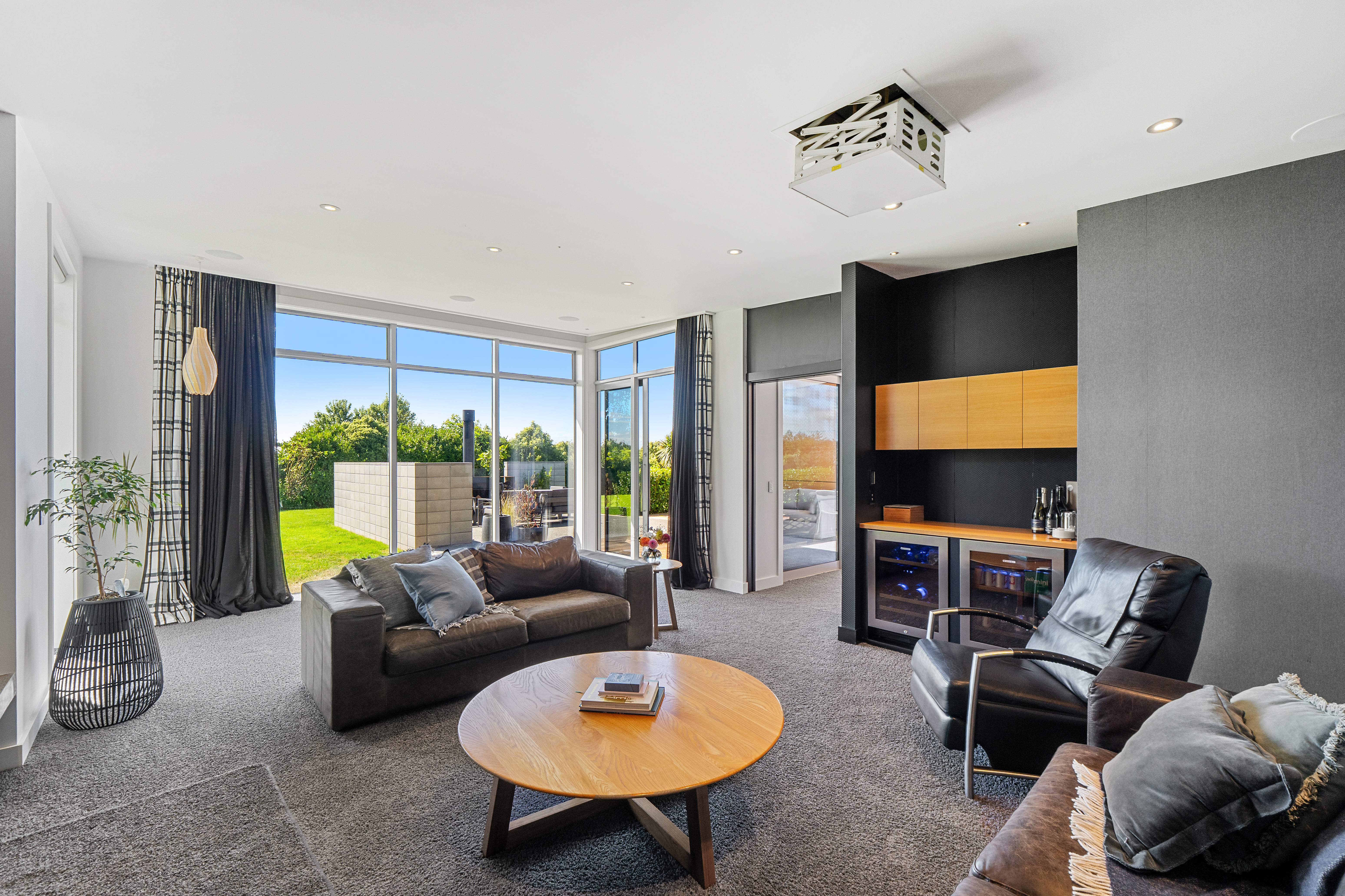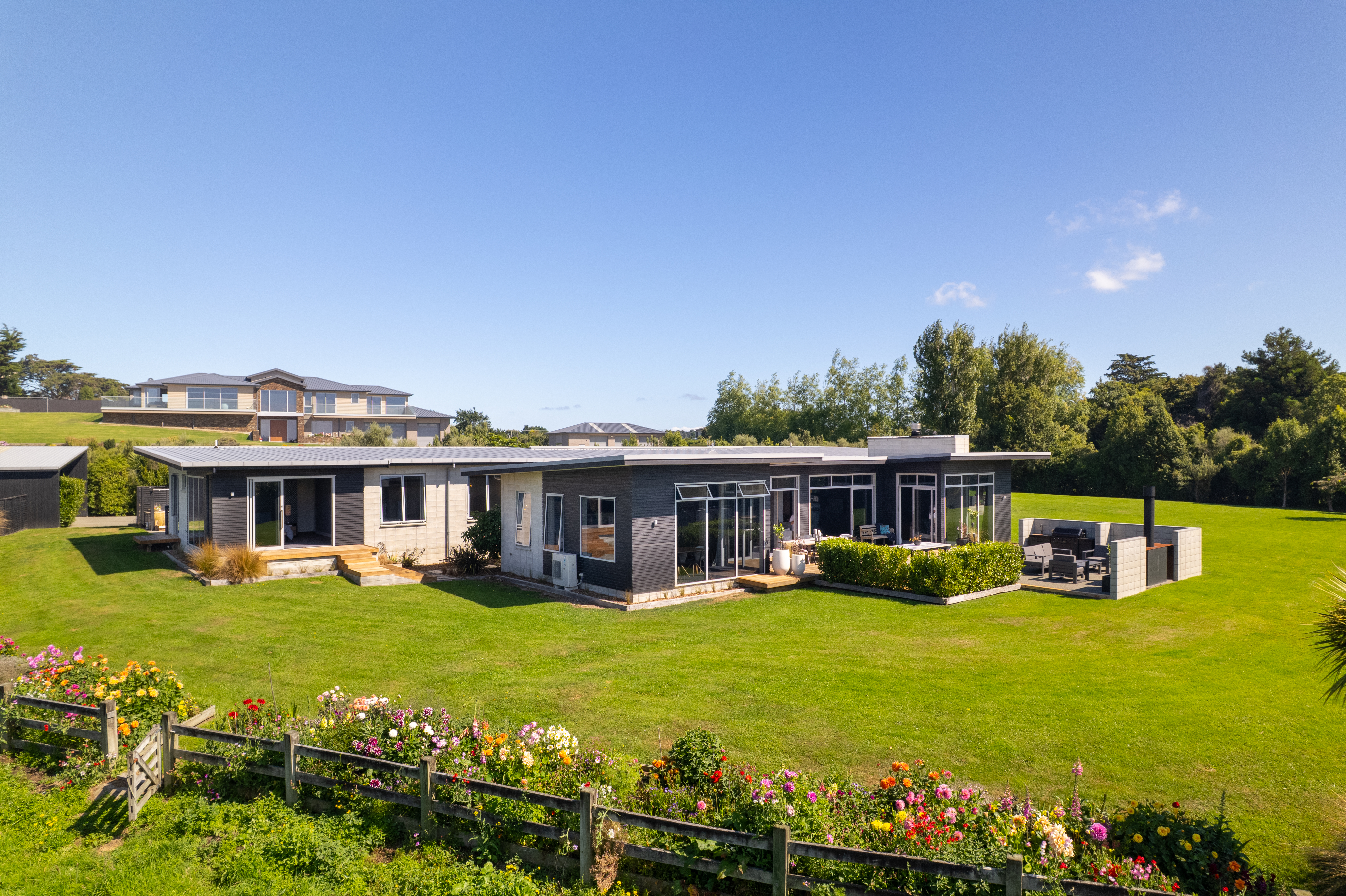 Light fittings, Main House: 1x Steam oven, 1x Full oven, 1x 1/2 oven, 2x Warming draws, 1x Integrated microwave, 1x Integrated fridge freezer, 1x Dish drawer, 1x Instant hot water tap, 2x Daikin heat pumps, 1x Waste master disposal unit, 1x Kitchen Rangehood, 1x Induction hob, 1x Extractor fan, 1x Yamaha RXA4A Entertainment Unit controller, indoor/outdoor speakers, 2x TV brackets, 1x Projector screen, 1x Projector, 1x Wine fridge, 1x Beer fridge, Automatic blinds, Blinds, Drapes, 1x Jetmaster fire, 1x Trendz Burdon Outdoor Fire, 3x Bathroom extractor fans, 2x Bathroom heated towel rails, 1x Towel rail, 2x Bathroom heaters, 2x Sewerage cutting pumps, 1x Water pump, 3x Garage automatic door openers, 2x Shed automatic door openers, Fixed floor coverings. Attached Dwelling: 1x Full oven, 1x Induction Hob, 1x ½ Oven, 1x Integrated Microwave, 1x Dishdrawer, 1x Rangehood, 1x Bathroom heater, 1x Extractor fan 1x Heated towel rail, Light fittings, Blinds, Curtains,Fixed floor coverings, 2 x TV Bracket. (Excluded Chattels: Main House: Dahlia Tubers and Outdoor BBQ/Kitchen Unit. Attached Dwelling: Smeg Fridge Freezer)