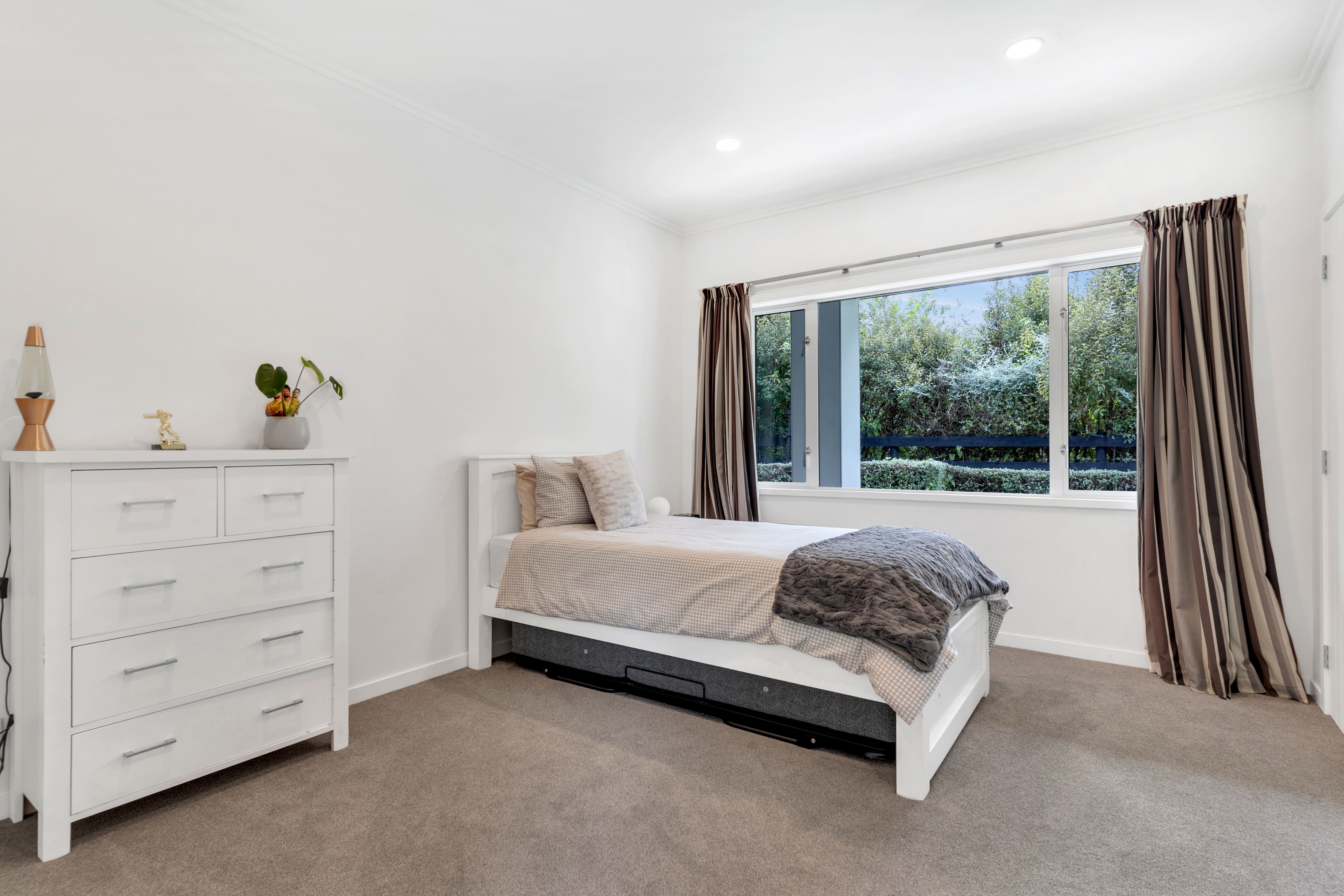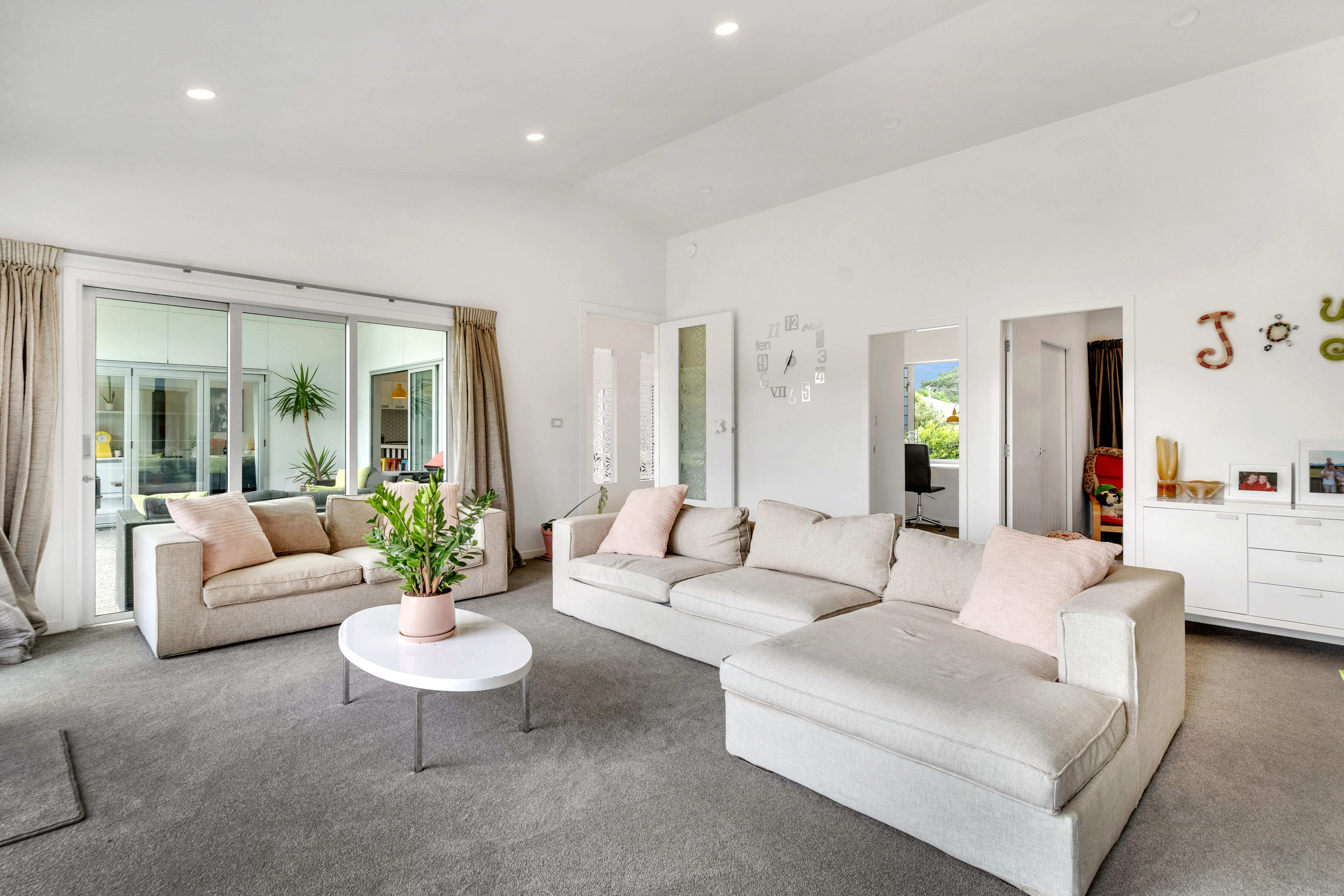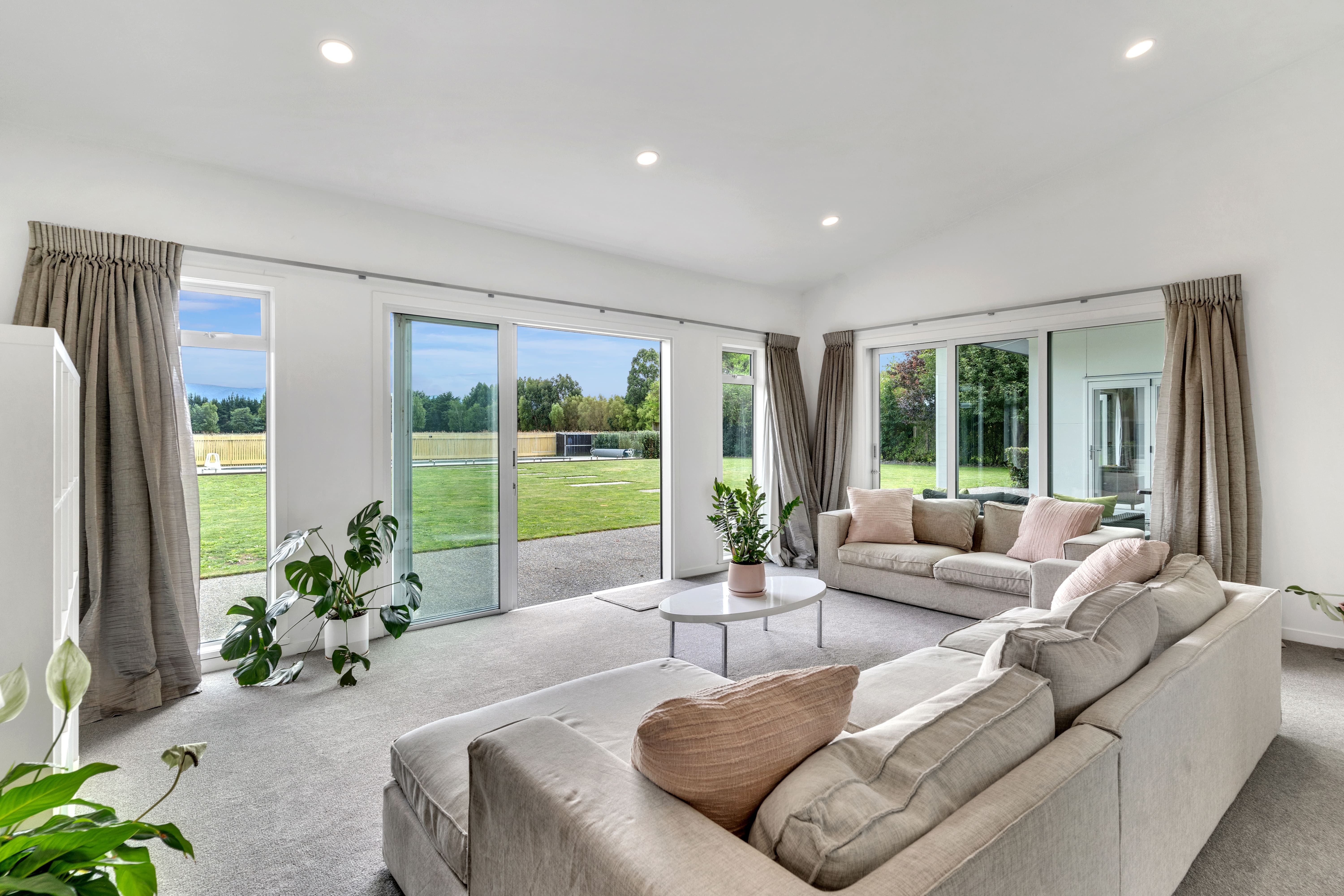 Tucked away on a private rear section, this architecturally designed Greytown home offers something rarely found in town: uninterrupted, panoramic views of the Tararua Range. From the moment you arrive, the sense of space, privacy, and natural beauty sets it apart. Crafted with contemporary flair and meticulous attention to detail, the home pairs striking design with exceptional comfort. A flexible open-plan layout anchors modern family living, supported by double glazing, premium insulation, and plush new carpet for superb year-round warmth. At the heart of the home, the expansive kitchen, dining, and living area is flooded with natural light, perfectly framing those remarkable views from dawn to dusk. A second lounge provides a peaceful retreat, flowing effortlessly to outdoor spaces positioned to capture the outlook. Accommodation is generous and well considered. The primary suite is a private sanctuary with a walk-in robe, tiled ensuite, and breathtaking morning views. Two additional double bedrooms share a beautifully finished family bathroom, while a separate guest suite with its own ensuite is ideal for visitors or extended family. A versatile office with sliding doors can become two workspaces, a fifth single bedroom, or a dedicated study/playroom. Outdoors, the home continues to showcase its setting. Sun-drenched patios wrap around three sides, offering endless places to relax and admire the horizon. A children's play area, ample sheds, double internal-access garaging, and extensive raised vegetable beds add practicality, while the sleek lap pool creates a private oasis framed by mountain views. This exceptional property combines modern conveniences, space, and truly awe-inspiring vistas - an extraordinarily rare find within an urban setting and an easy commute to Wellington. A home where the views take centre stage, and everything else is crafted to match.