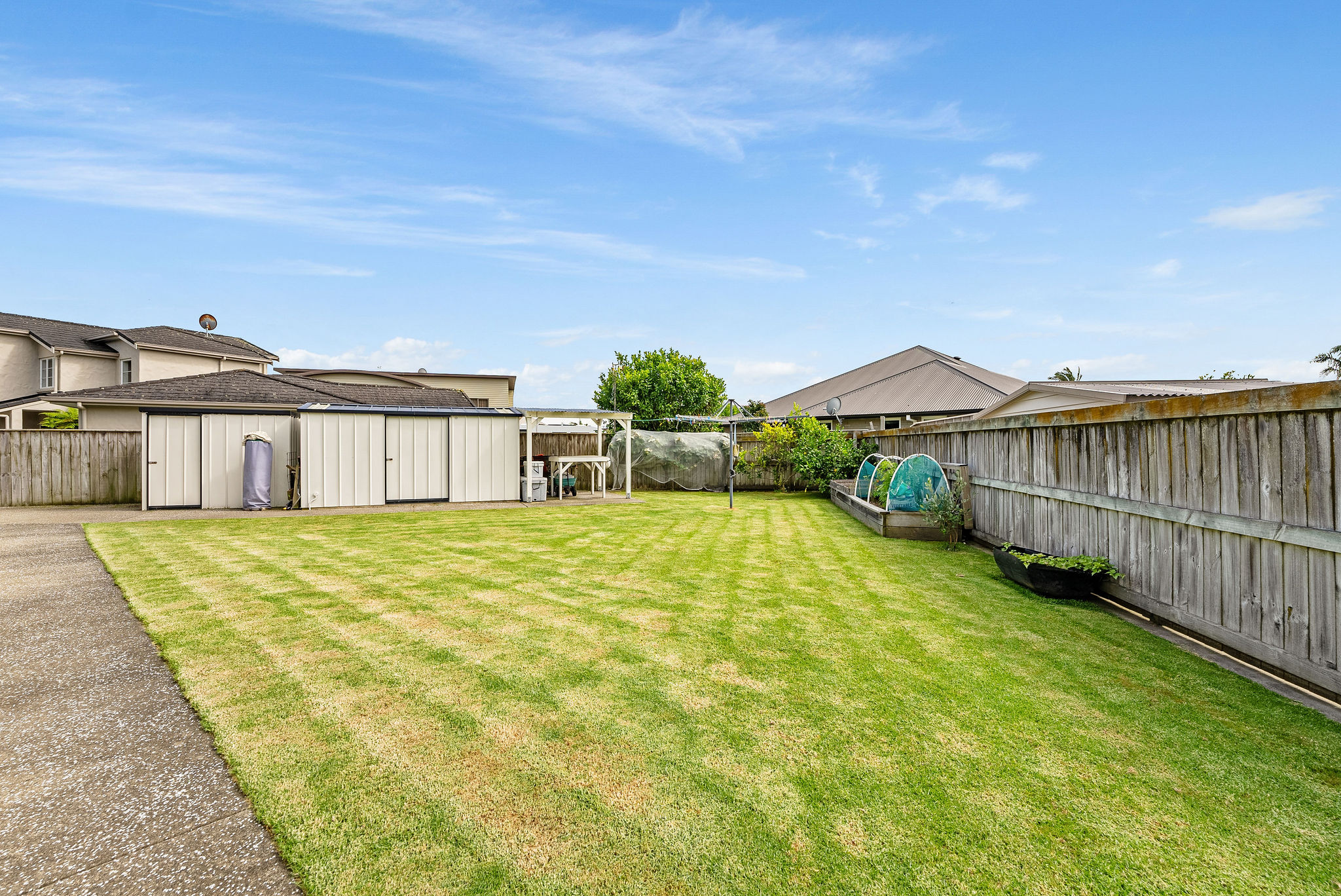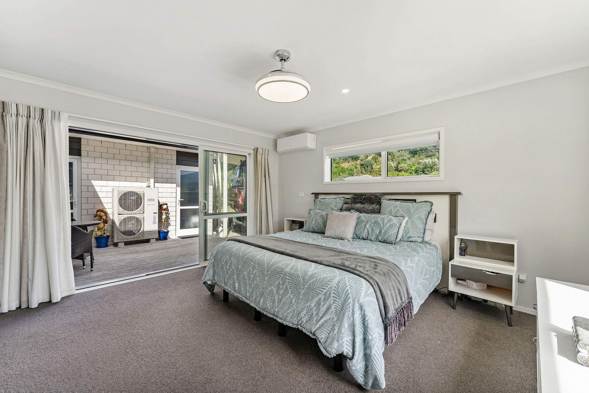 Light fittings, Blinds, Rangehood, Dishwasher, Smoke detector(s) x 2, Heated towel rail(s) x 2, Auto Garage Door Opener x1 and Remote 2, Bath - Freestanding, Ceiling Fan x1, Clothesline, Induction Hob, Wall Oven - Electric, Extractor Fan x2, Heat Pump x2 and Remote x2, Letterbox, Mirrors x2, Refrigerator, Satellite Dish, Security Lighting, Smart System, Sound System, TV Brackets - Bedroom, Waste Disposal, Electric Wall Heater (Excluded Chattels: Decorative Rocks and Pot Plants)