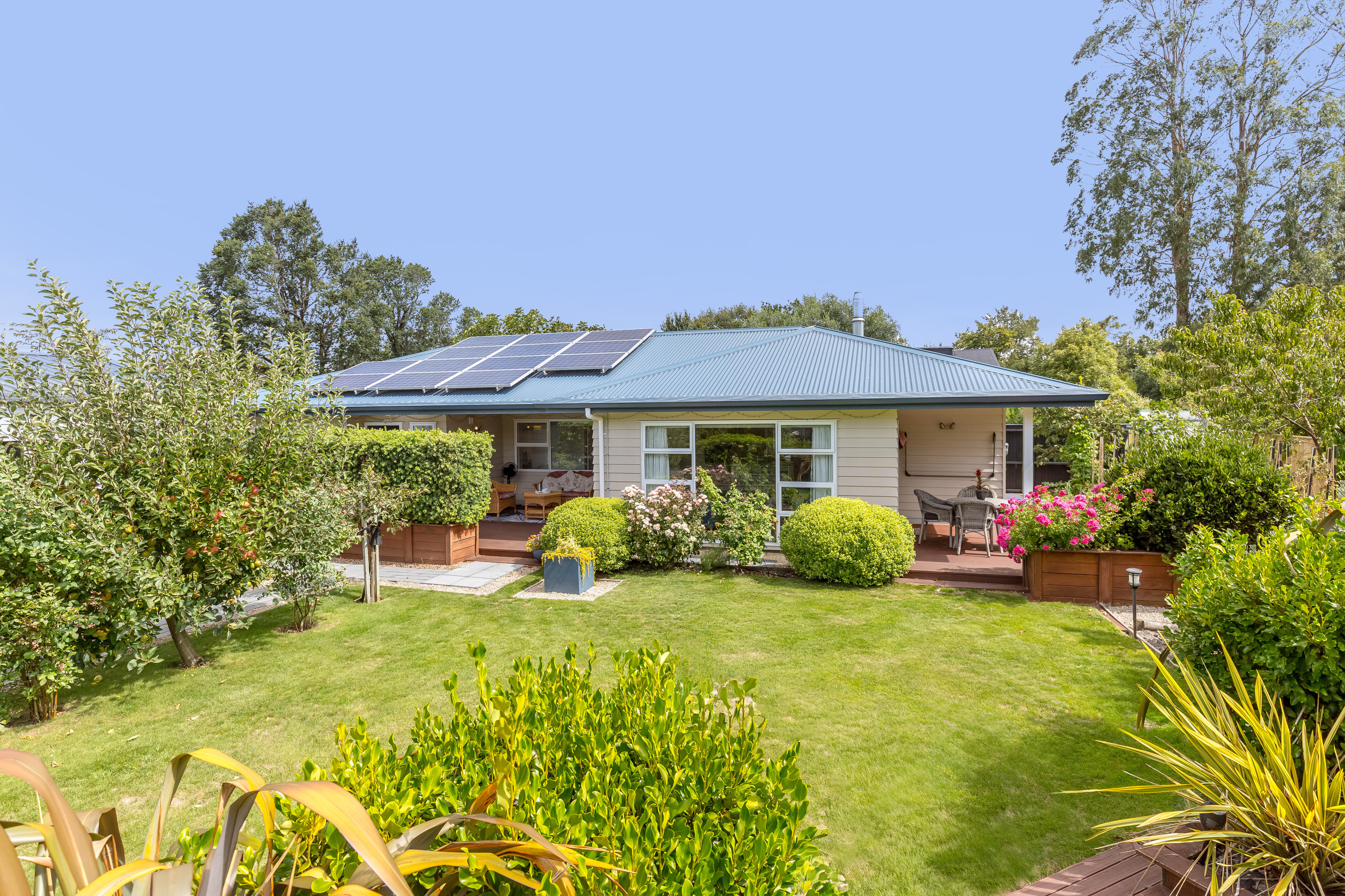 Arrive home to privacy, practicality, and modern comfort with this well-designed residence set on approximately 708m2 of landscaped grounds. Offering the benefits of a modern home without the build process, this property presents a smart opportunity for buyers seeking quality and low-maintenance living. A welcoming entrance leads to a spacious open-plan dining and living area, alongside a U-shaped kitchen with the added advantage of a separate scullery for extra storage and preparation space. The home enjoys a sunny northerly aspect, capturing excellent natural light, and the seamless flow to two covered decks creates the perfect setting for everyday living and entertaining. The landscaped garden includes outdoor seating areas, raised vegetable beds, fruit trees and a lawn area. The primary bedroom features a walk-in wardrobe and a private ensuite, while the two additional double bedrooms share a generous family bathroom with both a bath and a separate shower. Double glazing, two heat pumps, a wood burner, upgraded insulation, and 13 solar panels provide year-round comfort and energy efficiency. A compact Euro-style laundry and single garage complete the layout. The property has also operated as a successful Airbnb, offering flexibility for buyers wanting supplementary income or a lock-and-leave option. Suitable for families, downsizers, or Wellington commuters, this well-rounded home, in a private setting, is one you don't want to miss.