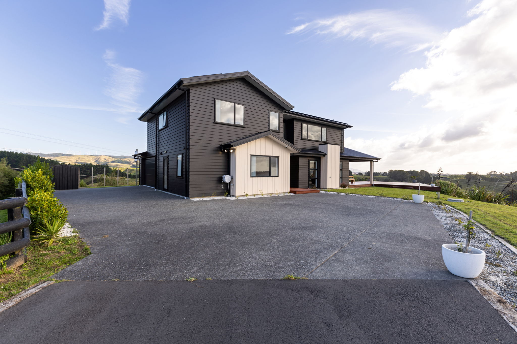 Welcome to 3 Lealands Lane, an architectural statement of prestige and presence, completed in 2022 and positioned at the very pinnacle of the coveted Kingsdale Park. From the moment you arrive, the home commands attention - elevated proudly atop 1.02 hectares, reigning almost like the king of the mountain. The approach sets the tone, but it’s the grand entrance that truly captures the imagination. Step through the front door into a soaring high-stud foyer where statement lighting cascades dramatically from above. A striking glass balustrade lines the upper gallery, creating a breathtaking visual overlook and enhancing the sense of architectural scale and light. Every window has been masterfully positioned to frame the surrounding landscapes, each outlook resembling a carefully curated piece of living artwork. Rolling vistas and picturesque scenery are captured from every angle, bringing the outdoors in with elegance and intention. At the heart of the home lies a luxurious designer kitchen, complete with expansive stone benchtops, premium finishes, and a generous scullery that ensures both beauty and functionality. This space flows seamlessly into the open-plan living and dining zone - a light-filled sanctuary designed for both intimate family moments and grand-scale entertaining. A separate second lounge provides flexibility and retreat, opening effortlessly onto covered alfresco dining. From here, expansive decking unfolds - an entertainer’s dream and the ultimate vantage point to soak in sunsets, serenity, and sweeping views. The thoughtful floorplan offers four bedrooms. On the ground level, a private guest suite (or ideal multi-generational space) is complemented by a beautifully appointed bathroom and a separate laundry nook. Internal access to the double garage ensures convenience without compromise. Upstairs, three further bedrooms await. The master suite is a sanctuary in its own right, complete with a lavish ensuite and an oversized walk-in-wardrobe. Two additional bedrooms are serviced by a stunning family bathroom, all positioned to maximise outlook and natural light. Comfort is paramount year-round, with full insulation, ducted heat pump system, and gas heating delivering effortless climate control throughout the seasons. Solar panels are also an excellent feature on this property. This is more than a home, it is a statement of elevation, elegance, and lifestyle. A rare opportunity to secure a near-new masterpiece in one of the region’s most prestigious enclaves. 3 Lealands Lane, where luxury meets landscape. Call today to view!