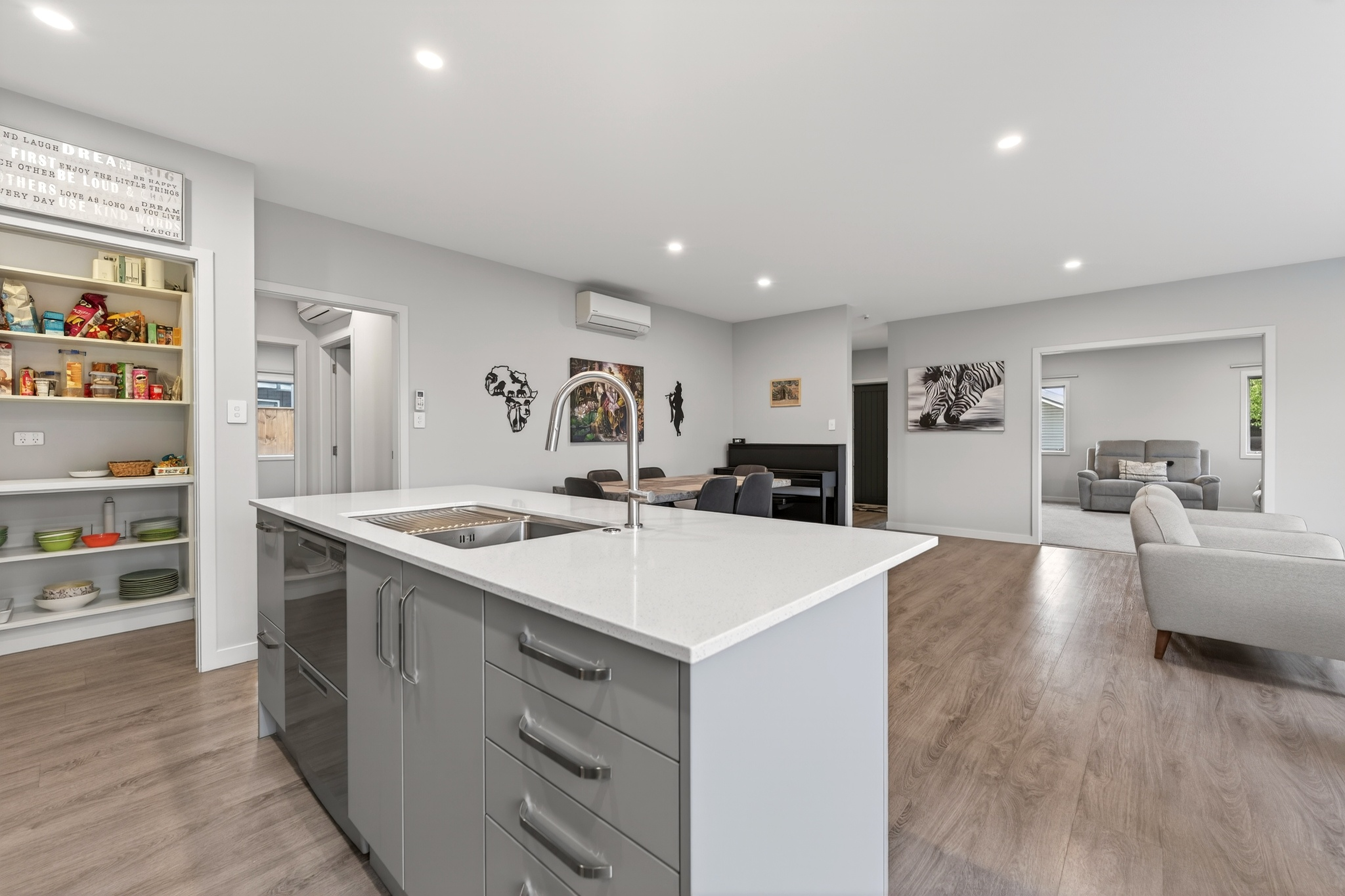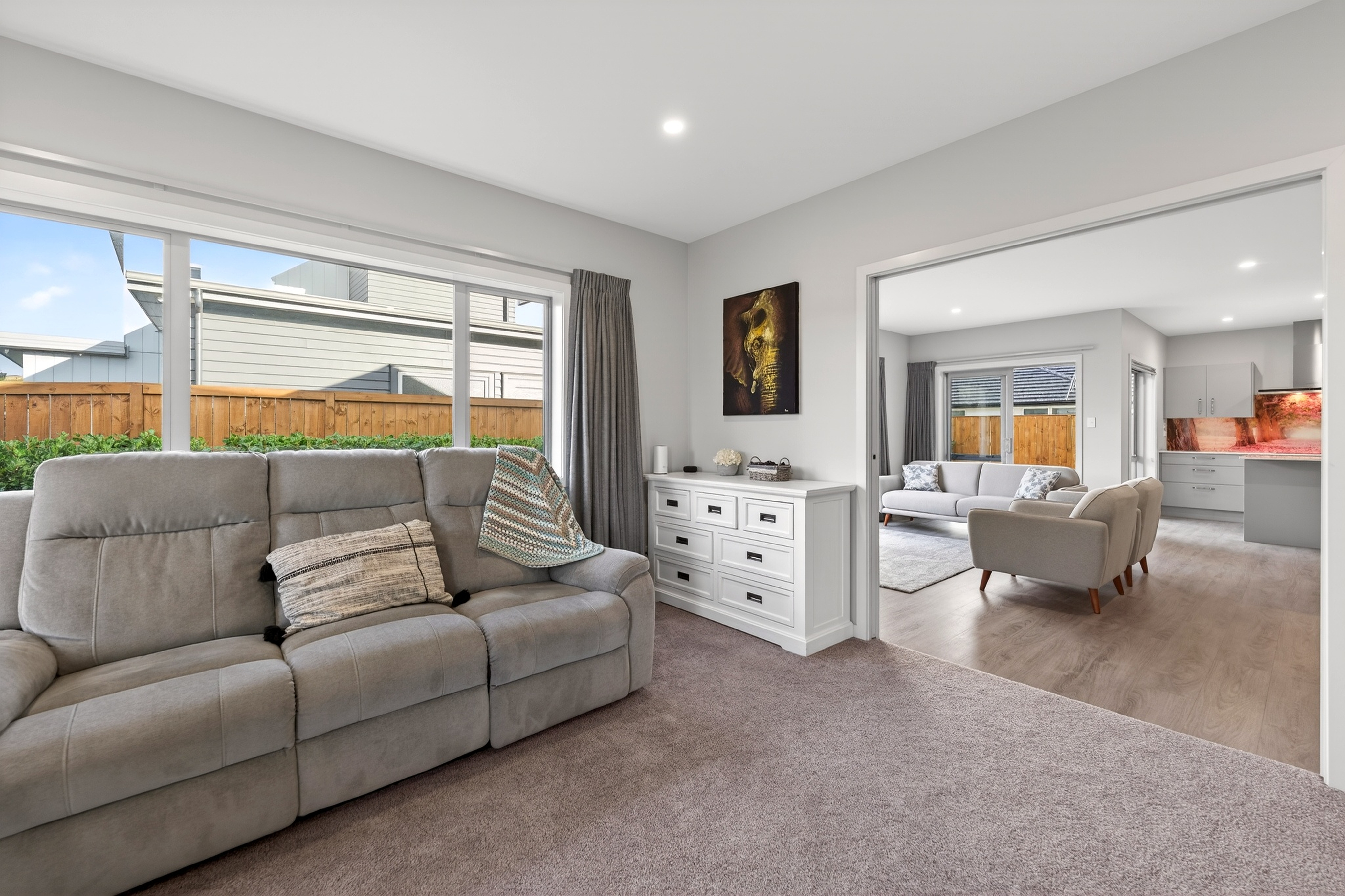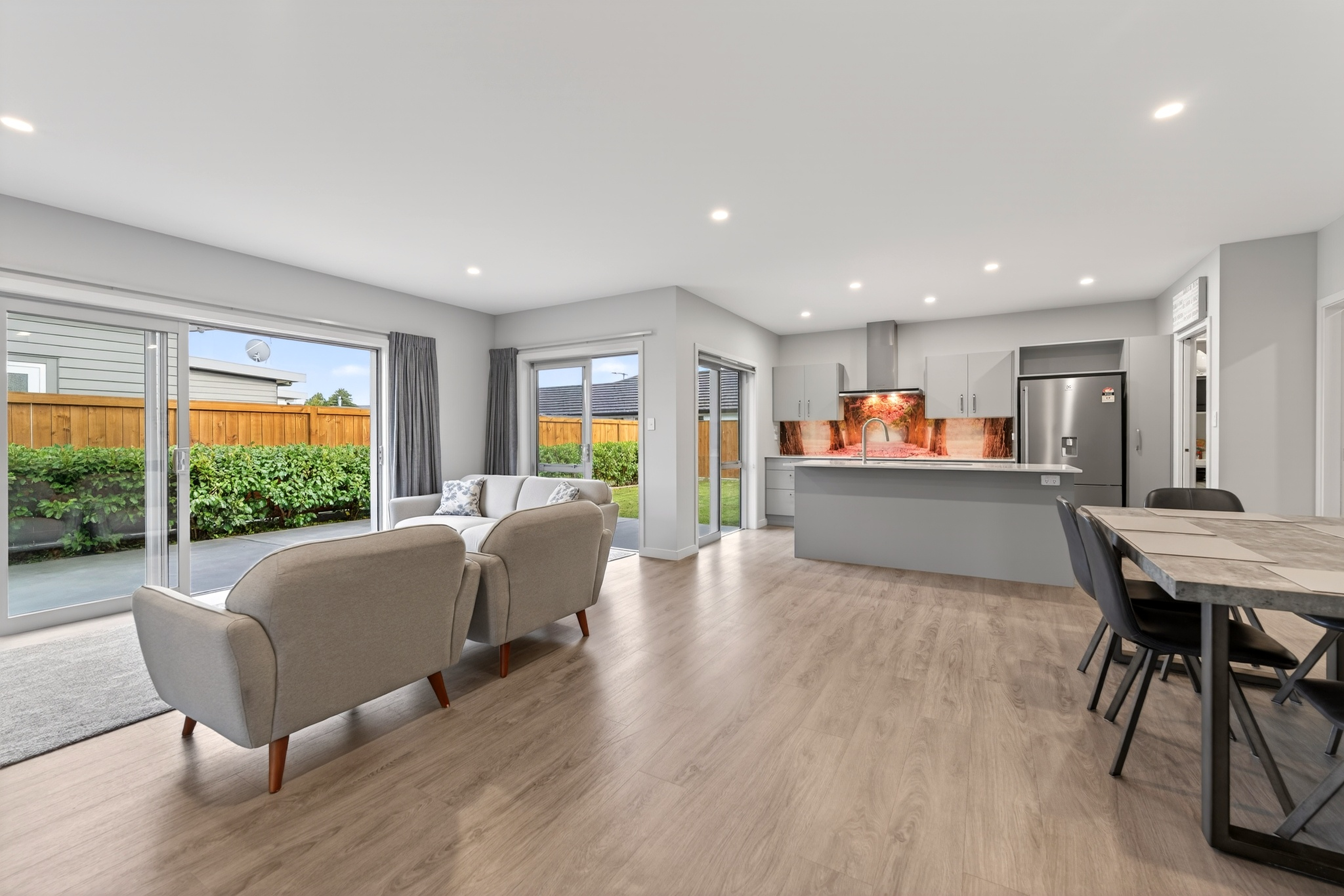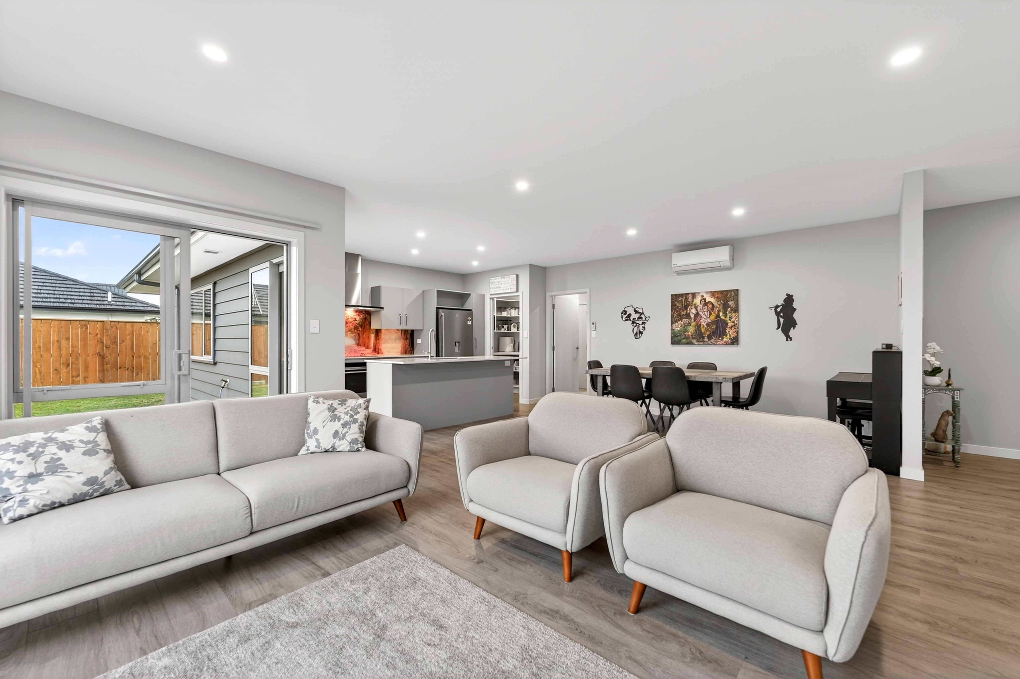 Welcome to 3 Magnolia Lane - a beautifully crafted modern home set within an attractive neighbourhood of quality new builds and growing appeal. Built in 2021 by Landmark Homes and lovingly maintained by its only owners, this home remains in outstanding condition. The Linear cladding and long-run Colorsteel roof create sharp street appeal, while inside delivers space, style and comfort in equal measure. The heart of the home is a stunning open-plan kitchen, dining and living zone. Quality appliances, a walk-in pantry and a vibrant, scenic splashback bring personality and practicality together beautifully. A separate lounge provides that extra flexibility families appreciate. Four bedrooms ensure room for everyone. The master suite features a walk-in wardrobe and ensuite, while the remaining three bedrooms all offer double wardrobes. Both bathrooms boast tiled floors and tiled showers for a sleek, durable finish. A double internal access garage plus a separate laundry adds everyday convenience. Positioned in a quiet cul-de-sac surrounded by quality modern homes, you are close to parks, reserves and Woolworths supermarket. This is contemporary comfort in a location that continues to grow in popularity.