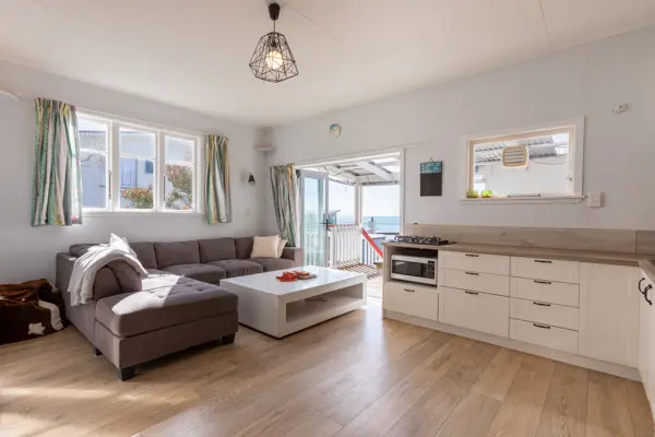 Opportunities like this do not wait! Sitting proudly on elevated grounds, this light filled beach cottage offers an open plan kitchen and living area, separate bathroom and laundry, plus an annex with two fully insulated double bedrooms linked by a large covered deck. Just steps from a sandy beach and a nearby reef perfect for diving, this is your chance to secure a true coastal getaway. Spend your days on the water, then gather with friends on the deck to BBQ your fresh catch or head to the nearby Boating Club. With established trees, stunning coastal views from multiple vantage points, and a welcoming Akitio community within easy reach of Tararua, Manawatu, Wairarapa, and Hawkes Bay, this is the beach escape you have been dreaming of. Priced under RV for a quick sale. Call now before it is gone!