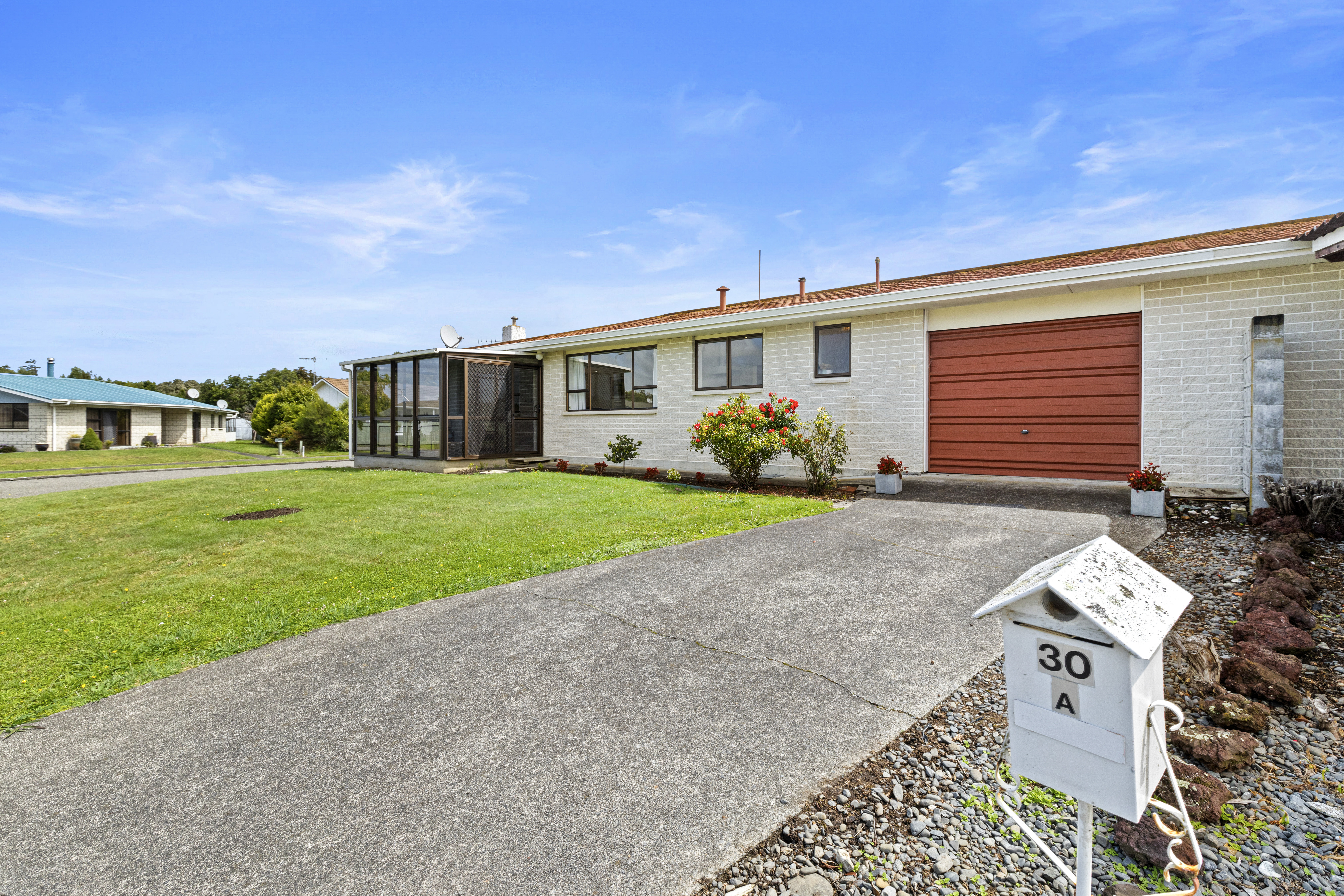 Set on a sunny corner section in a highly sought-after part of town, this well-proportioned unit offers a wonderful blend of comfort, space and low-maintenance living. With a generous 140m2 floor area, it provides far more room than you’d expect, making it an appealing option for downsizers, first-home buyers or anyone seeking an easy-care lifestyle close to amenities. Inside, the home features a large combined lounge and dining room that offers plenty of space for both everyday living and entertaining, plus a freshly painted kitchen with ample storage. The neutral colour palette enhances the sense of calm and makes styling effortless. There are two double bedrooms and one single bedroom, each offering good wardrobe storage, ensuring practicality for guests, hobbies or additional household members. The bathroom is fitted with a tiled wet-floor shower for ease of use, complemented by a separate toilet for added convenience. A spacious laundry provides excellent functionality and direct access to the outdoors. One of the standout features is the spacious conservatory, complete with tinted windows that create both privacy and protection from the sun. This inviting room captures the warmth beautifully, making it the perfect place to settle in with a good book, enjoy your morning coffee or simply relax and watch the world go by. Comfort is well catered for with a heatpump, and the home meets Healthy Homes standards, giving you peace of mind that everything has been well maintained. The low-maintenance brick cladding and easy-care section ensure your weekends are free to enjoy as you wish, with plenty of potential to landscape or garden to your own taste. An internal access garage with great storage completes the package, making daily life that little bit easier. The location is another major drawcard, with a gentle stroll taking you to town, local parks and a lovely native bush walk just down the road. Opportunities to secure a three-bedroom unit in Marton are few and far between, with only one coming to market in 2025, making this a rare and exciting find for those who’ve been waiting for the right one.