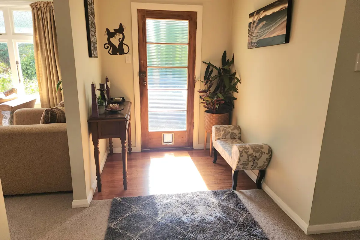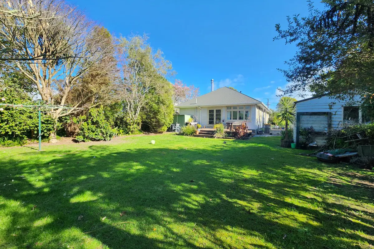 This charming 3-bedroom bungalow sits on an approx quarter-acre section, nestled behind established mature trees and shrubs with full fencing for complete privacy. The home retains its authentic 1940s character with the original coal burner in the kitchen and original wooden floors that showcase the craftsmanship of the era. Inside, you'll find two separate living spaces providing flexibility for family life, a renovated bathroom, along with a bright sunroom and a separate laundry. One of the living areas is heated by a multifuel burner and captures plenty of sunlight during the day. The kitchen has lots of built-in storage and is combined with the dining area. Outside you will find a single car garage, a rear deck area, and plenty of yard space. A home that suits everyone's needs-you sure will want to check this out.