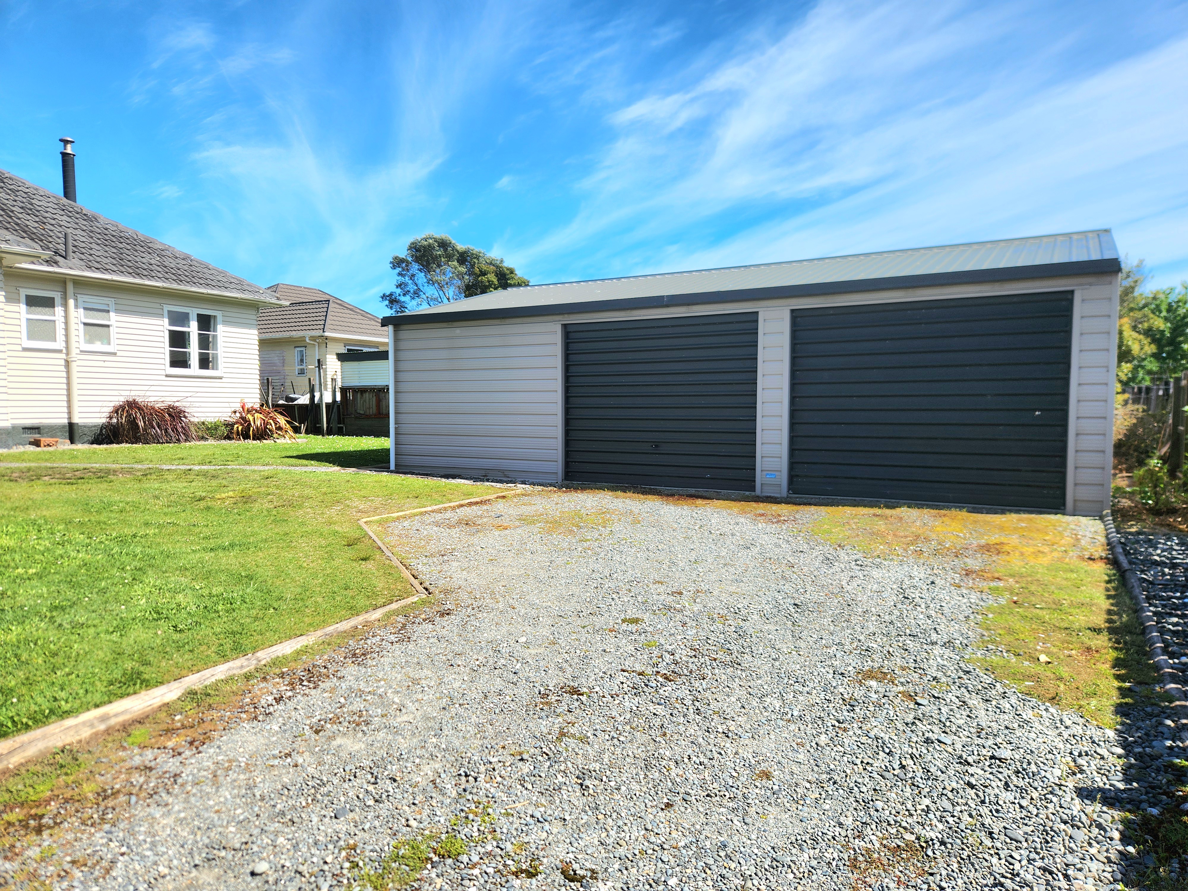 Positioned on an elevated corner site in Cobden, this tidy weatherboard home offers two double bedrooms, a spacious living area warmed by a multi-fuel fire and wall-mounted heat pump, and a generous open-plan kitchen and dining space. The bathroom includes a shower over bath and vanity, complemented by a separate toilet and separate laundry for everyday convenience. The home features timber joinery windows, a concrete tile roof, and updated electrical work. Solid concrete ring foundations and piles support the property, with a polythene moisture barrier installed beneath the home, along with insulation underfloor and in the ceiling for added comfort and efficiency. Outdoors, the section is well fenced and landscaped, and a substantial double garage of approximately 50m2 constructed in the 2000's provides excellent storage or workshop potential.